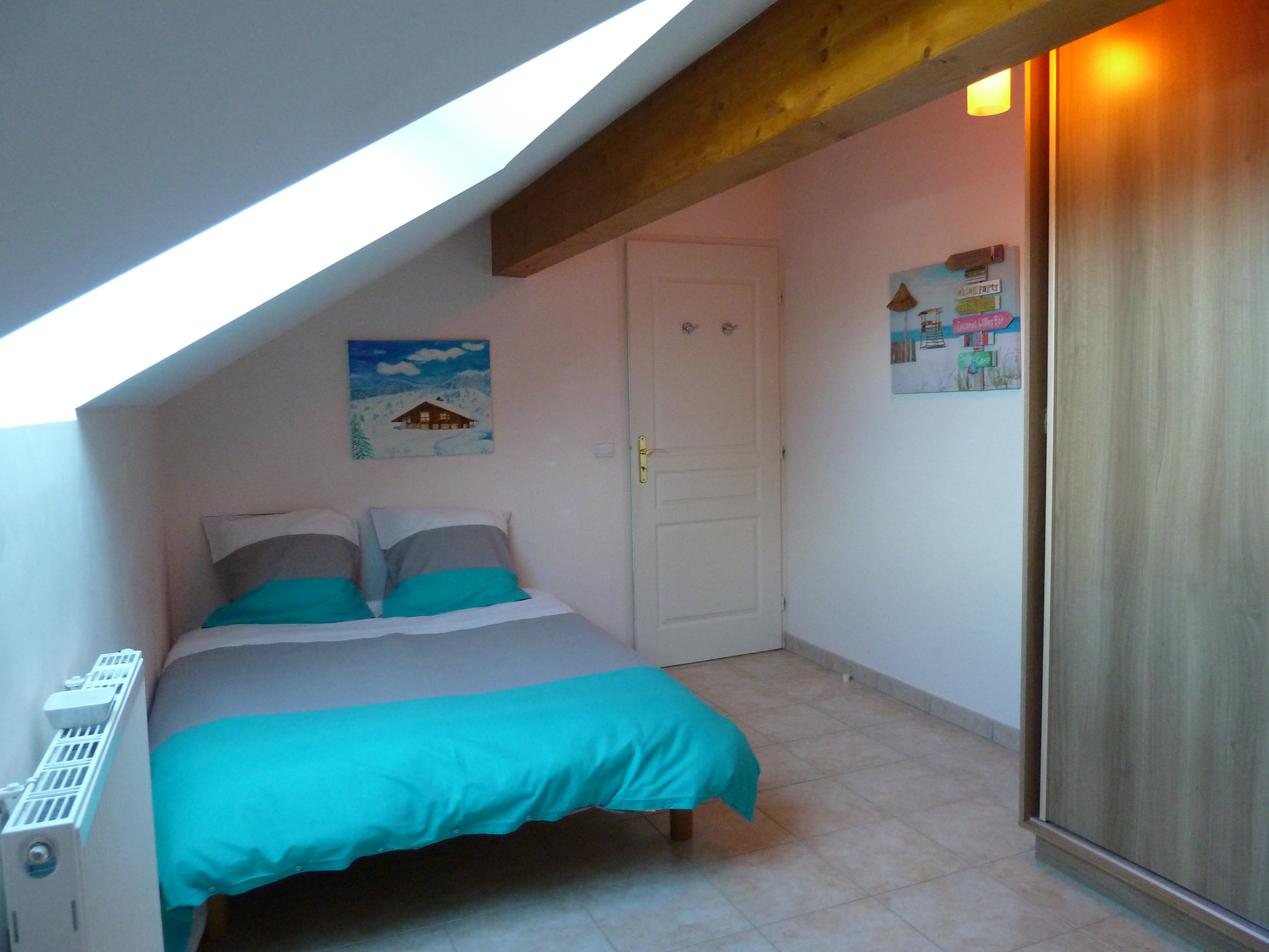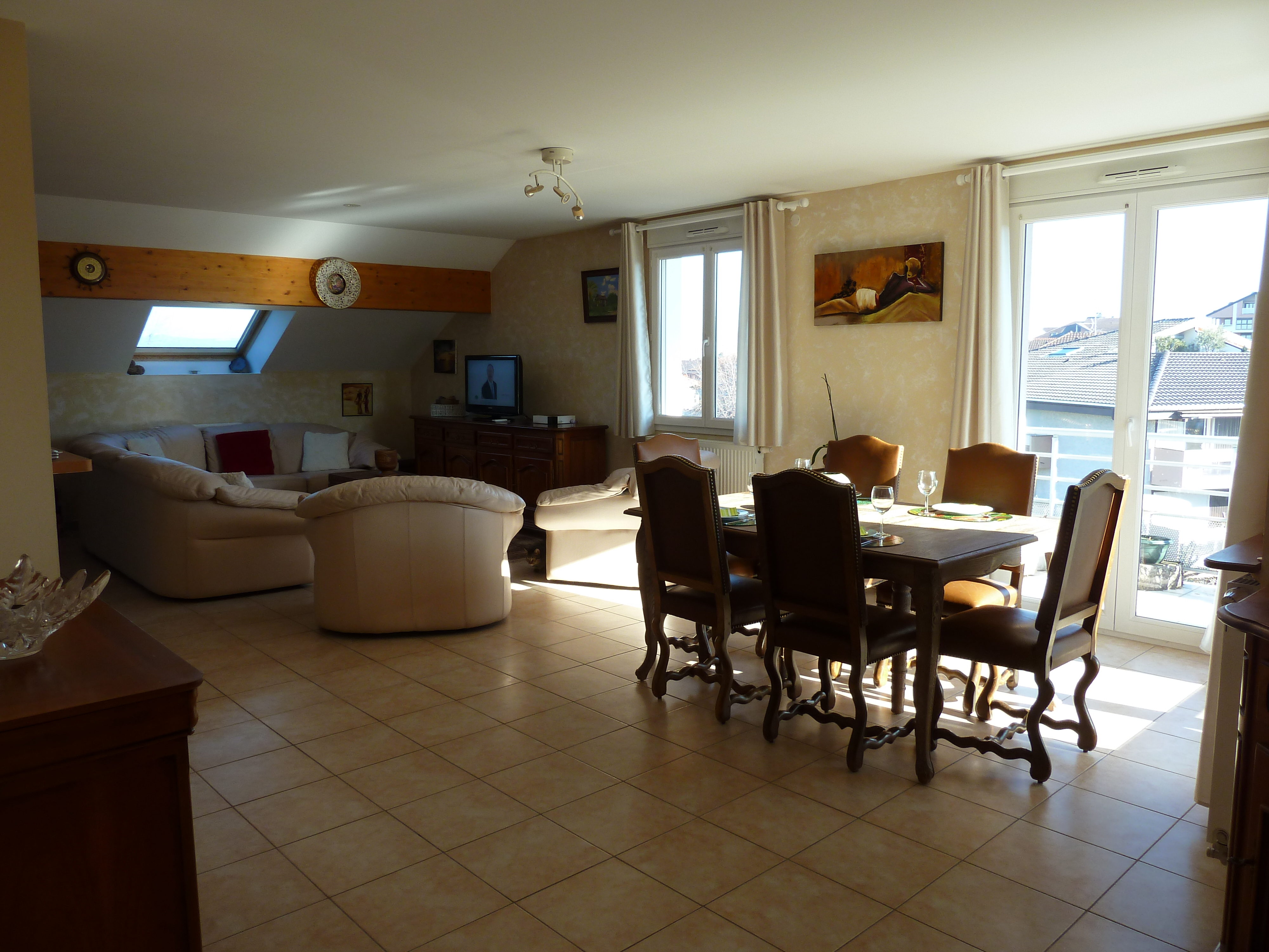 Duplex proche des commerces et du centre-ville. Deux balcons. Vue lac et montagnes. A distance à pied de la plage.