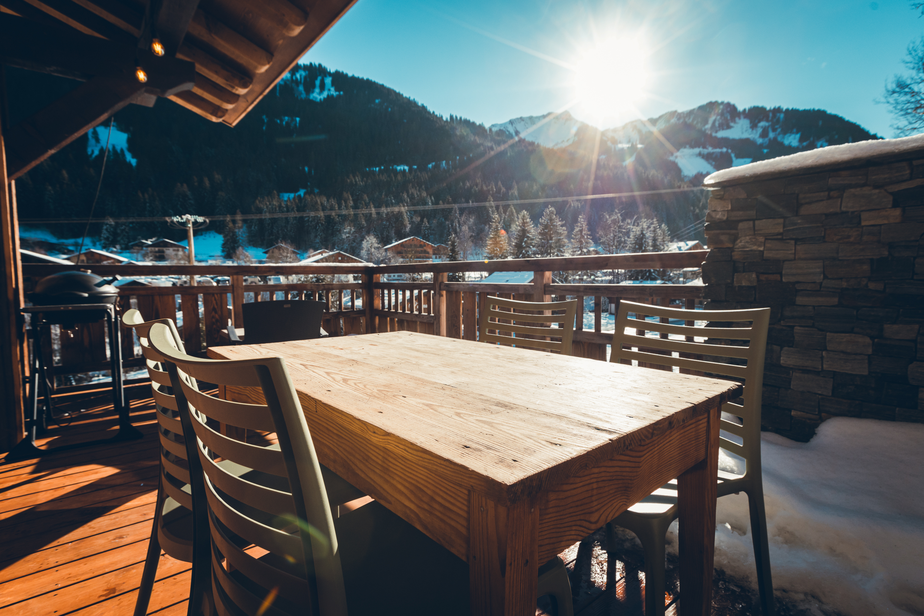 - Chalet Explora | Savoya Lodges_Châtel Balcon avec mobilier de jardin et barbecure Crédit photo : M.Crépy-Banfin