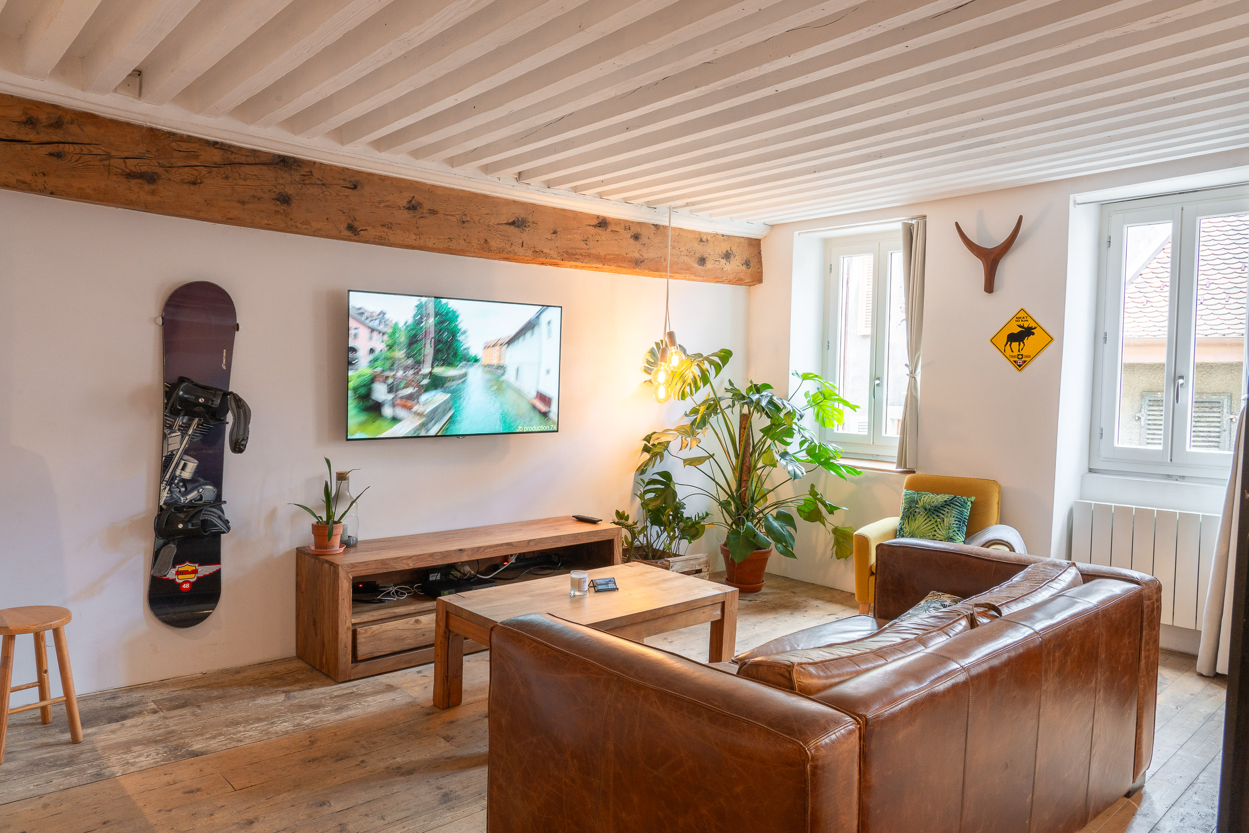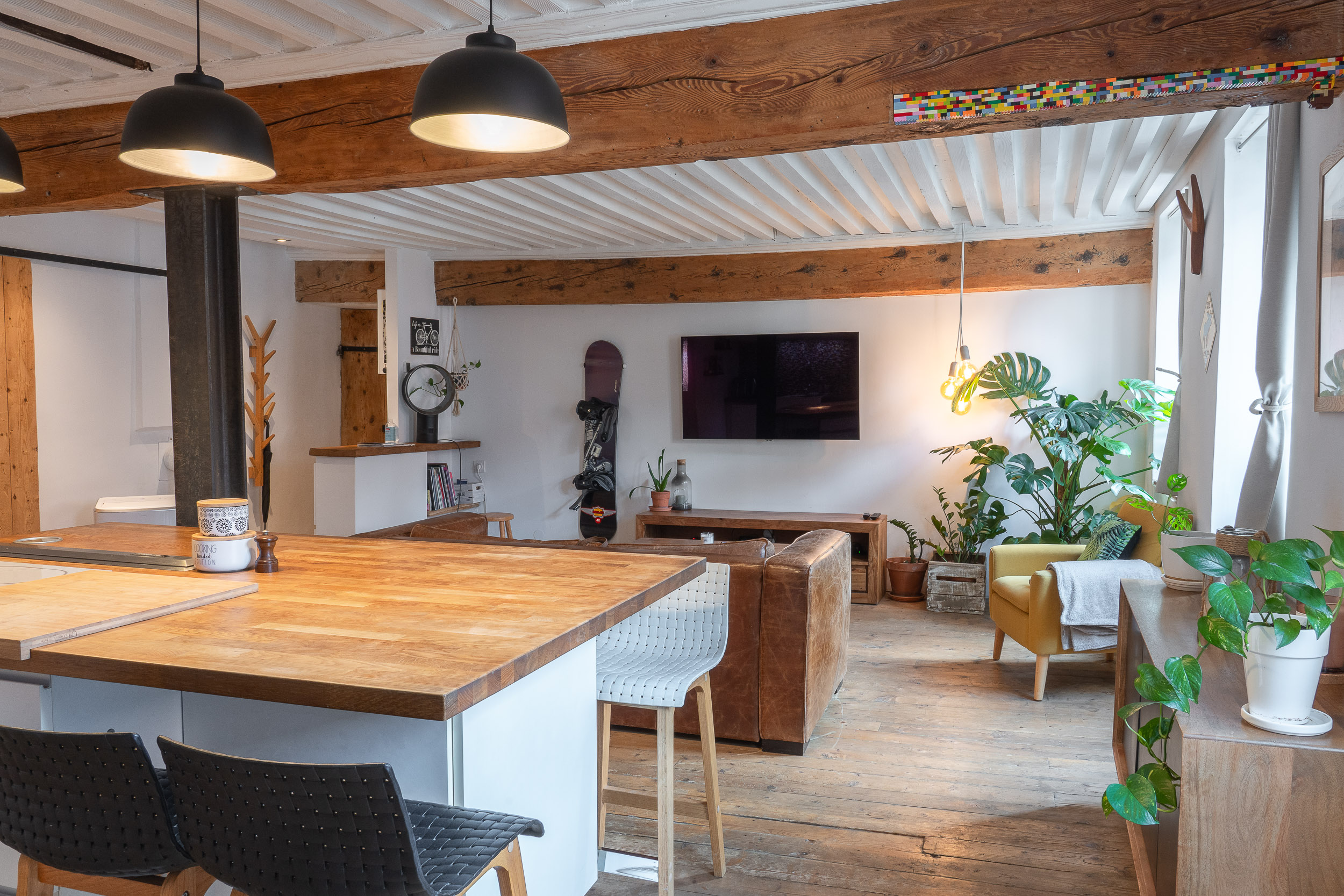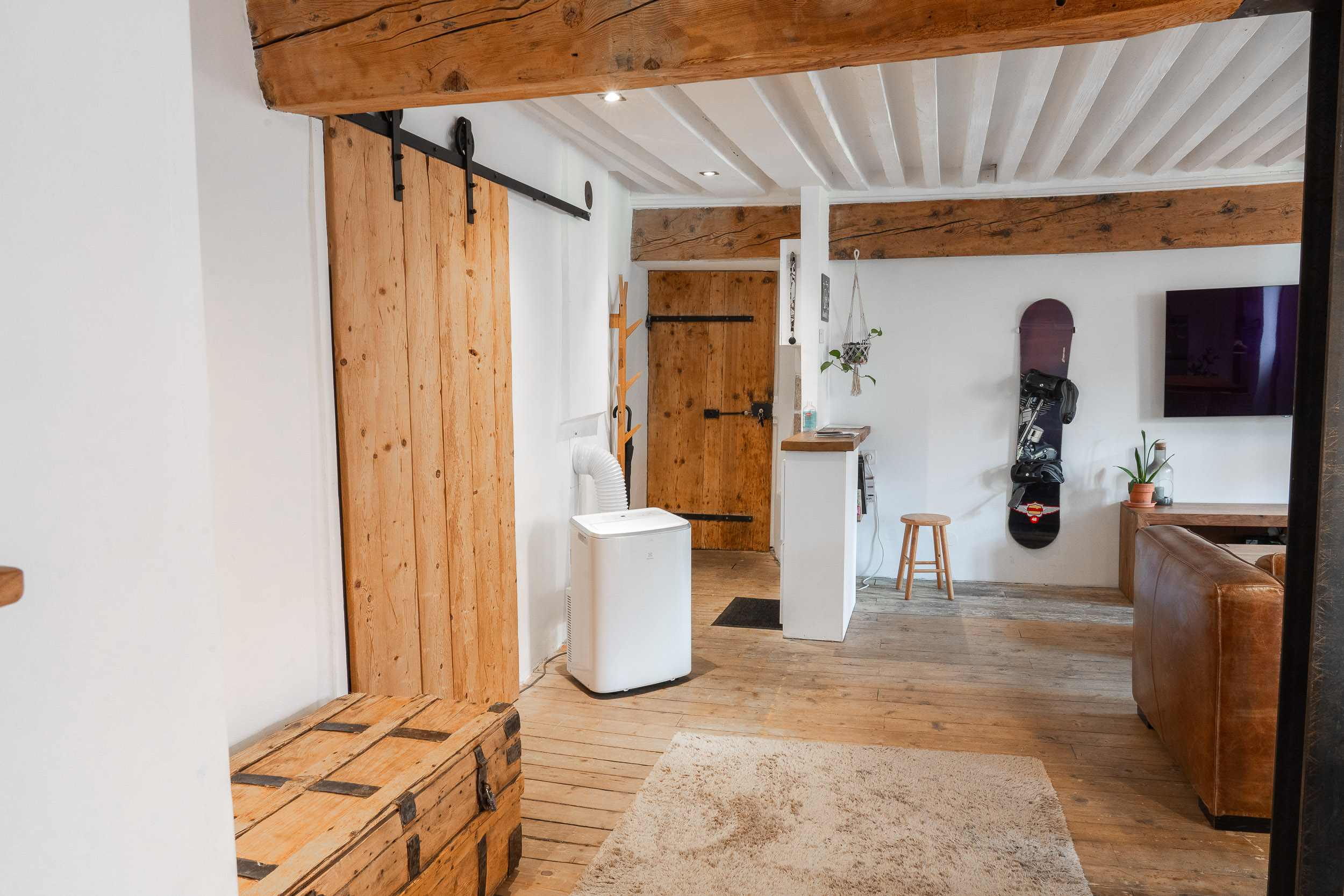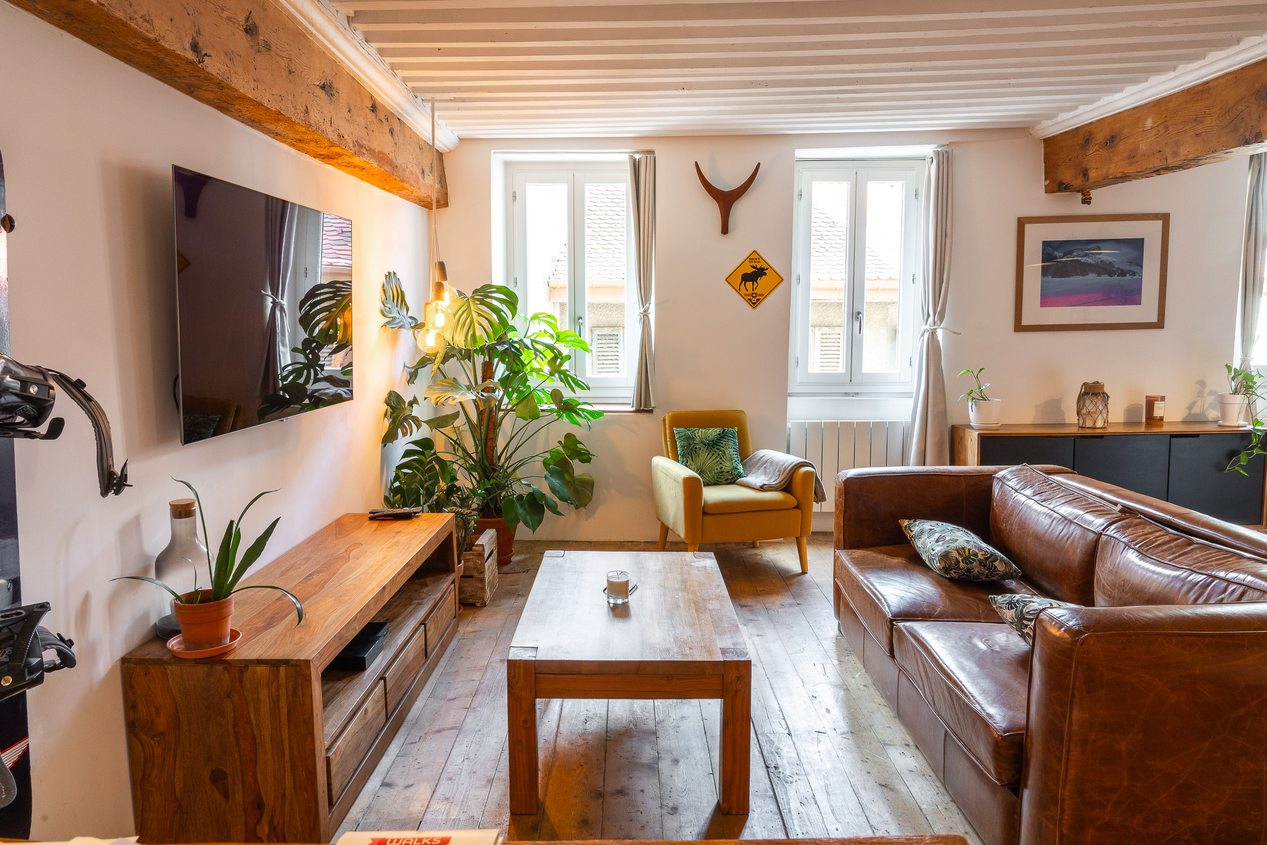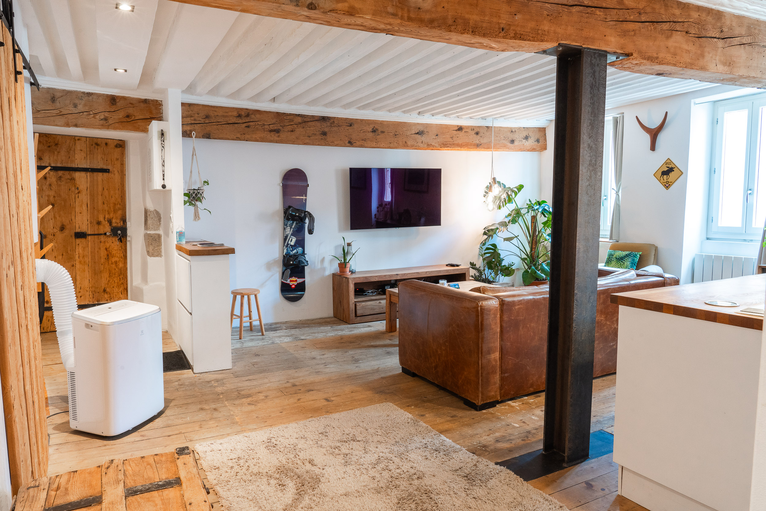 Très bel appartement (50m²) au 3è étage, prestations de qualité. Cuisine intégrée, séjour (Tv, canapé convertible rapido 140cm, poêle à bois décoratif), chambre intérieure (avec fenêtres intérieures, 1 lit 160x200), wc indépendant, salle d'eau.