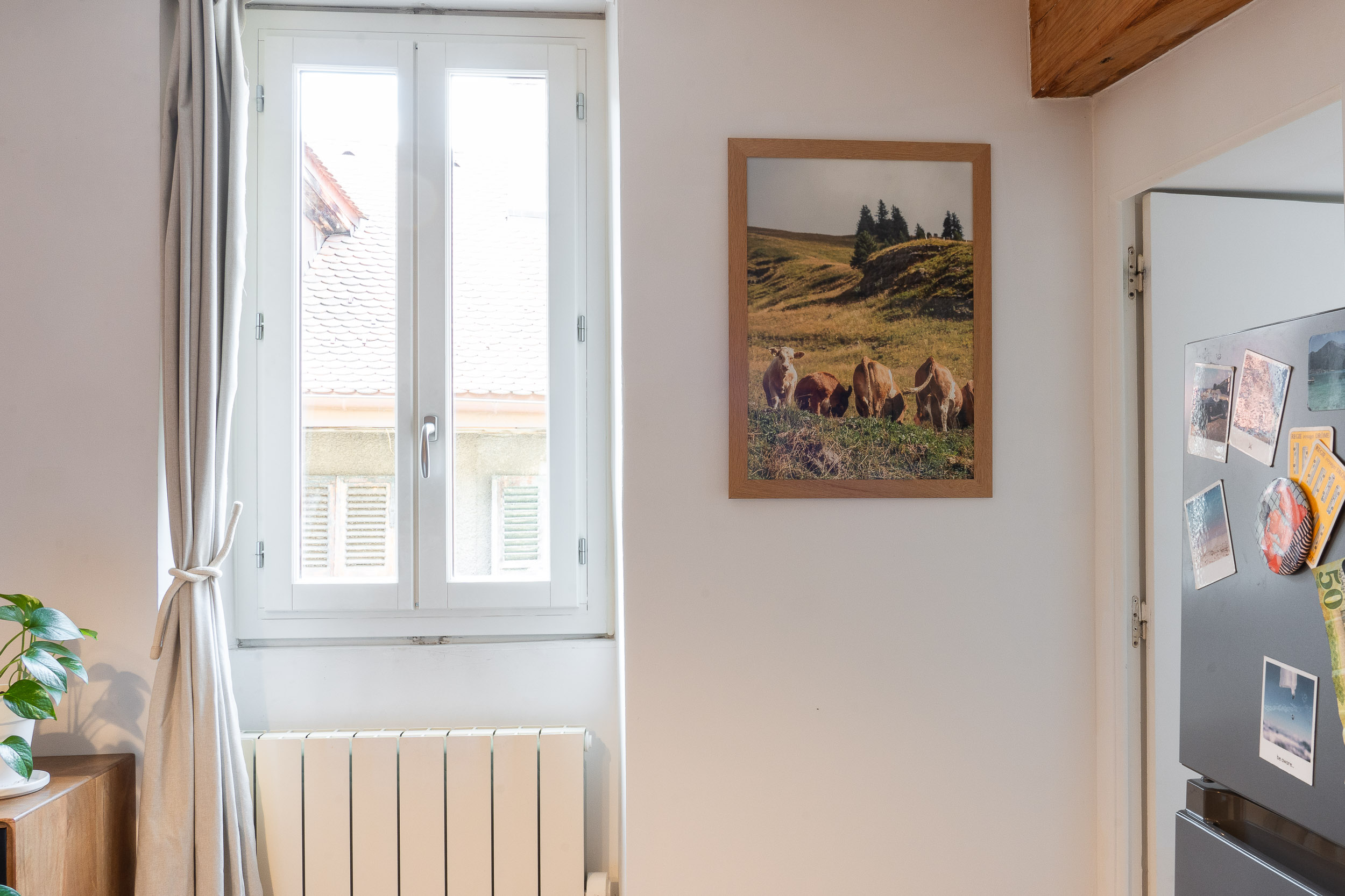 Les fenêtres sont équipées en double vitrage pour atténuer le bruit de la vieille ville.