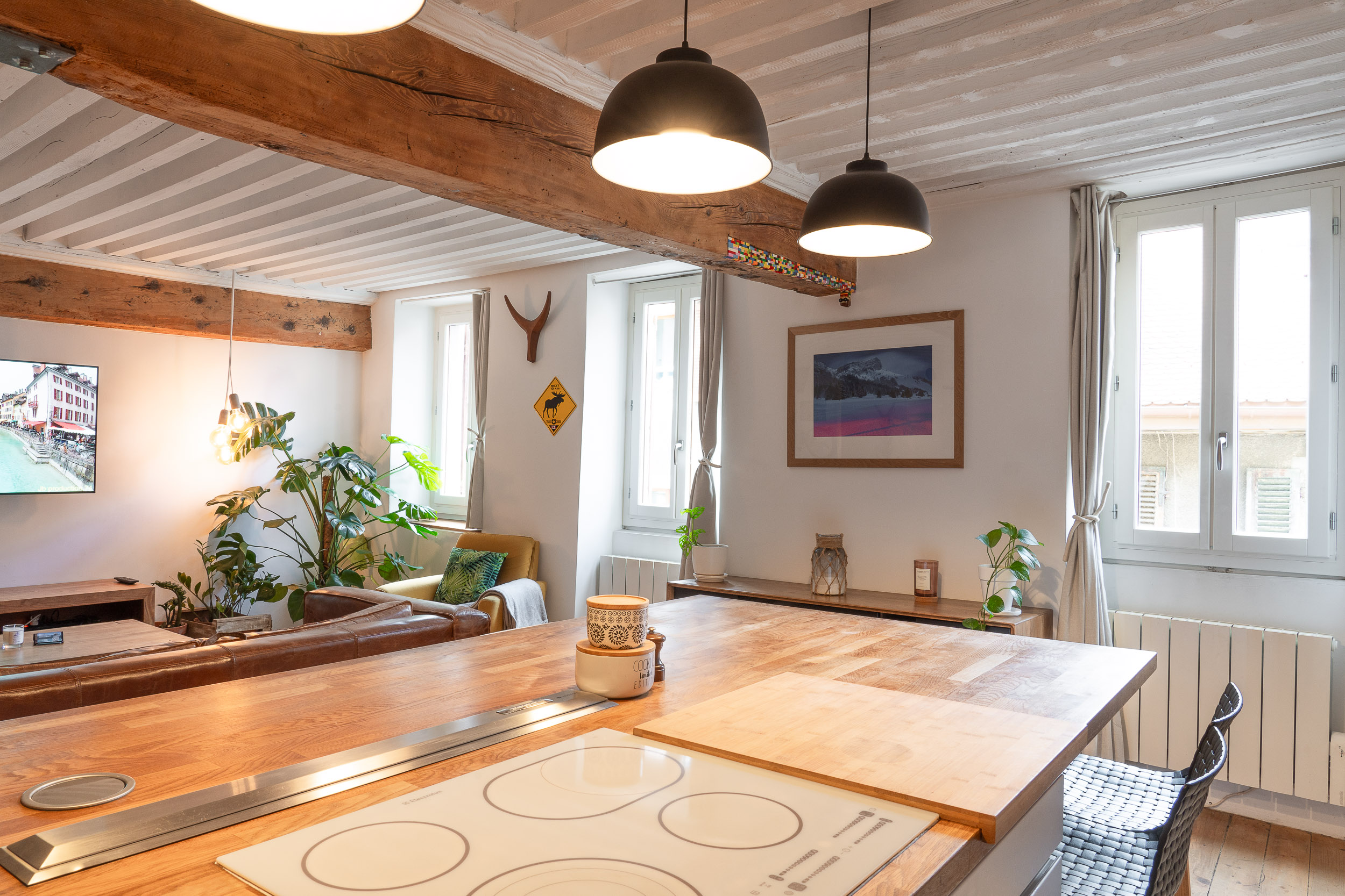 Situé au 4e étage d’un immeuble dans l’hypercentre piétonnier d’Annecy, traversant, très lumineux, au cœur des commodités, T2 de 62 m2, entièrement rénové, conçu pour 2 personnes, idéal pour partir à la découverte à pied du lac et de la vieille ville.