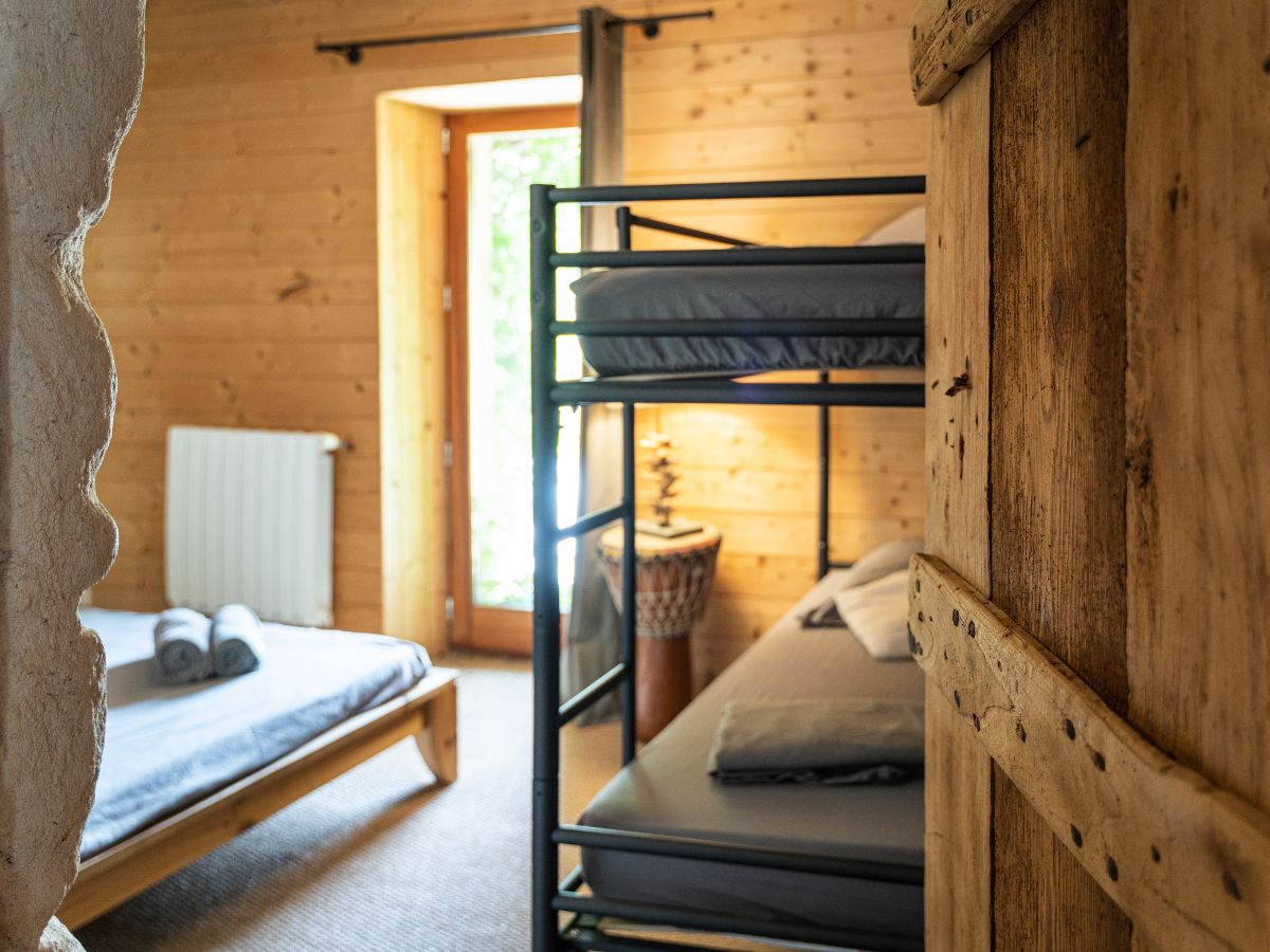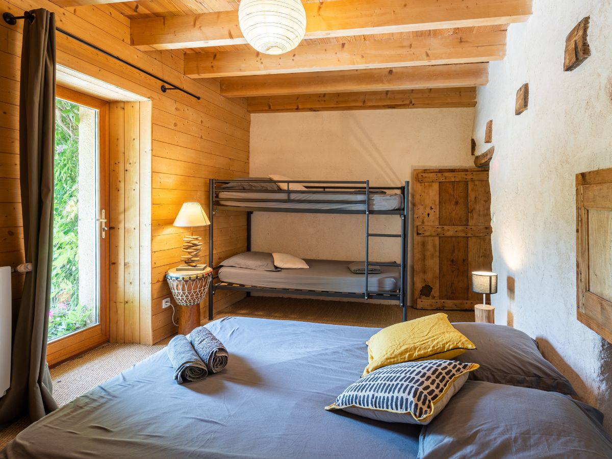 La Grange peut accueillir 8 personnes. Elle se compose de 3 chambres dont deux chambres doubles (lits 180 ou 2x90) et une chambre familiale (lit 140 + 2 lits superposés).