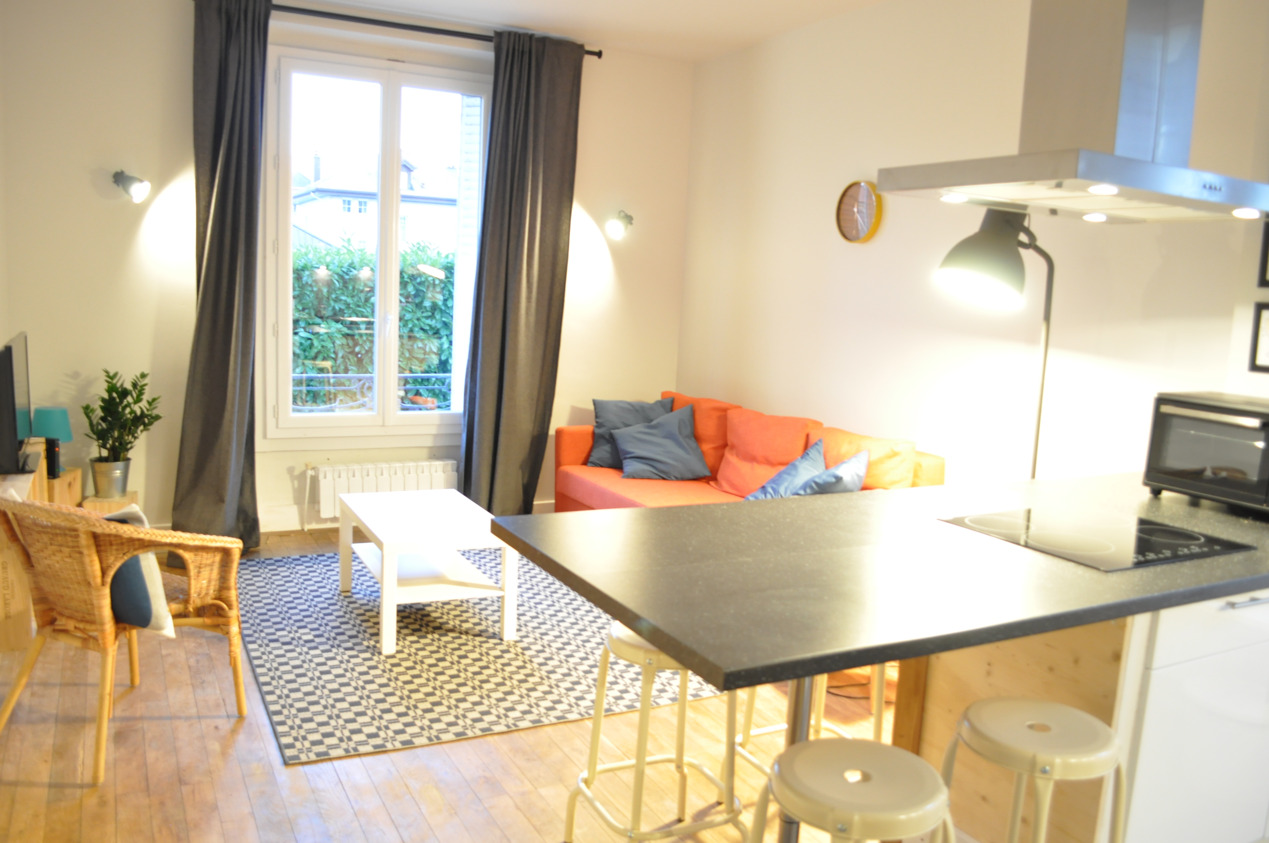 Cosy et spacieux T2 de 55m ² pour 2 personnes max avec un beau jardin de 90M2 exposé S/O. Repensé pour vous offrir tout le confort afin que vous passiez un agréable séjour. Disponible pour 6 nuits au minimum, location au mois possible;)