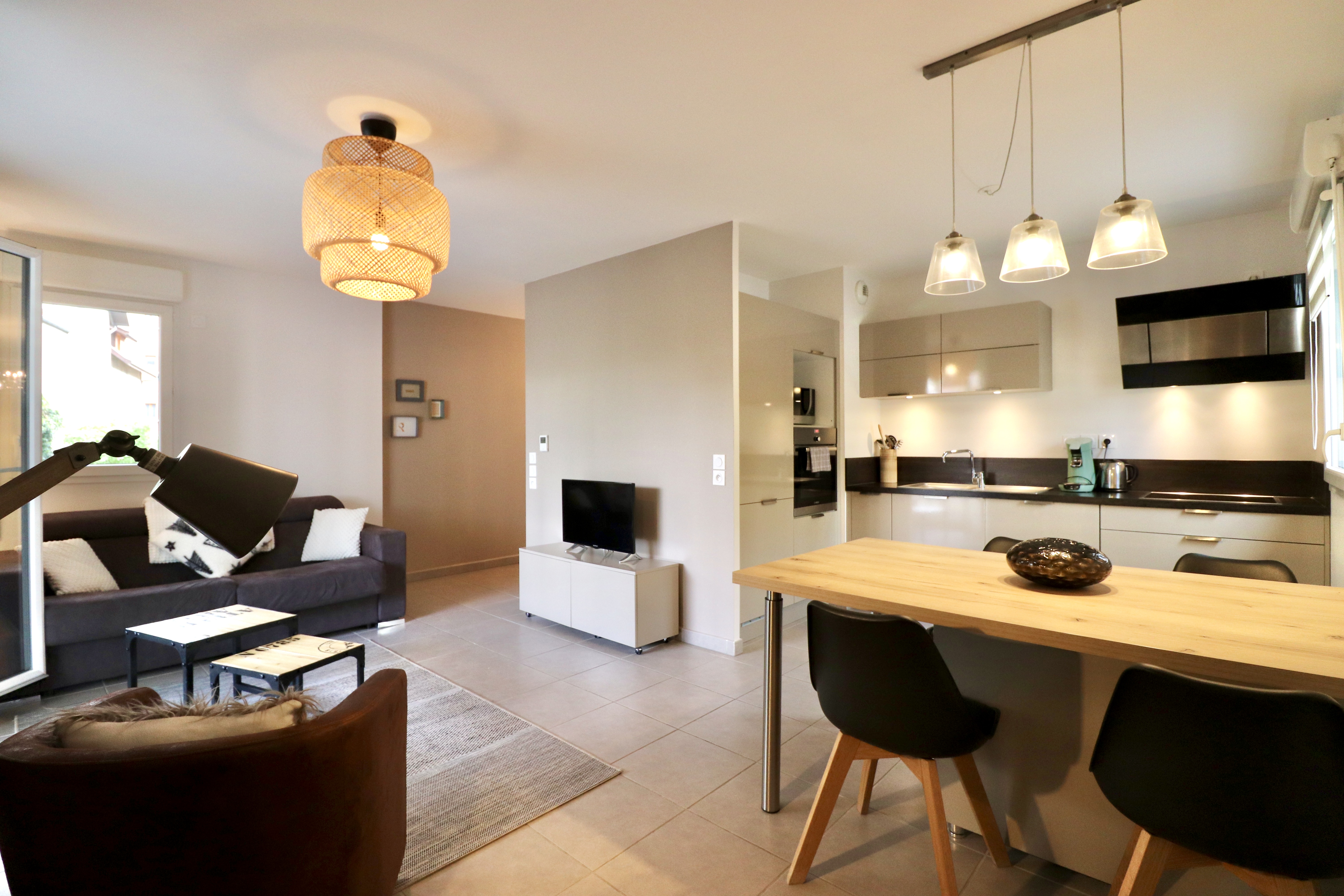A 5 mn à pied des zones piétonnes. Très belle location sur Annecy centre, quartier très calme, parking privatif dans une cour privée. Vélos en prêt .Location entièrement neuve avec équipements de qualité. Cuisine équipée, grande salle de bains.