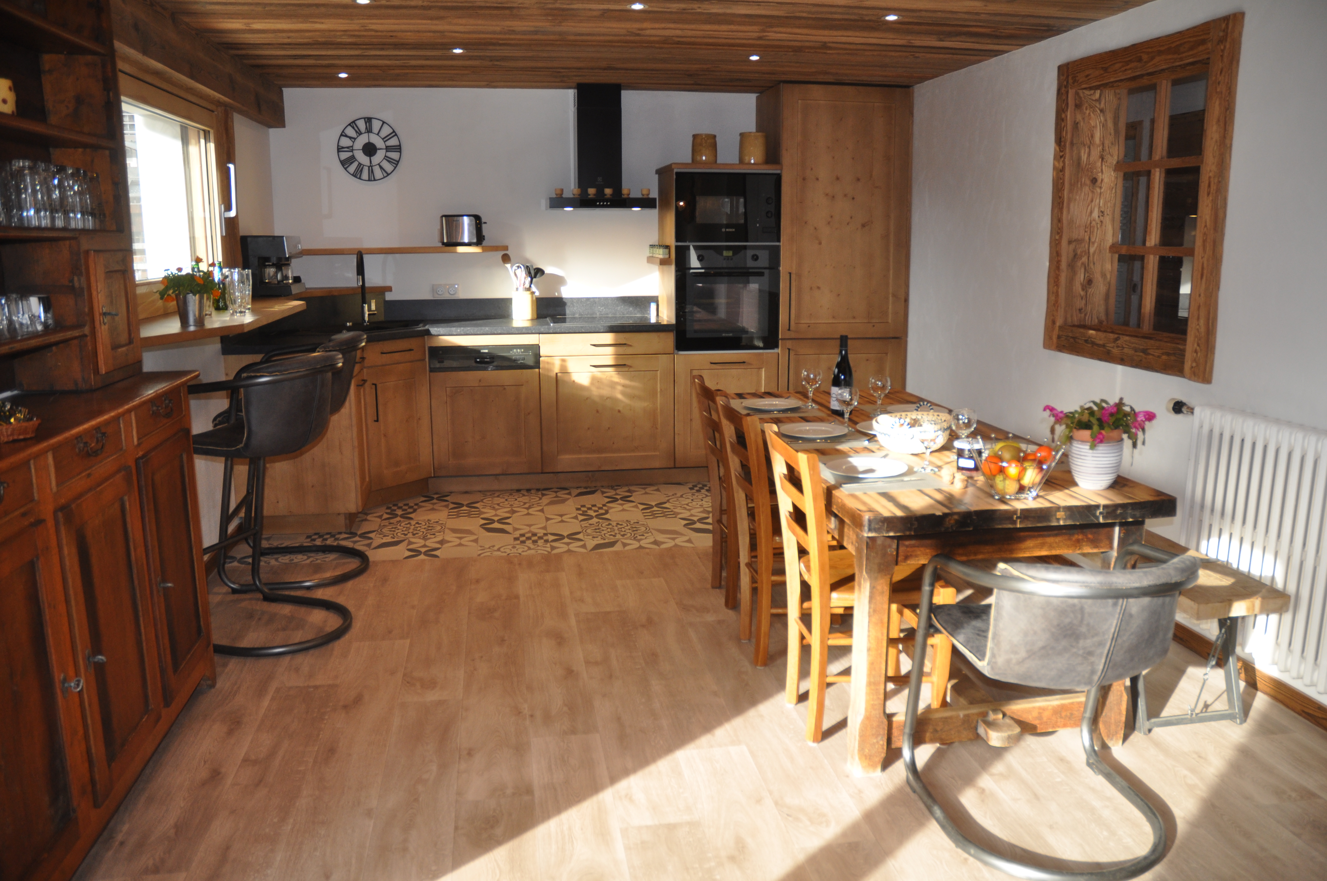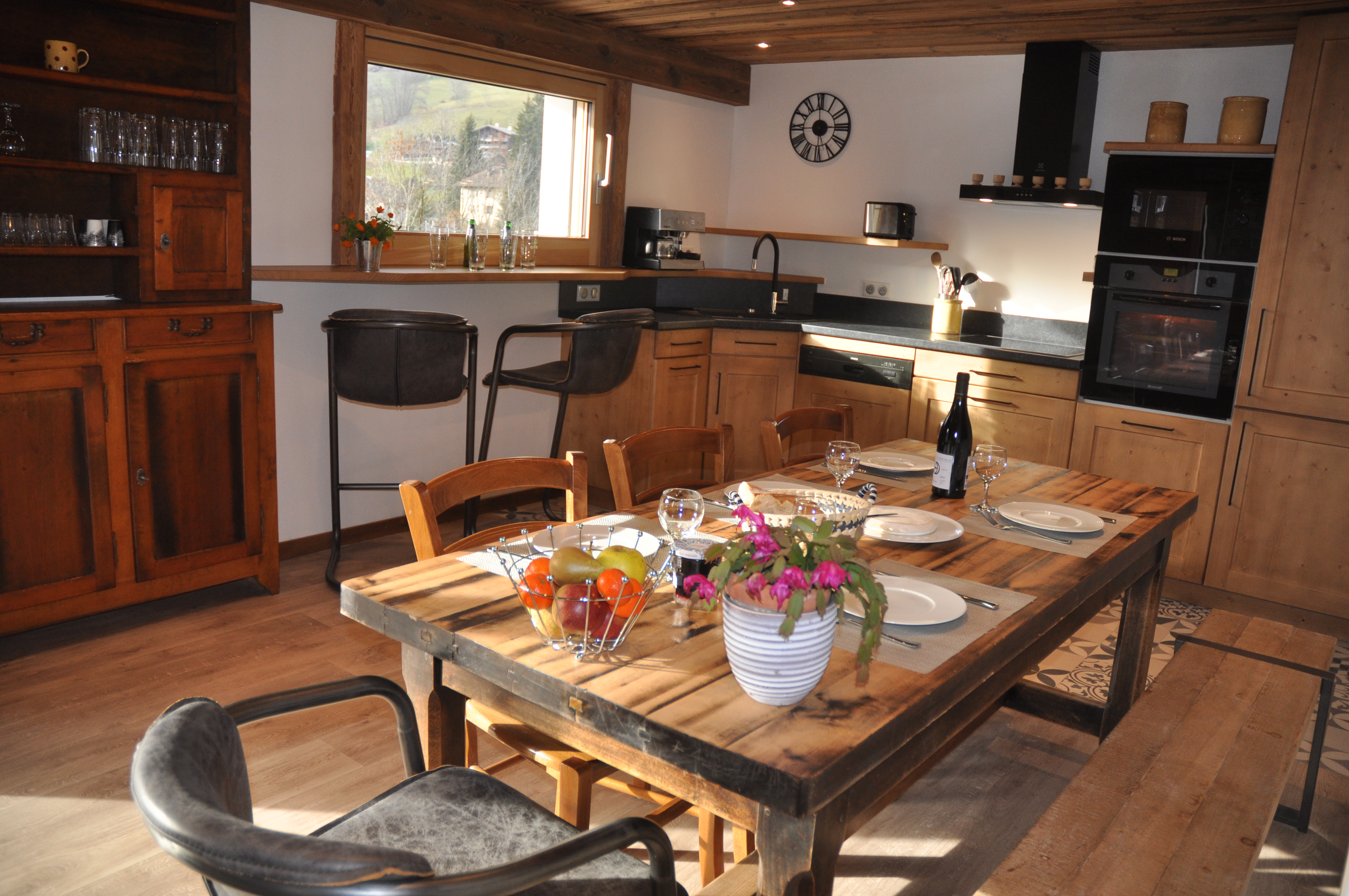 Chalet spacieux et confortable pour 11 personnes, orienté plein sud, à deux pas des commerces et du vieux village. Vue imprenable sur la montagne et les pistes de ski en hiver.