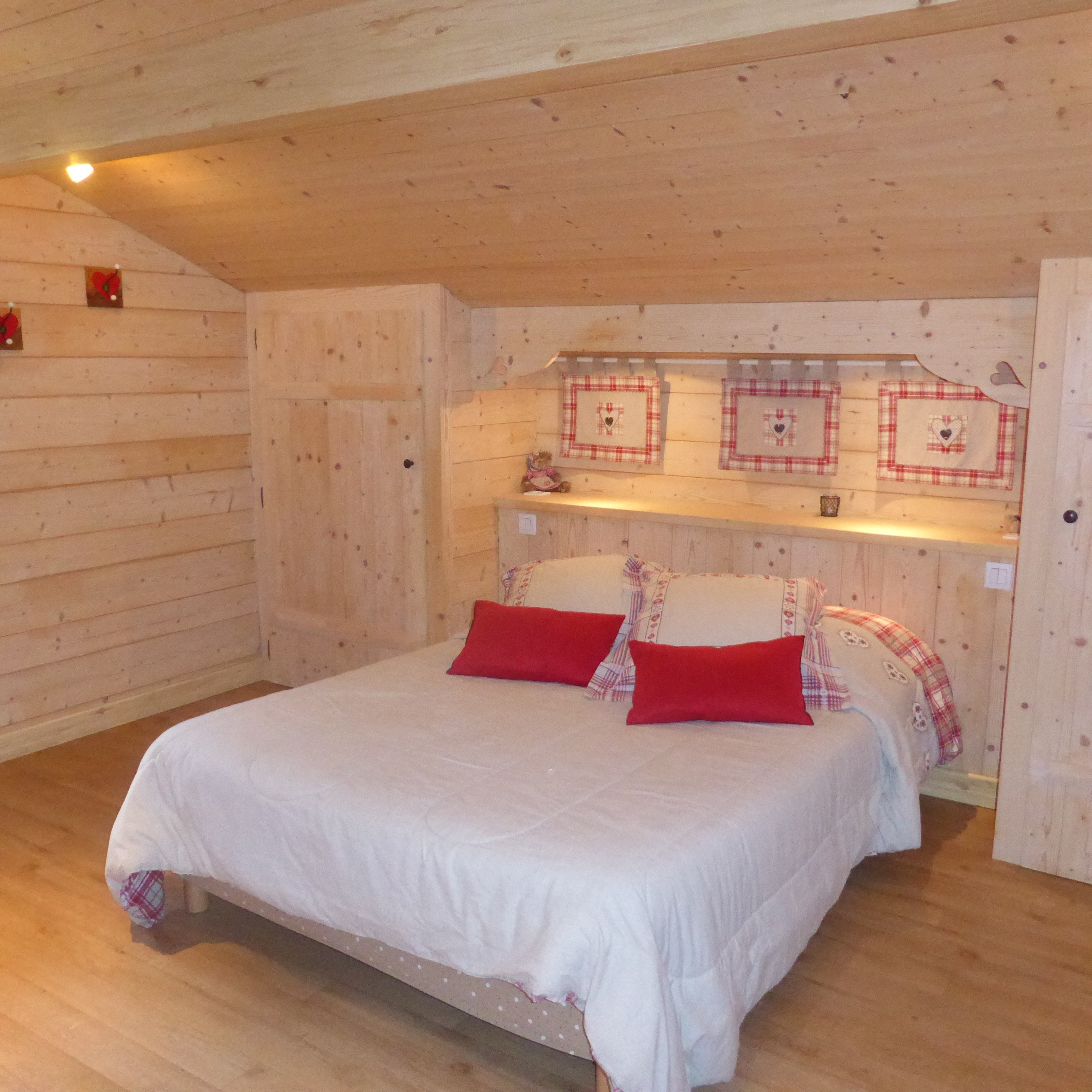 - Clé des champs (Les Gentianes) Chambre avec lit double/Bedroom with a double bed-Clé des champs (Les Gentianes)-Le Grand-Bornand Crédit photo : BASTARD Noël