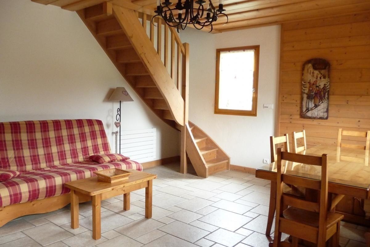 Cadre idéal pour faire une pause et se ressourcer! A mi-chemin entre Samoëns et Les Gets, ce gîte mitoyen (40 m2 + mansardes) est situé dans la résidence Les Amaryllis comprenant également 1 gîte et le logement des propriétaires.