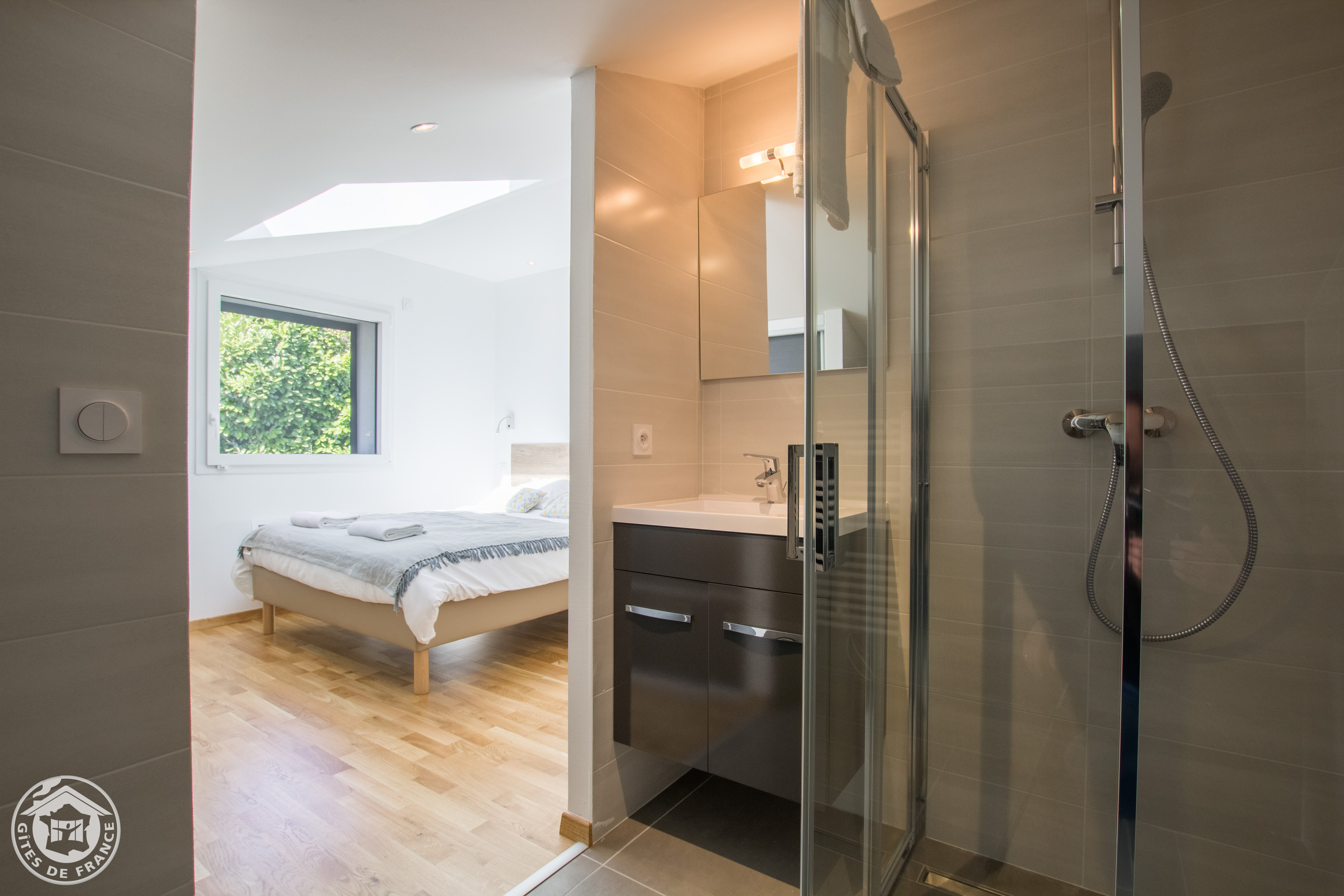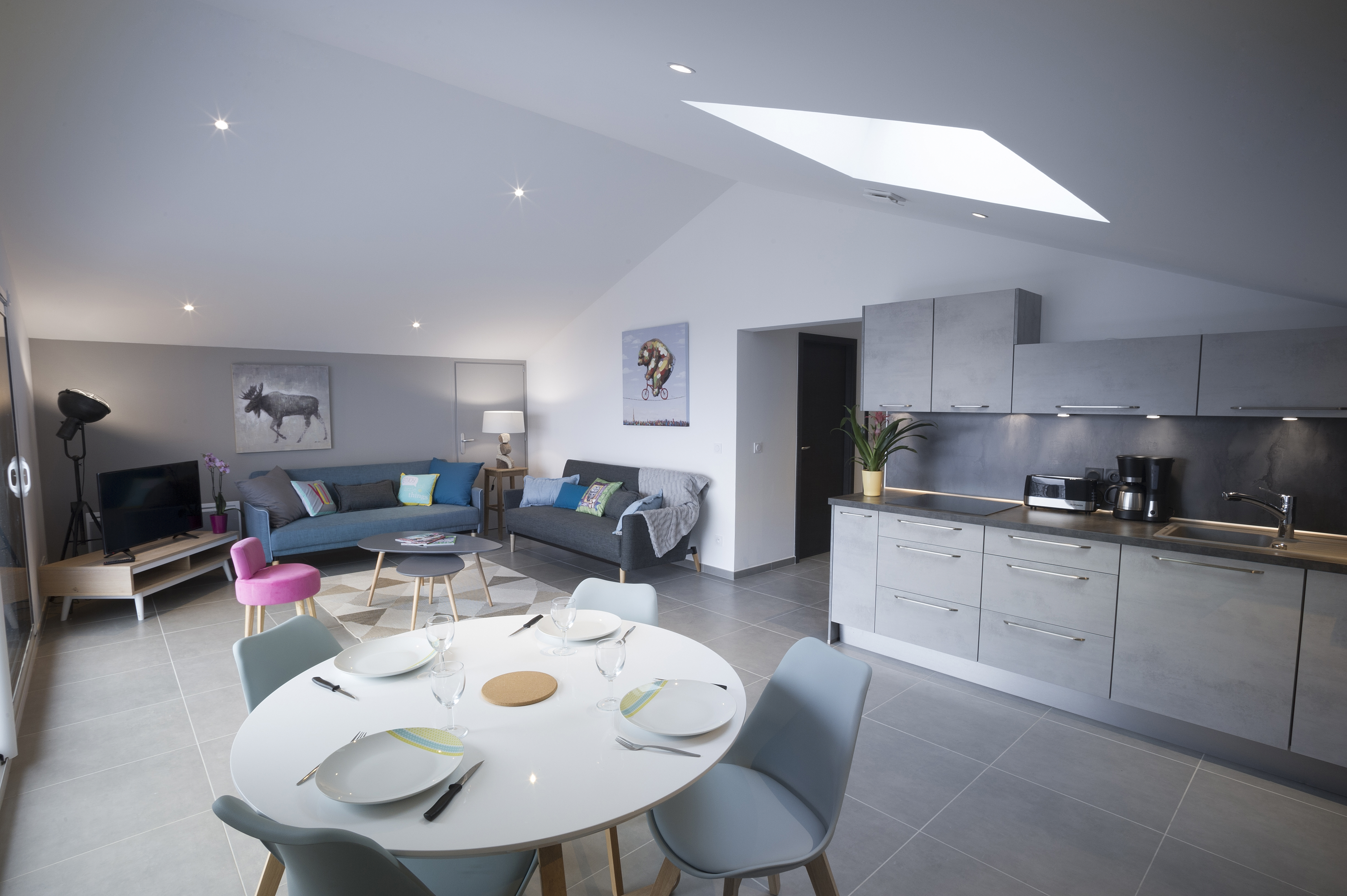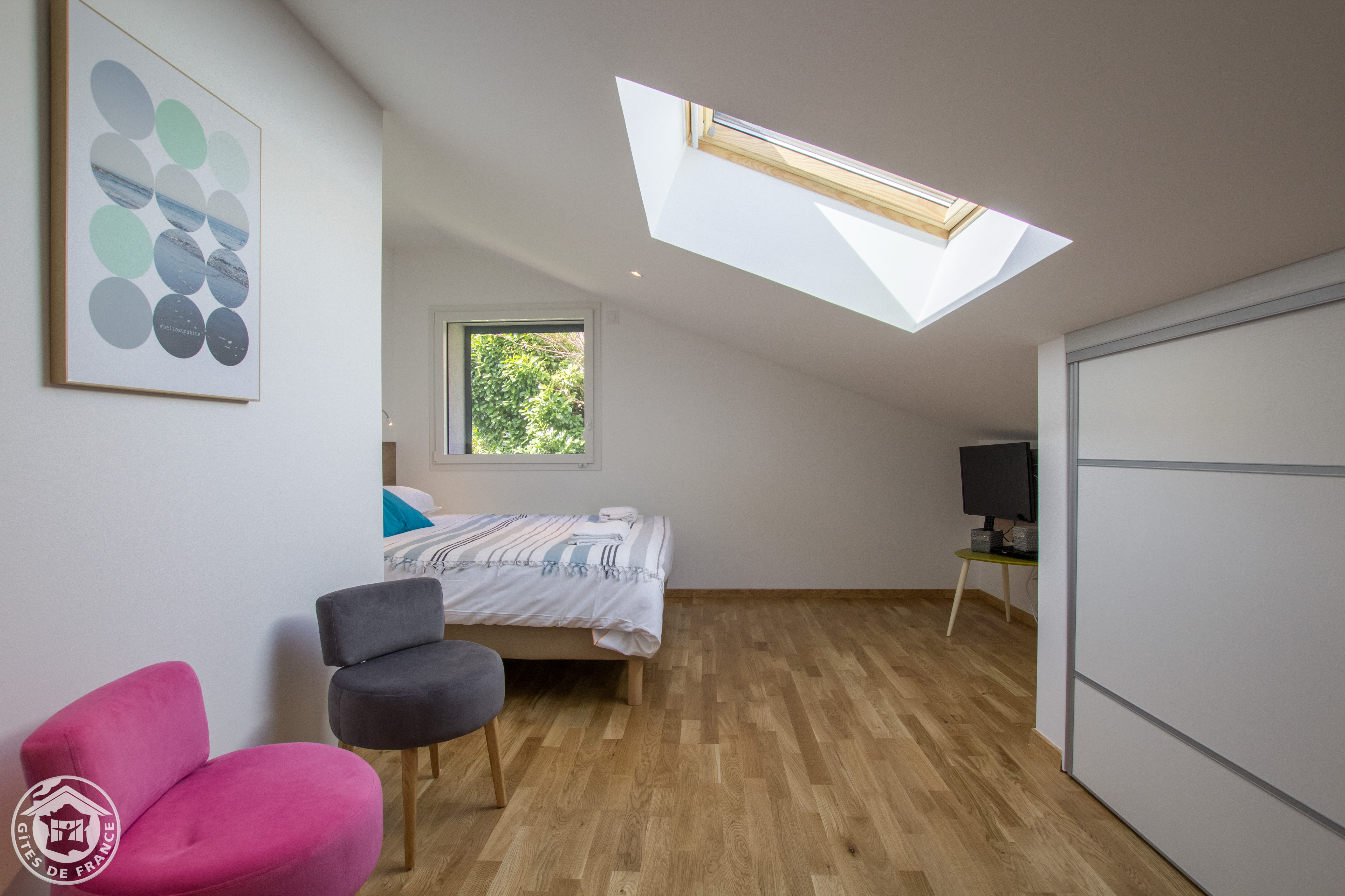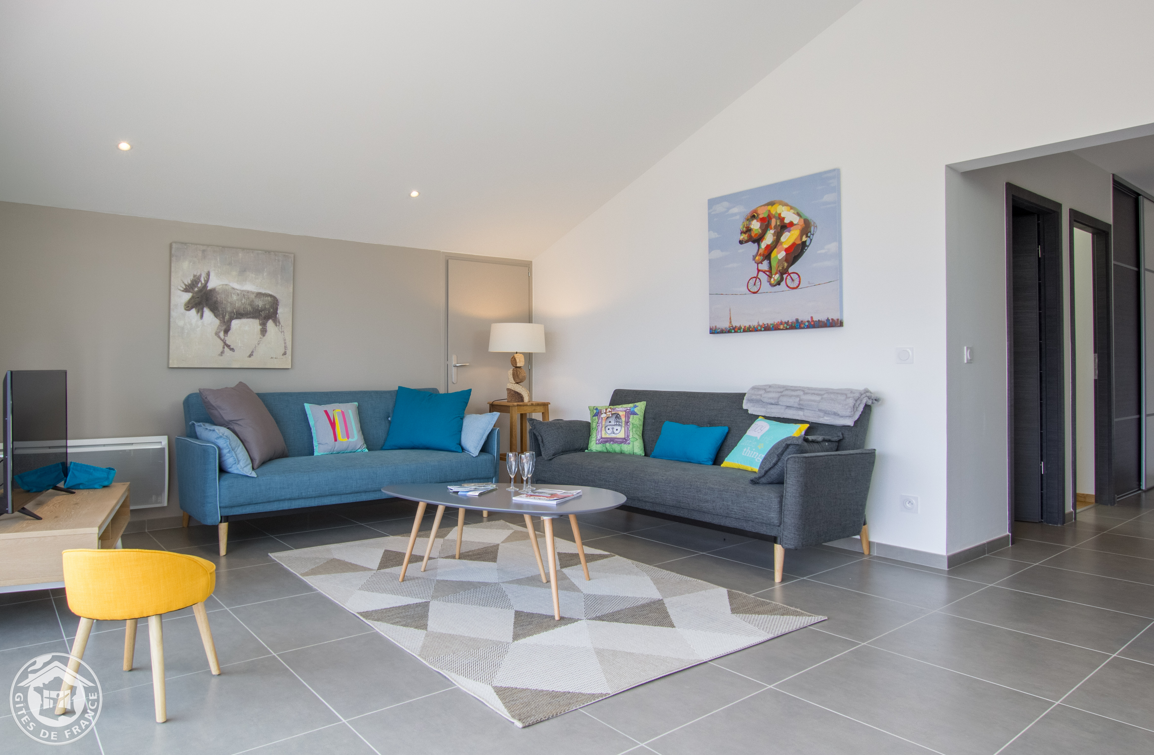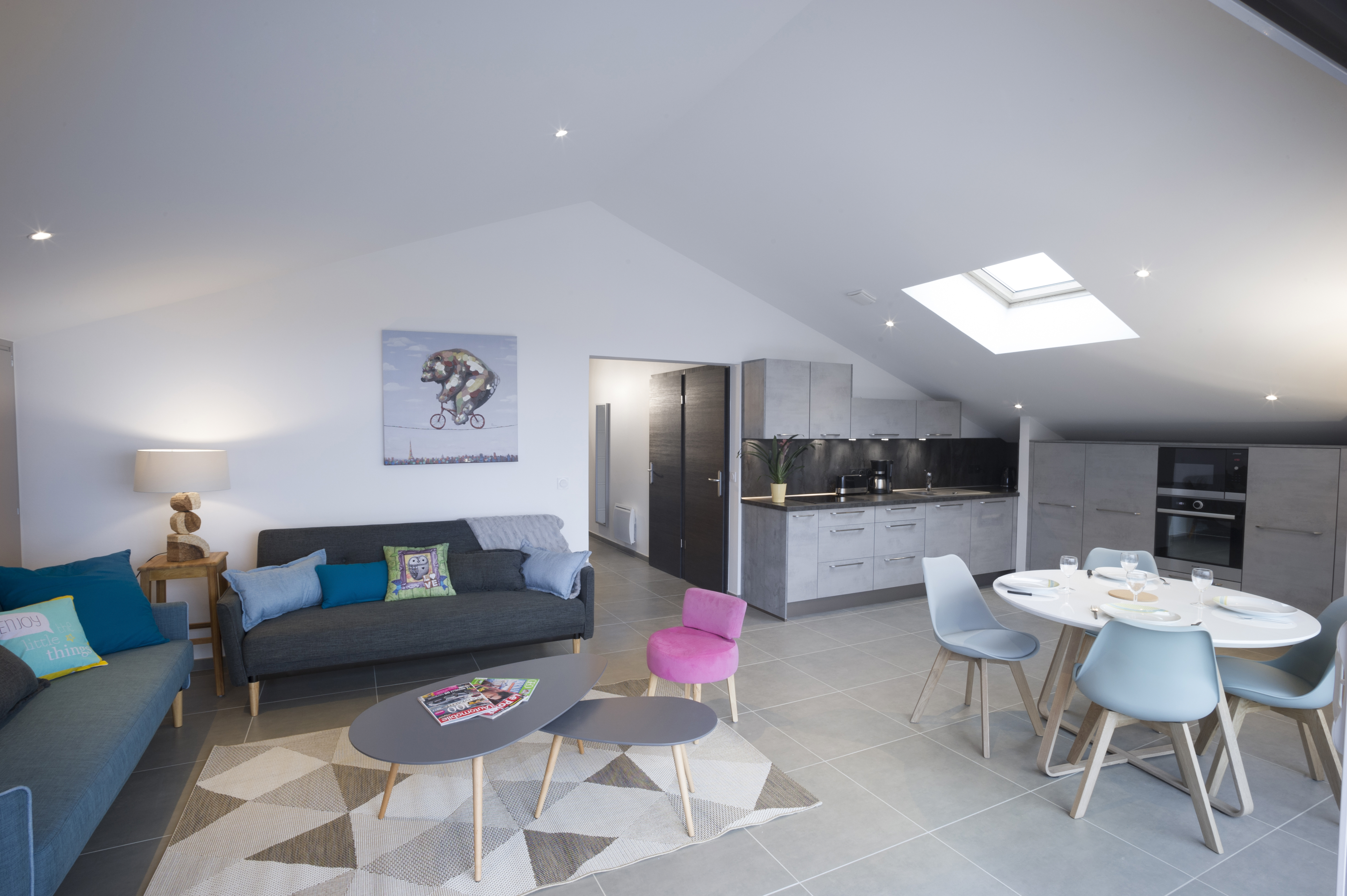 Pour quelques jours ou plus, profitez d’un grand appartement d’une superficie de 80 m² comprenant une pièce principale, deux chambres séparées dont une chambre parentale avec une salle d’eau, une cuisine entièrement équipée, des toilettes et d’une salle de bain séparée avec sèche-linge et lave-linge.