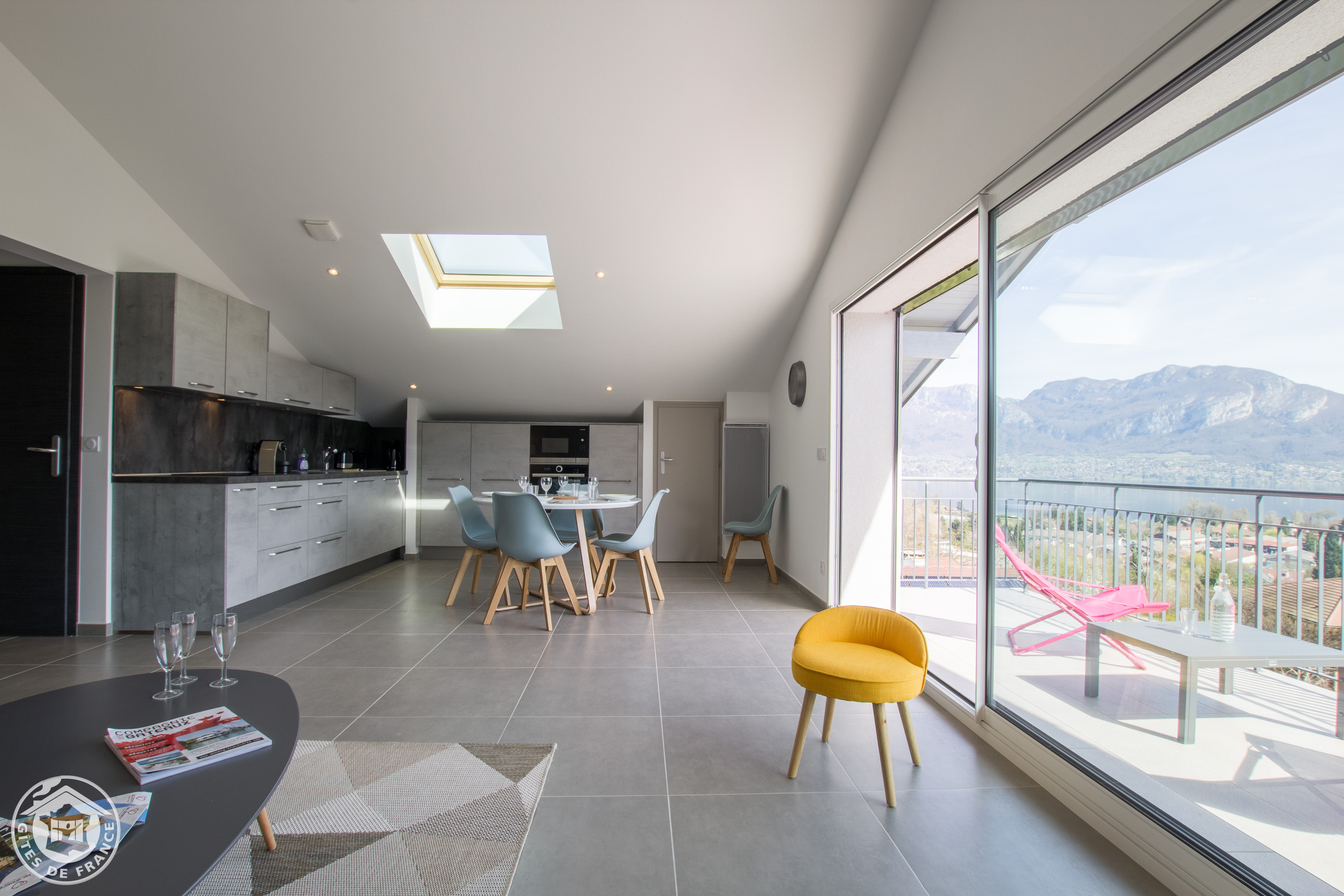Surplombant le lac d'Annecy, magnifique appartement sur les hauteurs de Sevrier, commune située sur les rives du lac et limitrophe à Annecy. Emplacement très privilégié, prestations de grande qualité, terrasse privative.