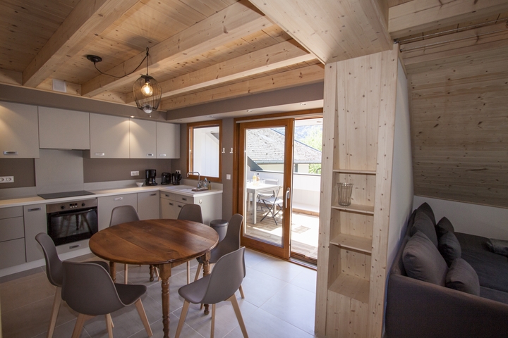 - La Sambuy location de Vacances Vesonne Sources du lac d'Annecy Entre lac et montagnes terrasse avec table Crédit photo : Entre lac et montagnes