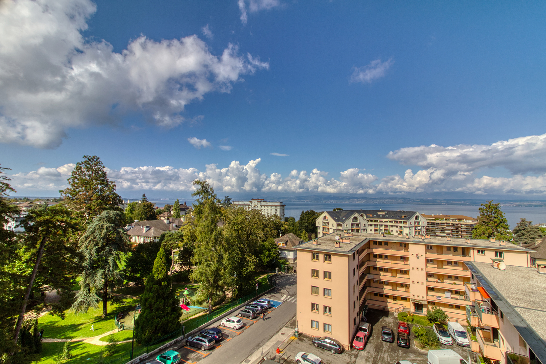 Très beau studio refait à neuf et entièrement équipé, au calme dans résidence de renom, bénéficiant d’une magnifique vue sur le lac et la ville.
