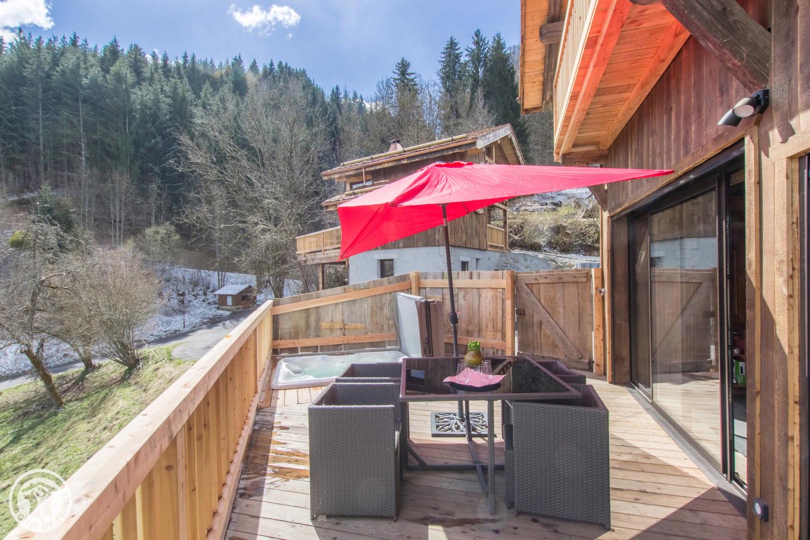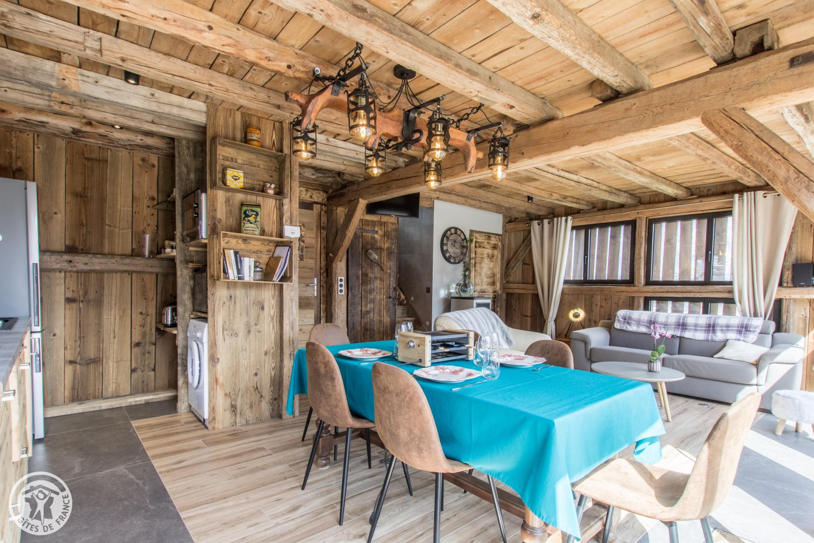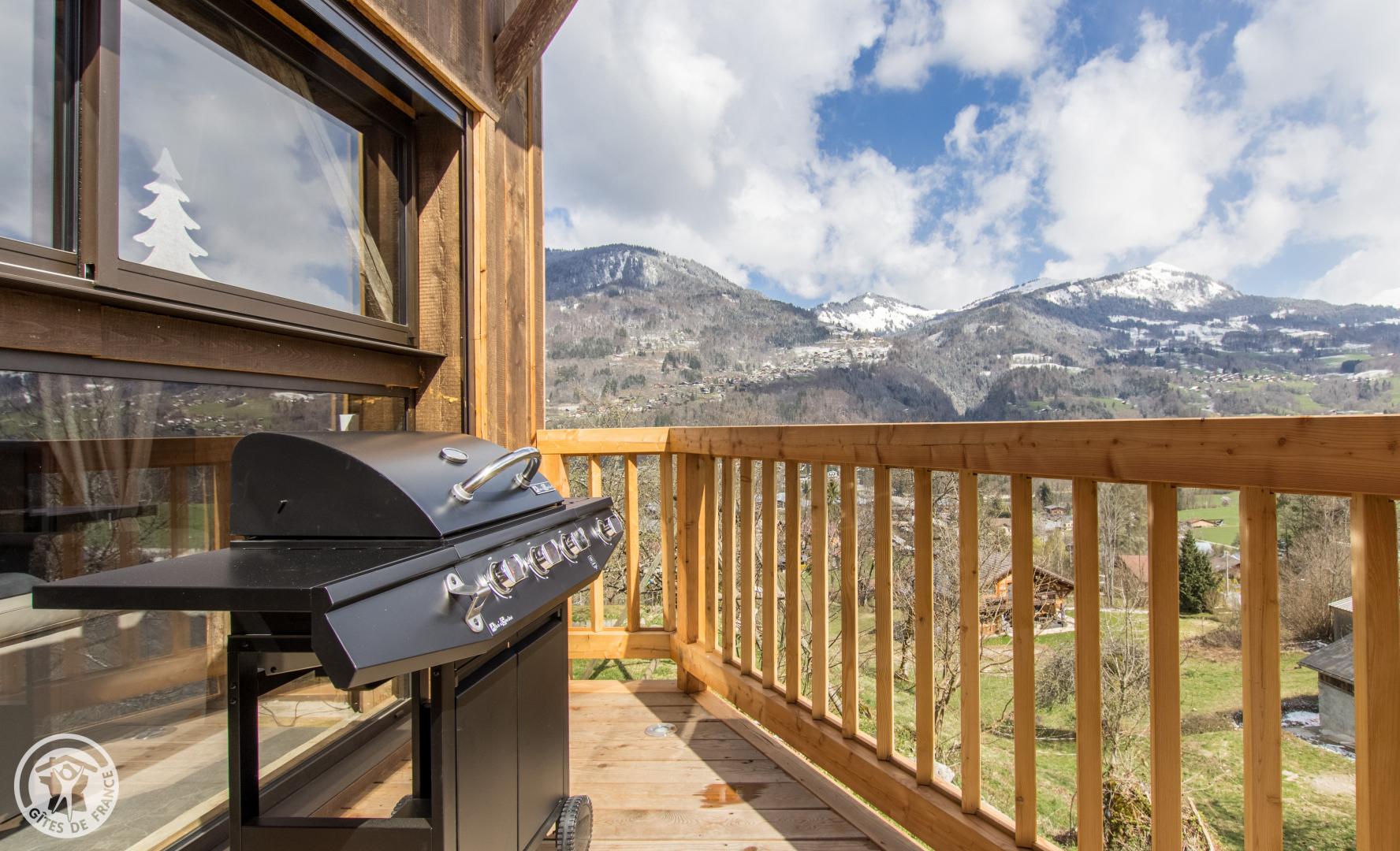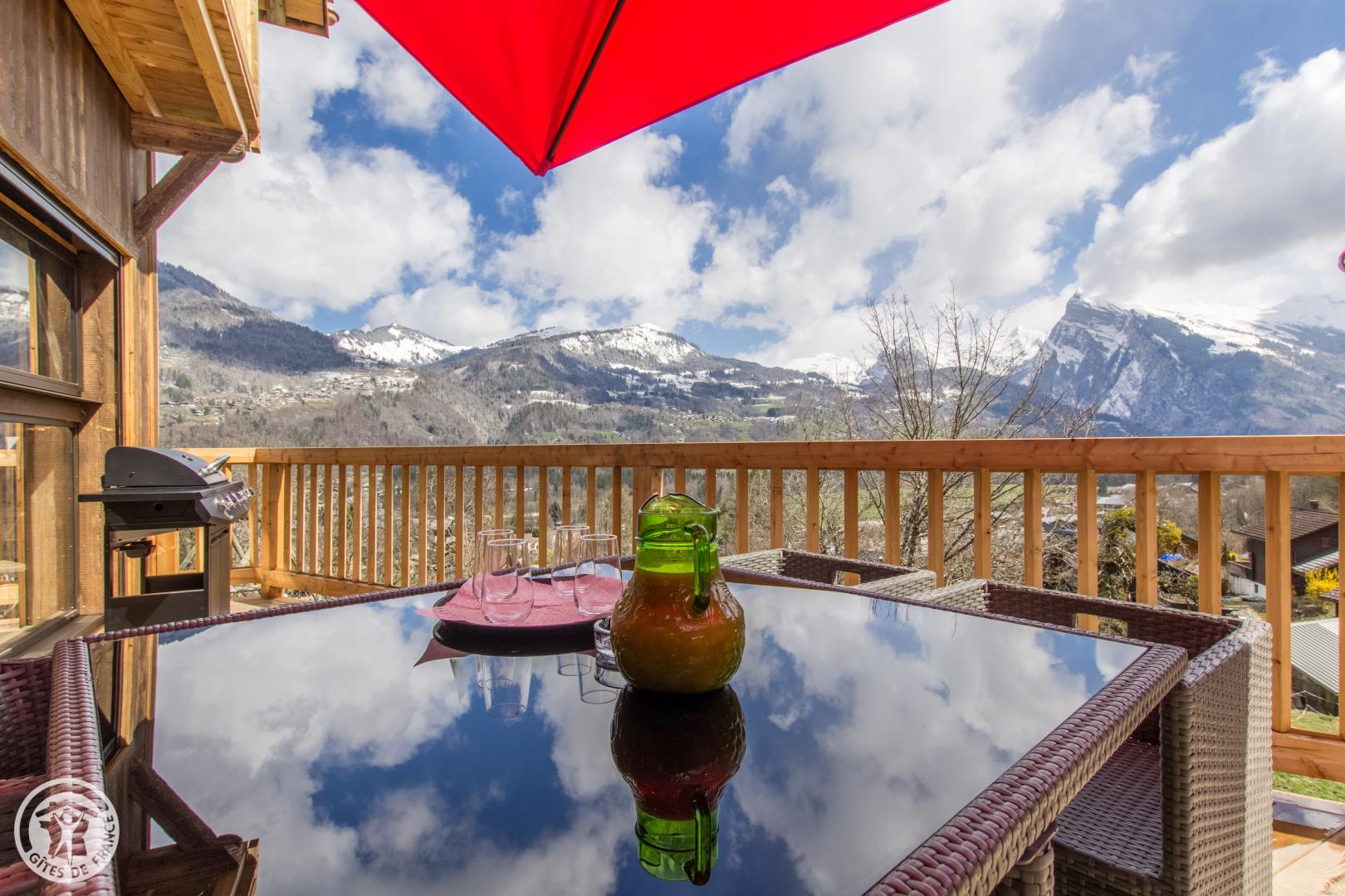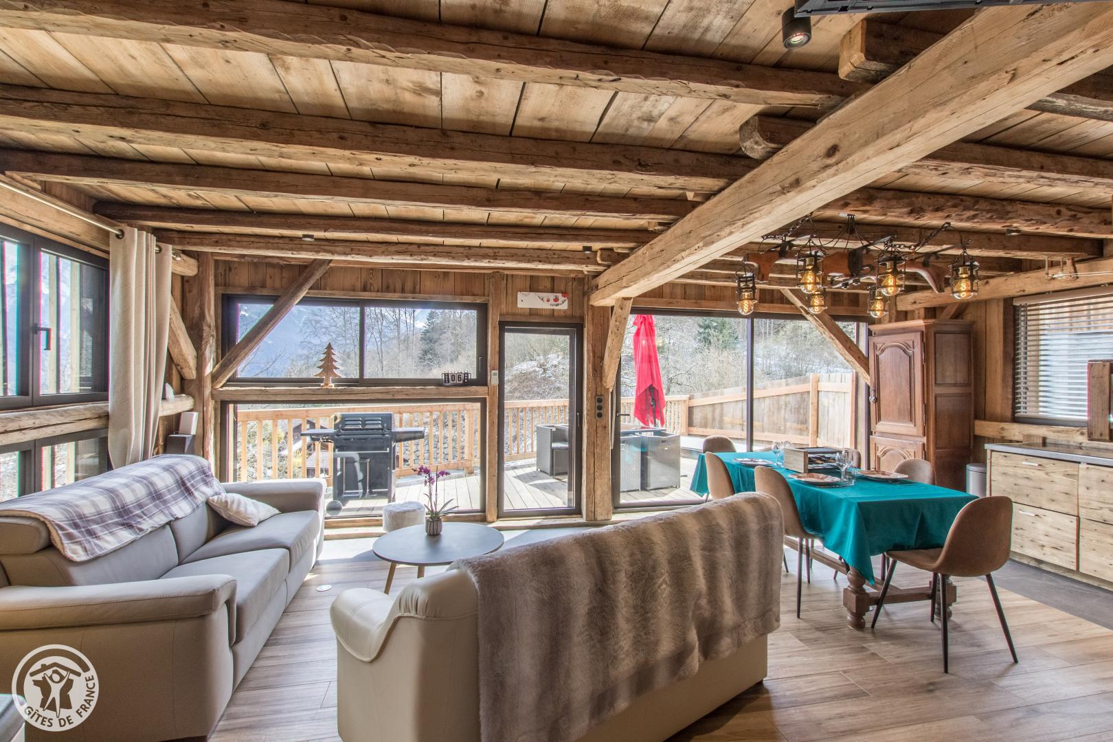 Les larges baies vitrées de la pièce de vie vous permettront d’admirer la vallée du Giffre et vous donneront accès à la terrasse.