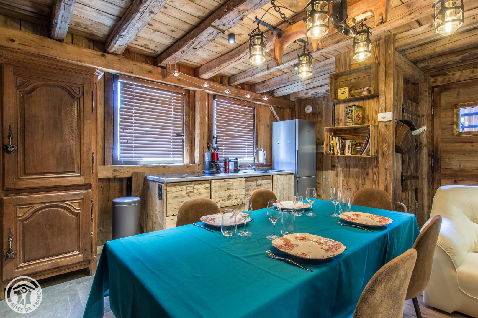 L’espace cuisine possède tout l’équipement approprié pour exprimer votre art. Il est ouvert sur la pièce de vie, vous permettant ainsi de rester au contact de vos convives. La large table de ferme sera en prise directe avec le panorama extérieur, tout comme le salon douillet où vous profiterez de la flamme du poêle, de la vue sur le mont du Criou ou de l’équipement vidéo.