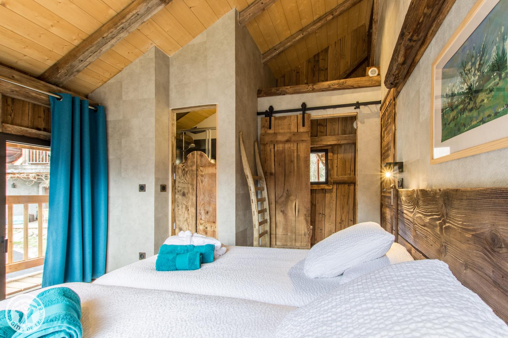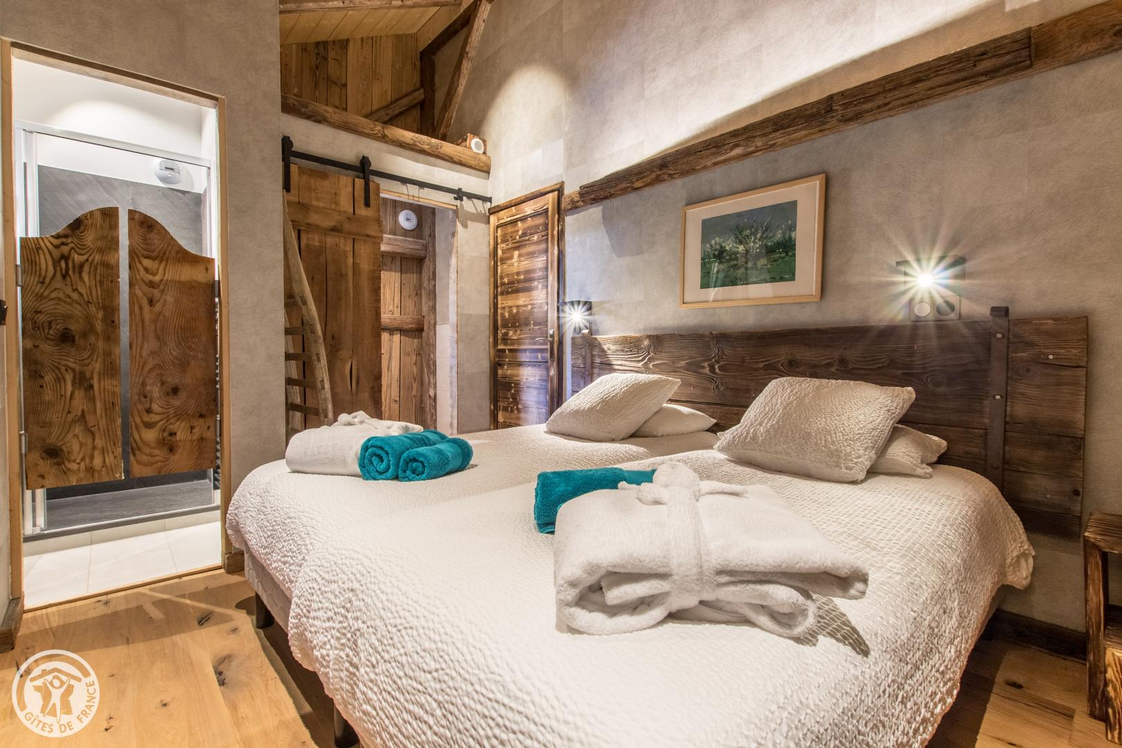 Les 2 chambres à l’étage vous éblouiront, elles aussi par le point de vue exceptionnel sur la vallée. Equipées de salle de bains avec WC indépendants, et de télévision, elles sont agrémentées par des balcons et un choix de matériaux qui permettent à notre Remise de conserver tout son aspect traditionnel.