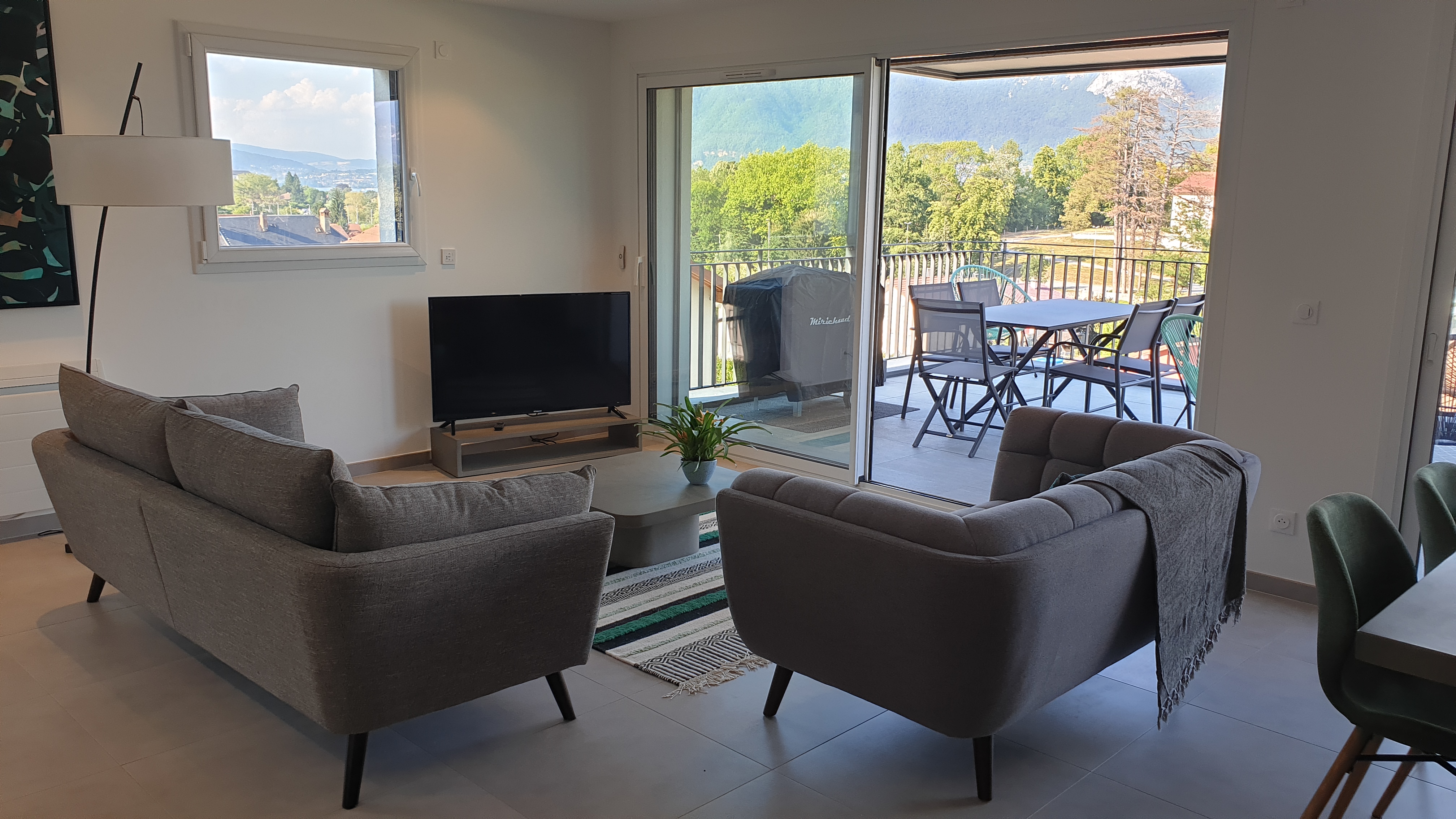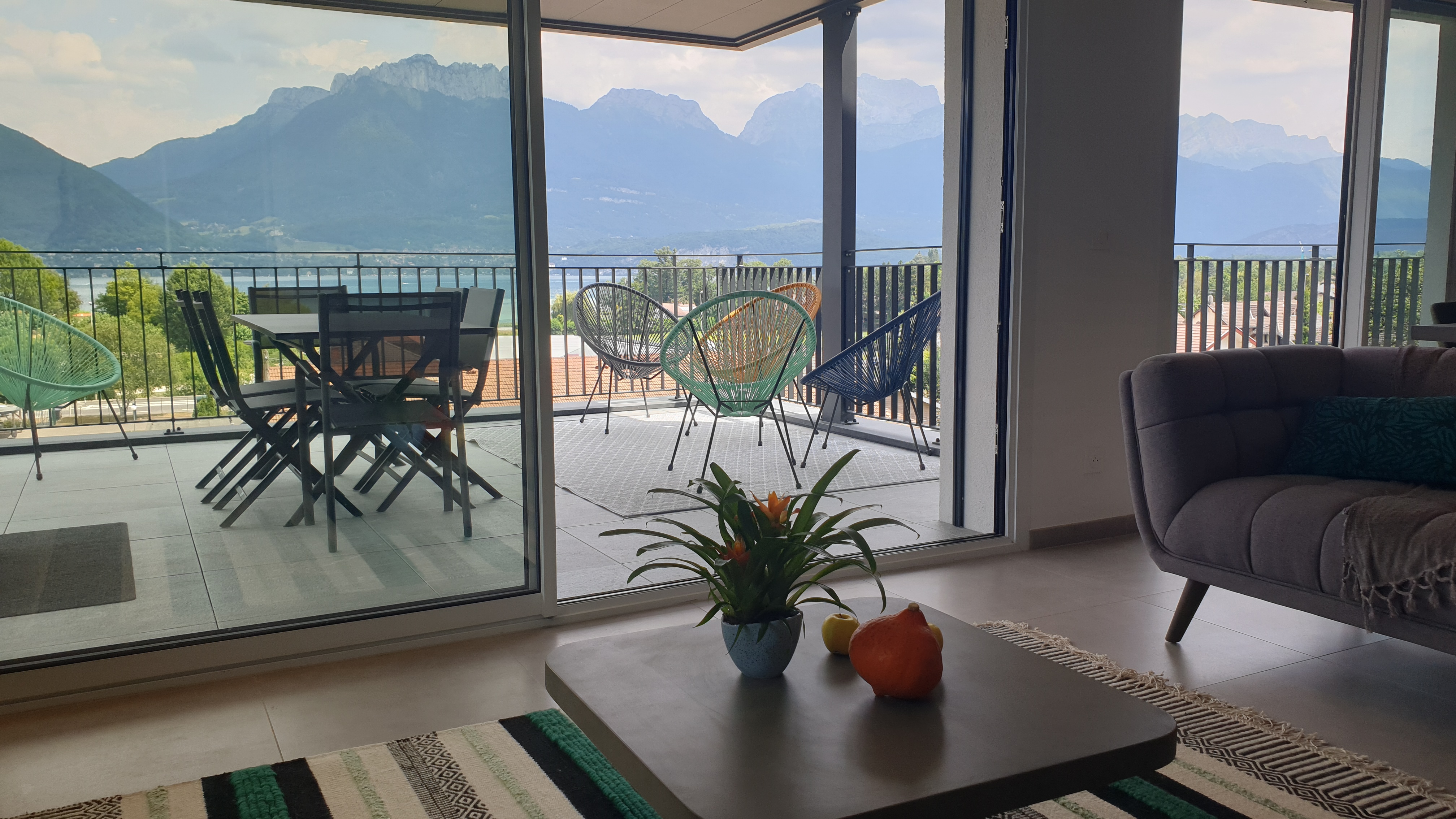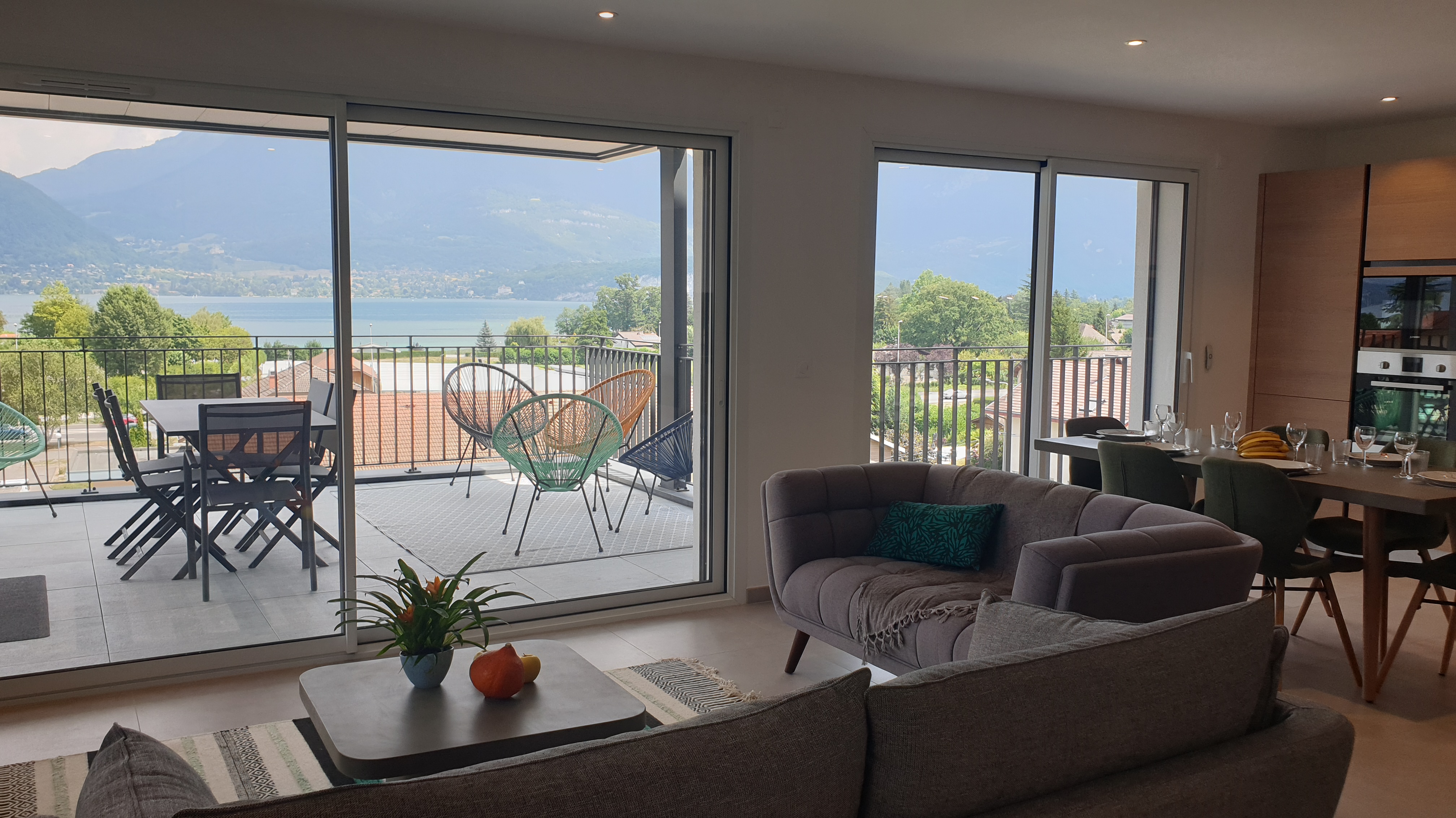 Surplombant le lac d'Annecy, magnifique appartement sur les hauteurs de Sevrier, commune située sur les rives du lac et limitrophe à Annecy. Emplacement très privilégié, prestations de grande qualité, terrasse privative.