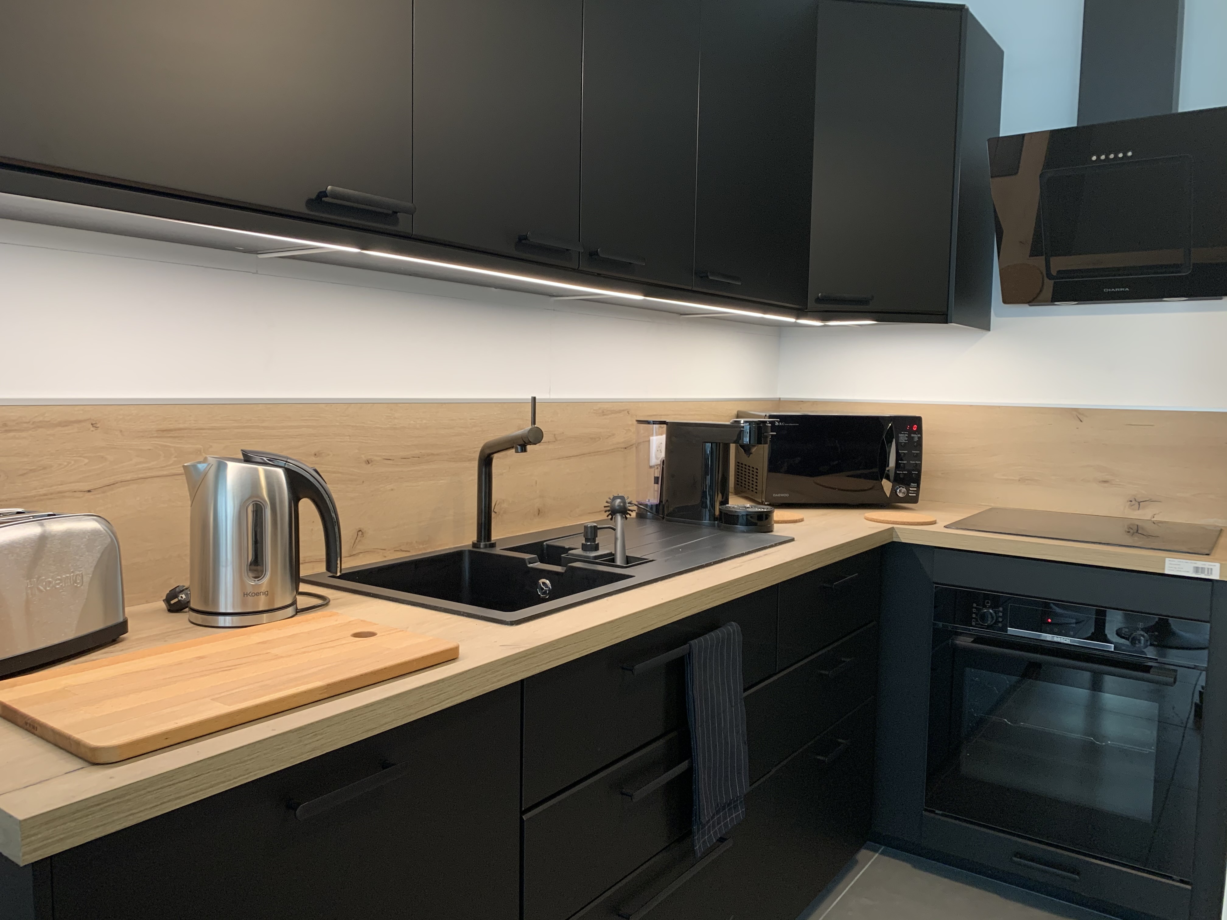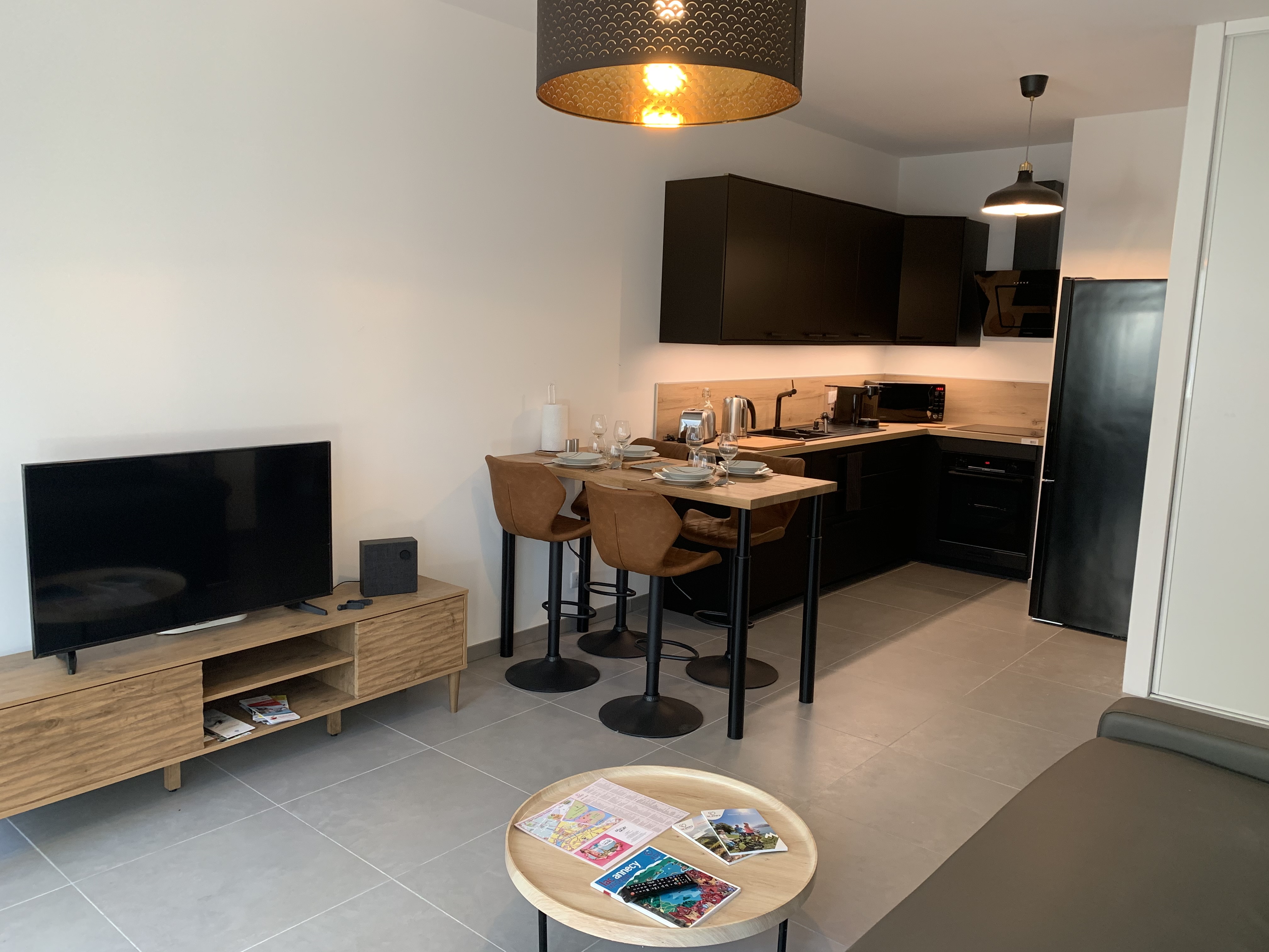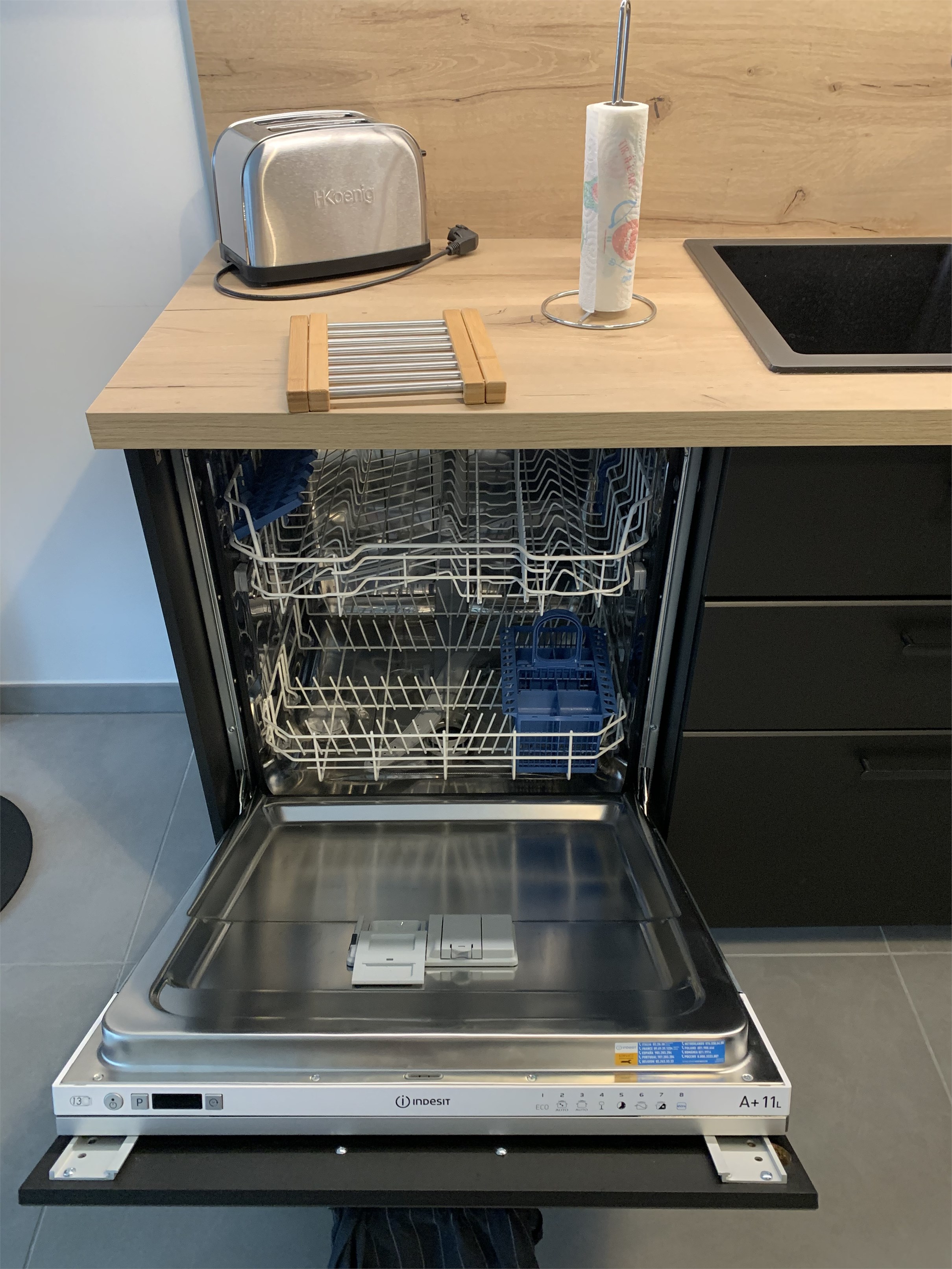 Une cuisine entièrement équipée : lave-vaisselle, four, machine à café..