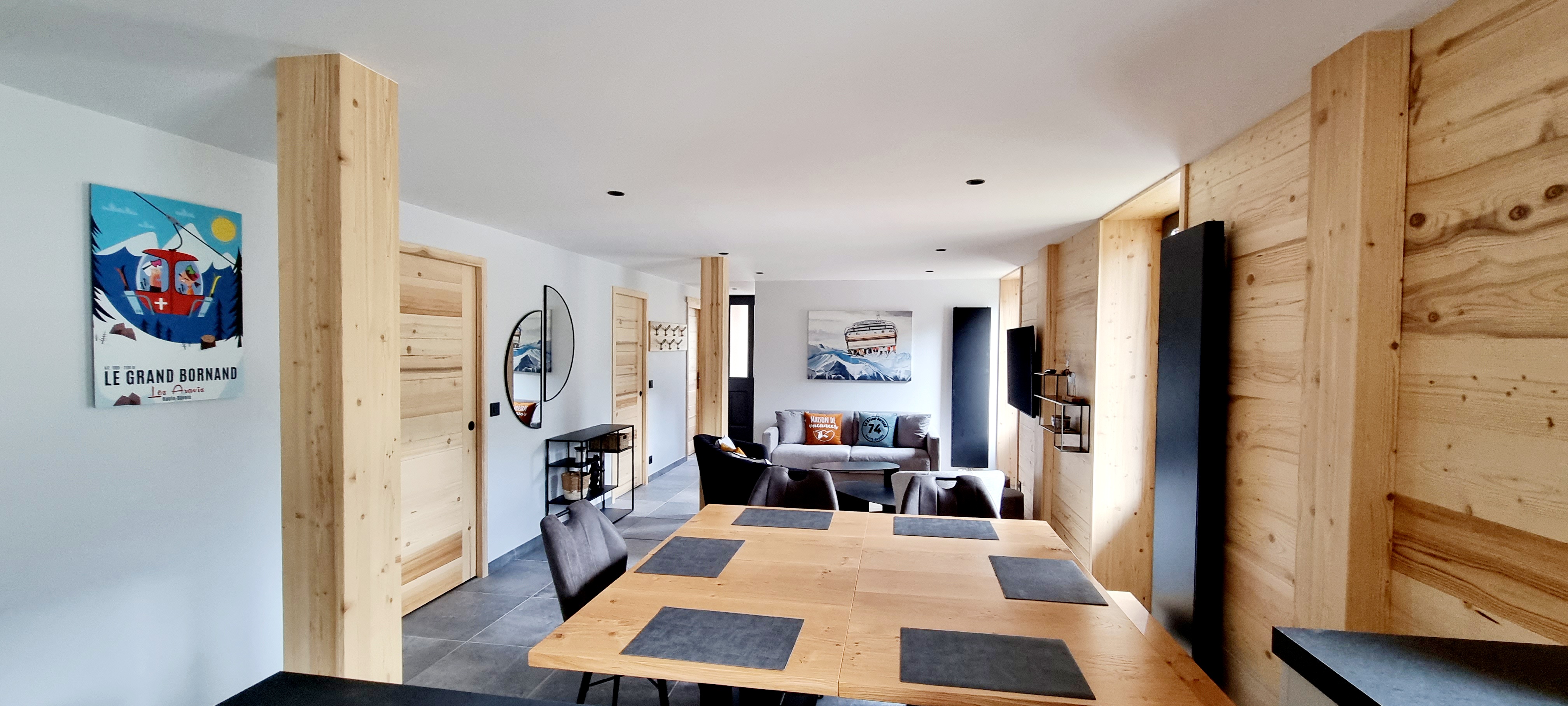 Chalet tout confort 12 personnes, vue magnifique, jeux et cinéma. Charme contemporain, lumineux et confortable, décoration raffinée, cheminée, terrasses ensoleillées.