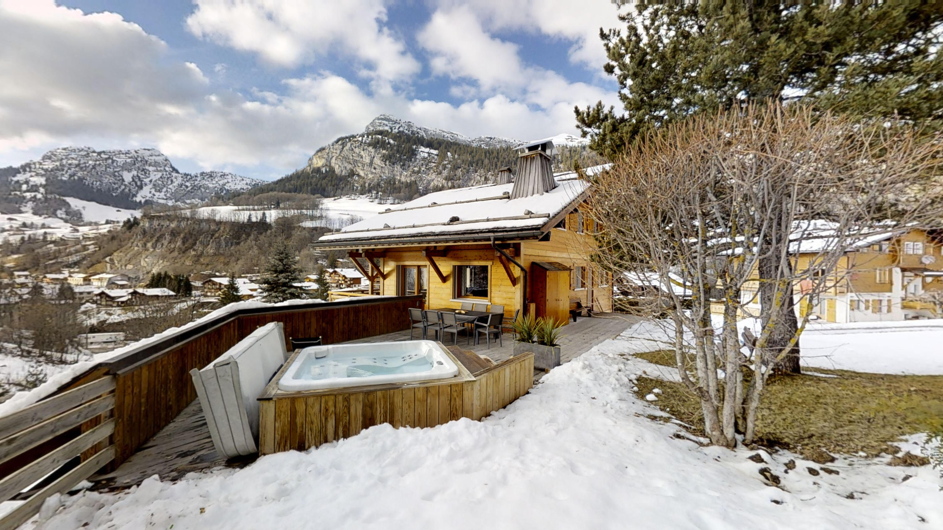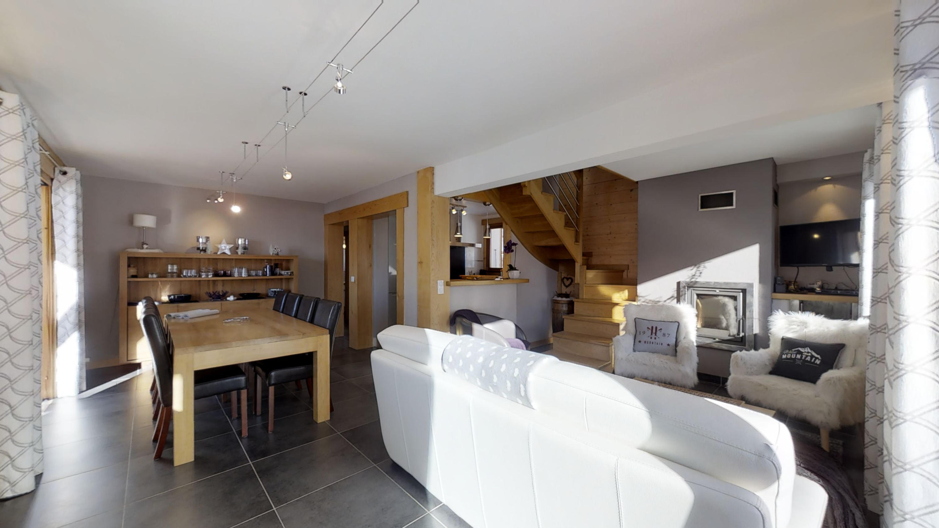 Chalet tout confort 12 personnes, vue magnifique, jeux et cinéma. Charme contemporain, lumineux et confortable, décoration raffinée, cheminée, terrasses ensoleillées.