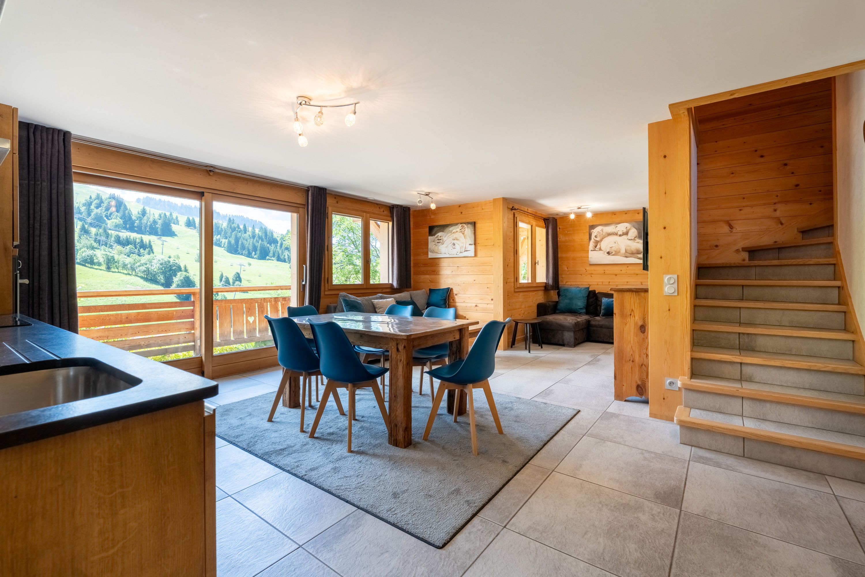 Magnifique appartement en haut de chalet, superbe vue sur les pistes. Idéal pour 6 à 8 personnes, coin mezzanine. Beaucoup de cachet. Le plus : lits faits à l'arrivée et ménage inclus.