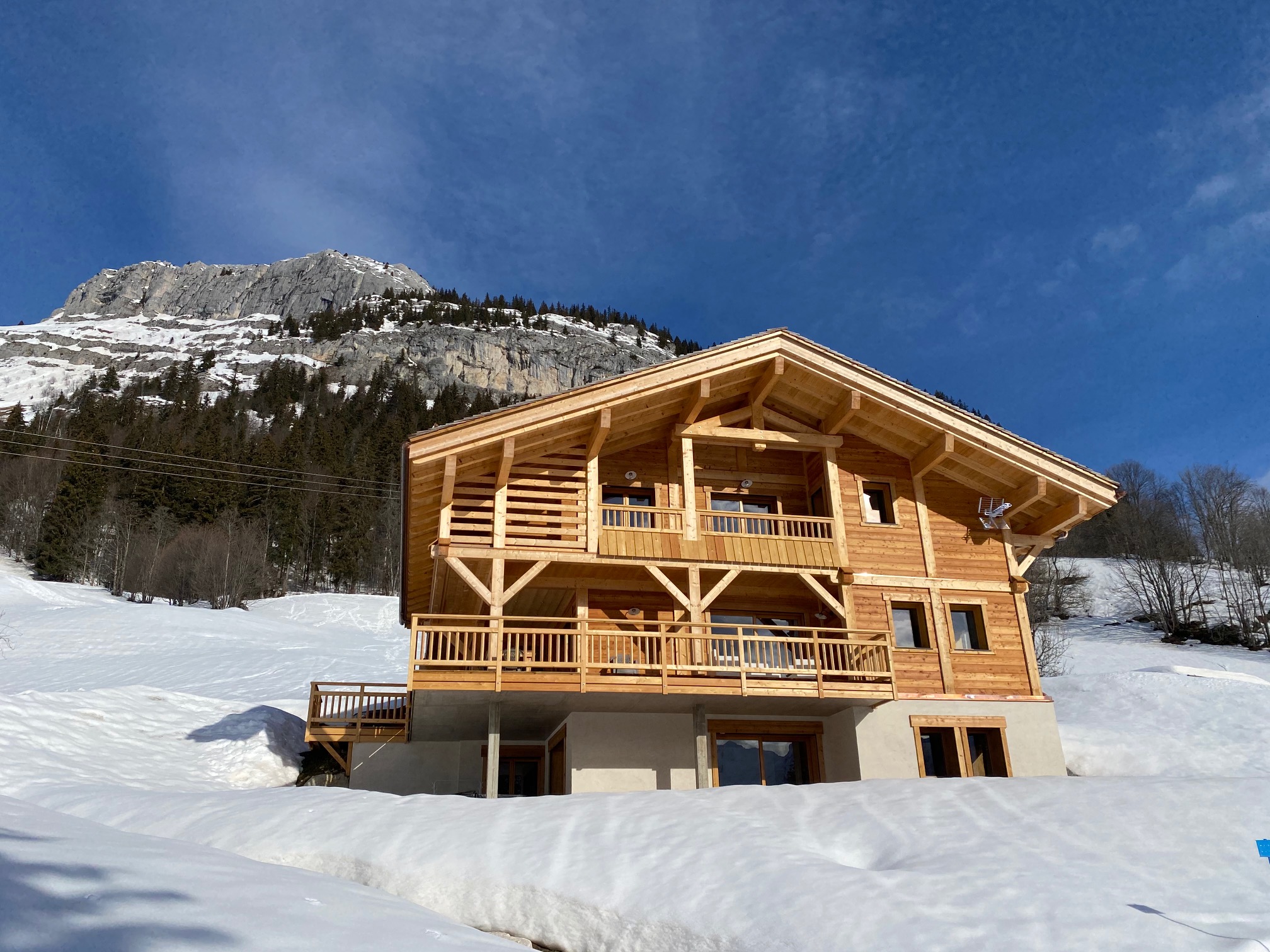 Chalet neuf, spacieux et confortable, orienté plein sud. Vue imprenable sur la montagne et les pistes de ski. Possibilité d'accueillir jusqu'à 27 personnes en louant également le chalet Meringue. Les + : SPA extérieur, hammam et espace dancefloor