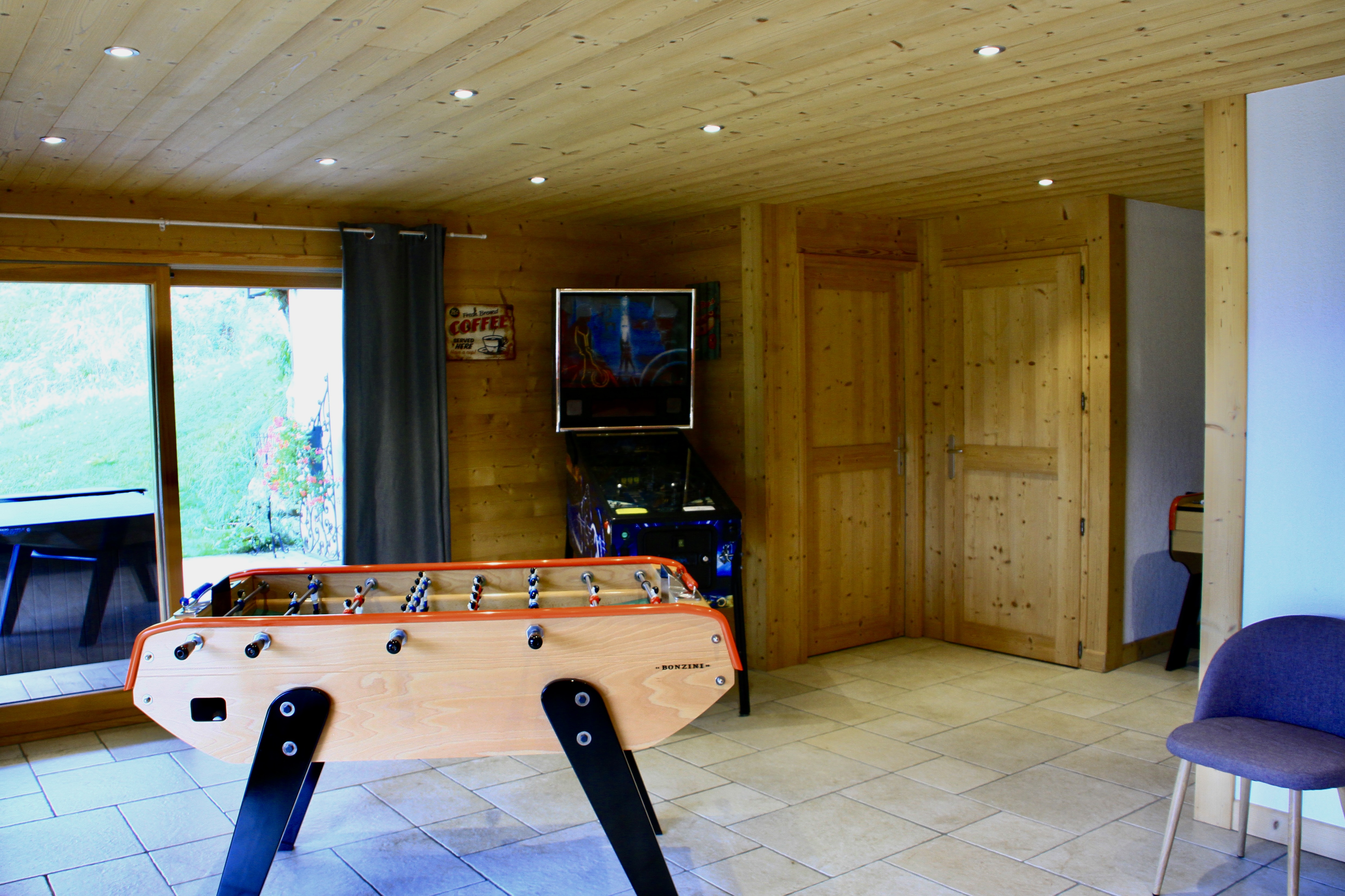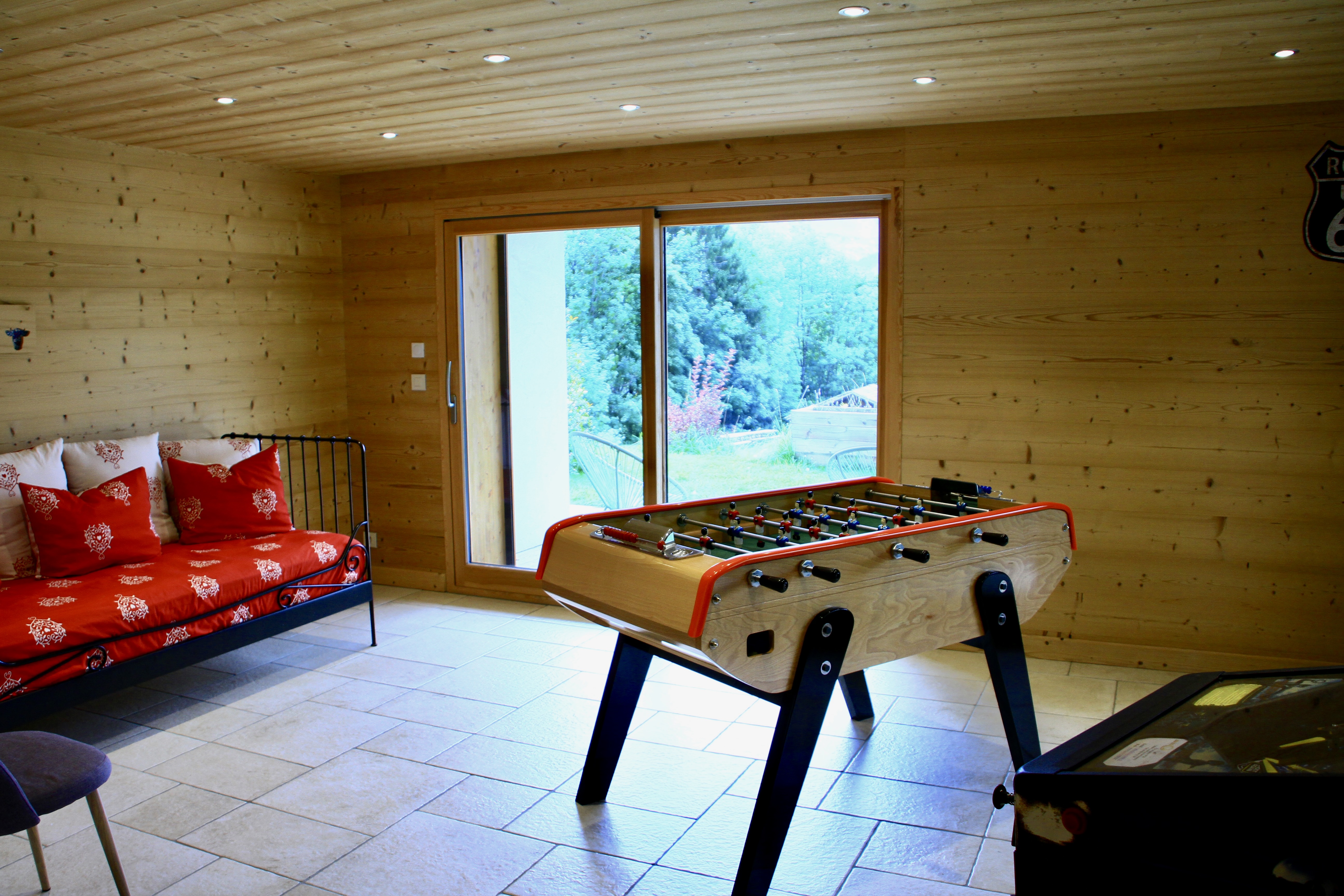 Au rez-de-jardin : grande chambre double, ainsi qu'une salle de jeux (baby-foot, flipper), espace bien-être avec douche + wc, accès au spa privatif sur la terrasse.