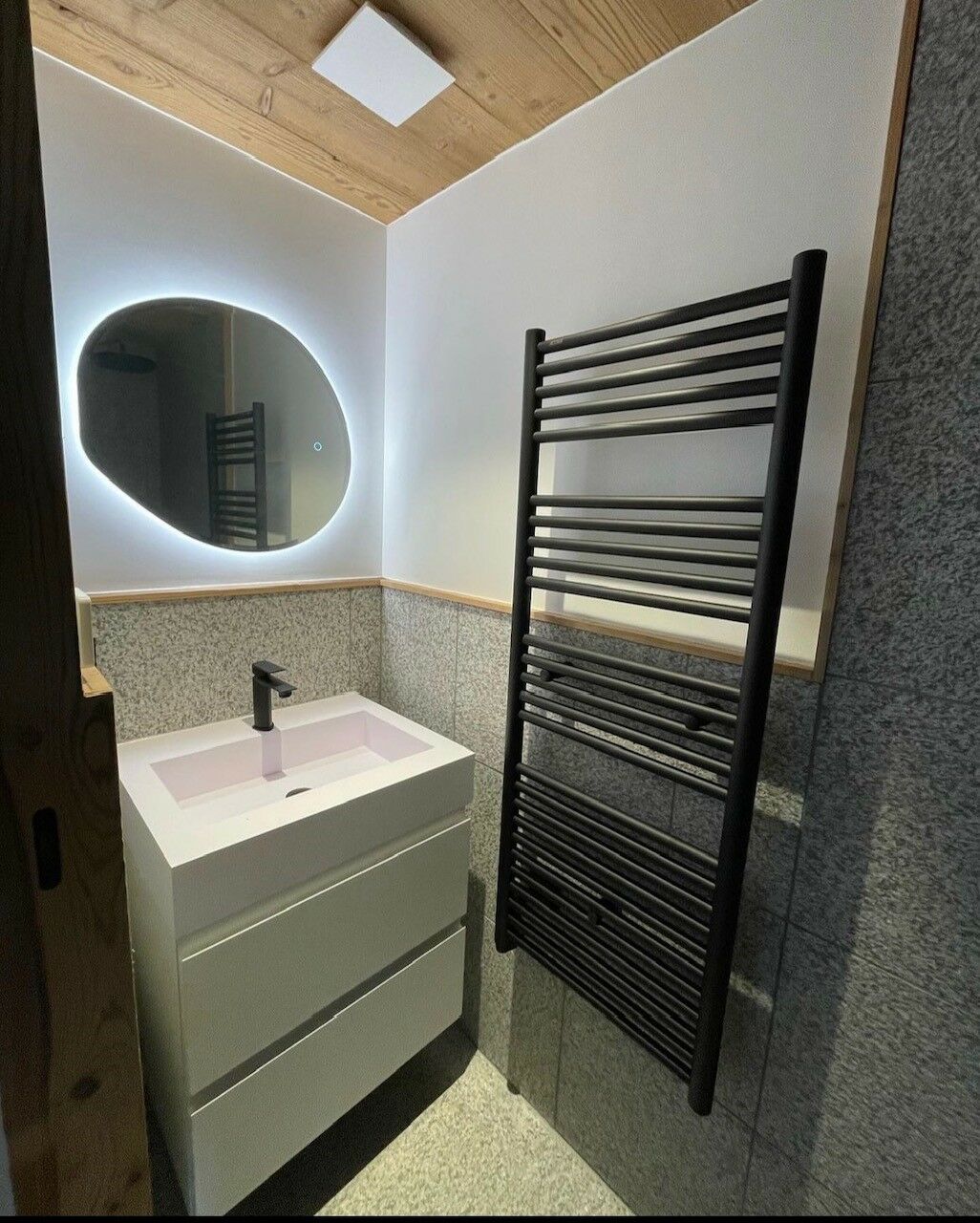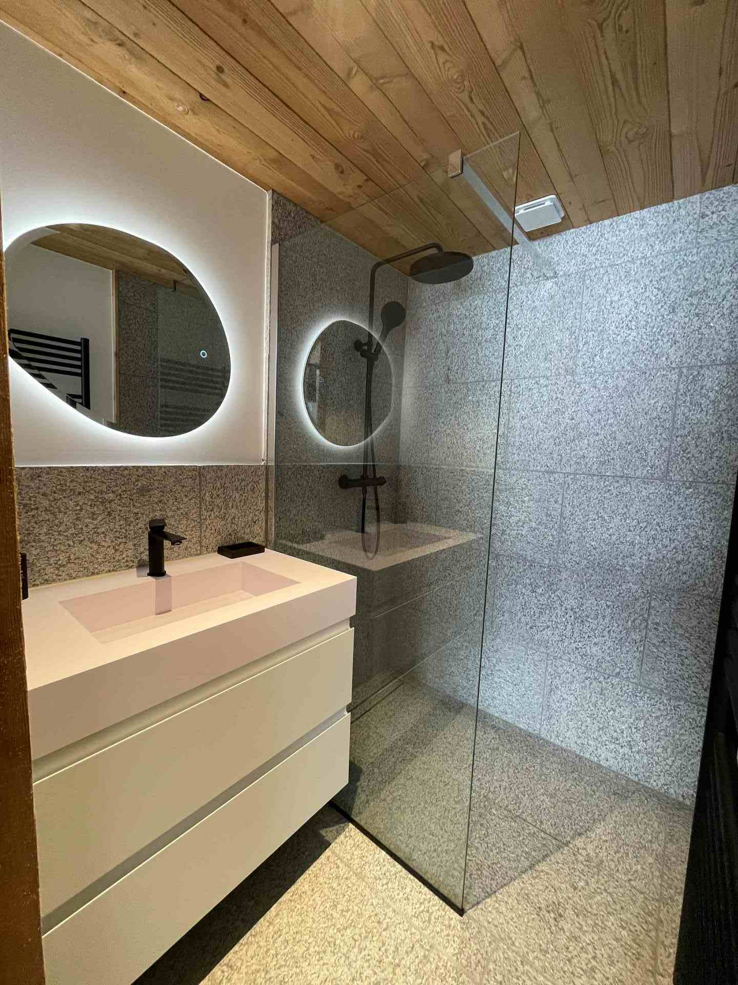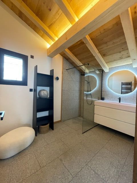 Le chalet dispose d’un chauffage au sol dans l’intégralité des pièces complété par un chauffe serviette dans chaque salle de bain.