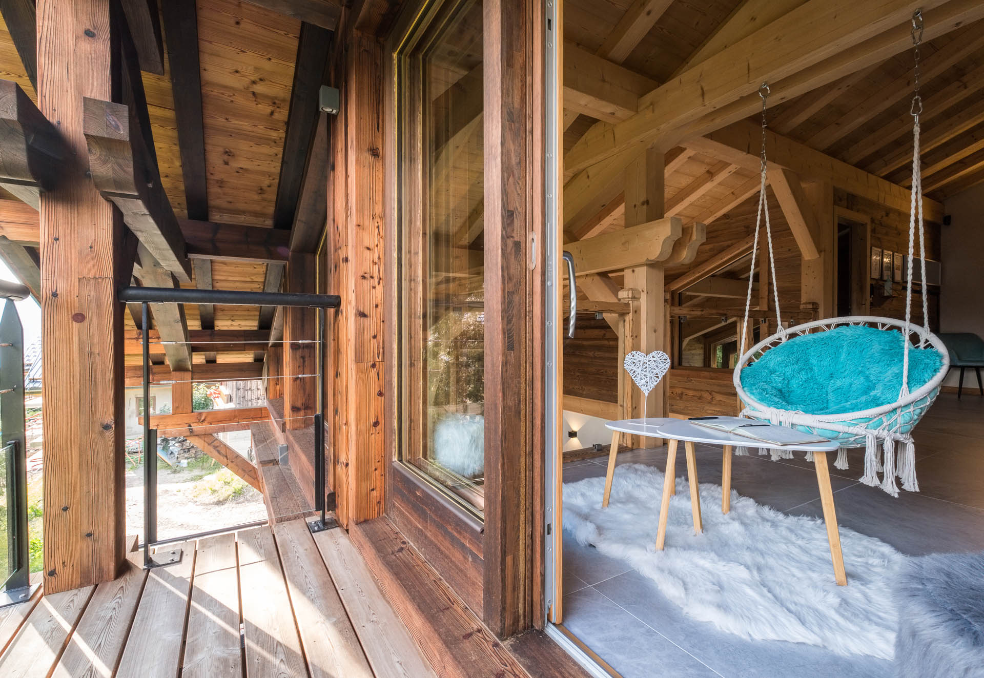 - Coin détente terrasse Chalet Le Spencer Crédit photo : Chalets Bovard