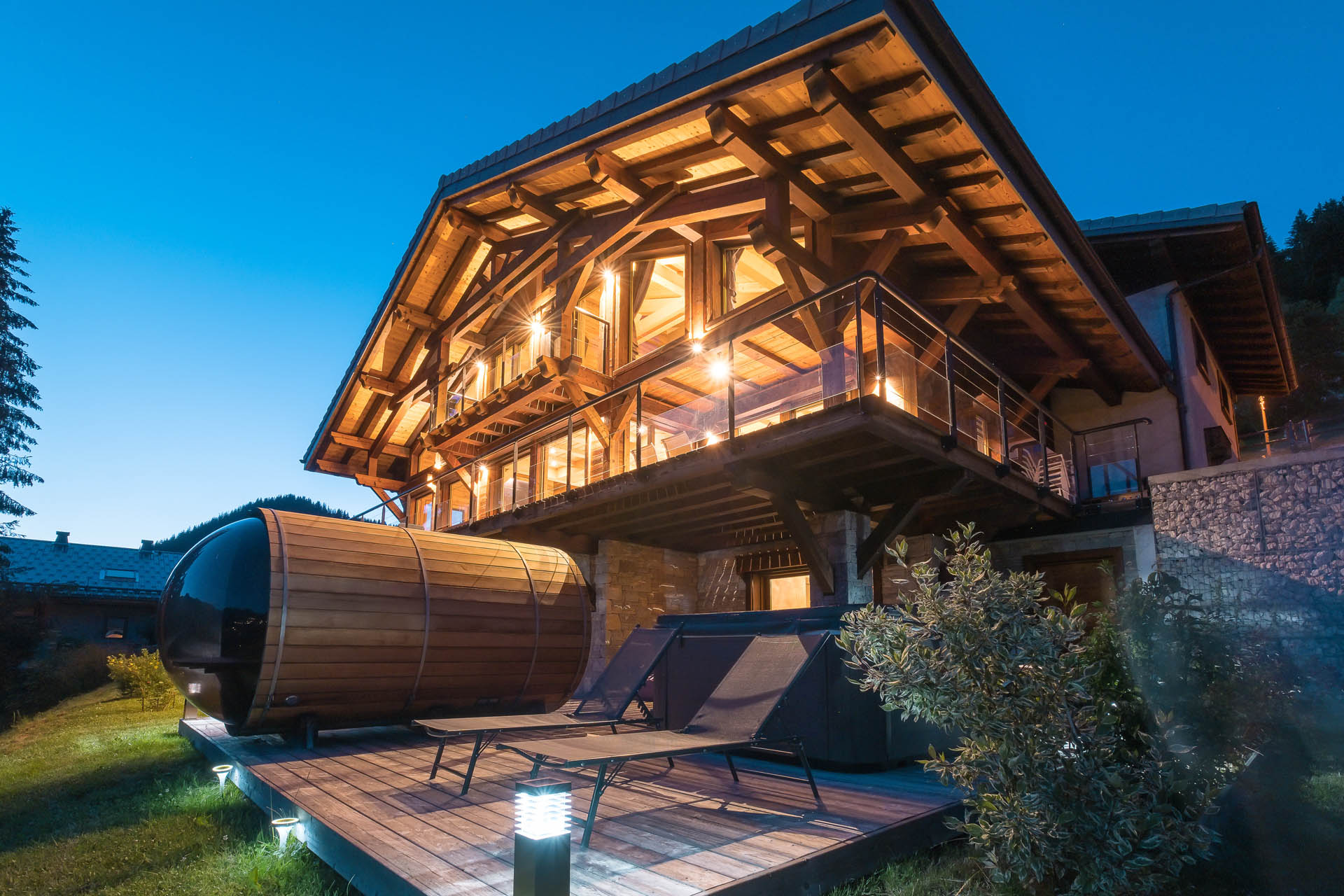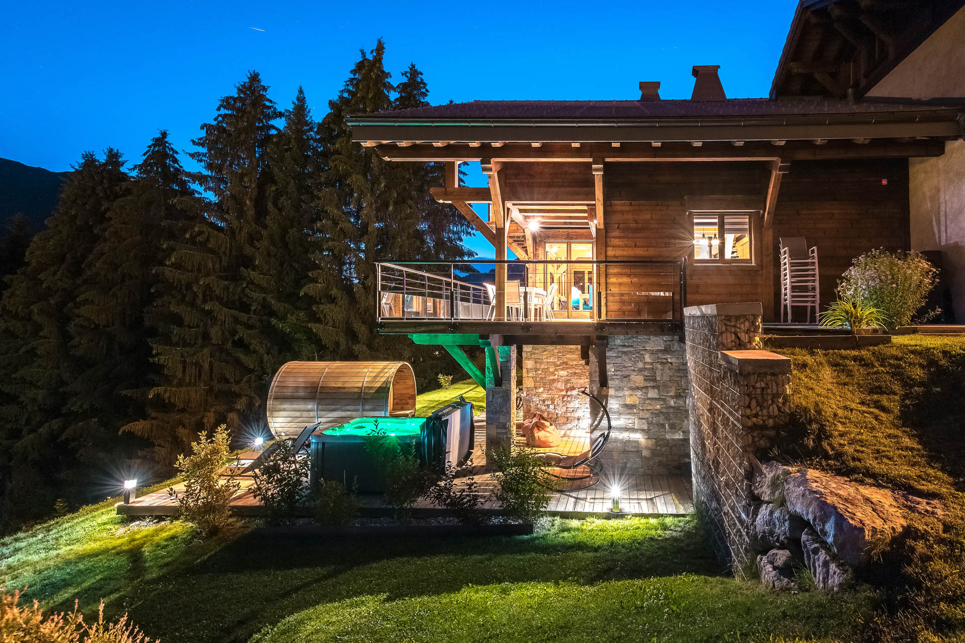 - Extérieur côté soir été Chalet Le Spencer Crédit photo : Chalets Bovard