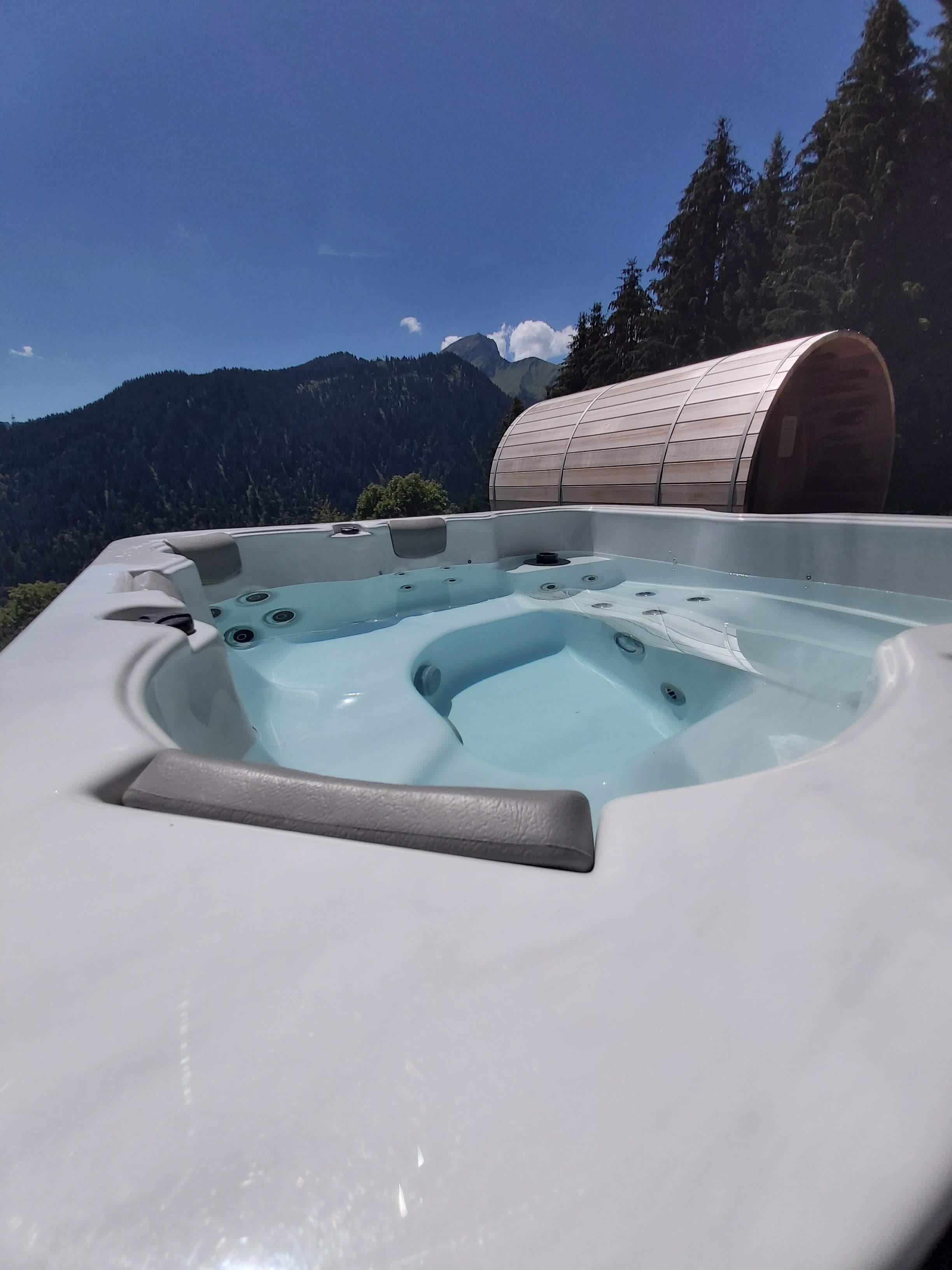 - Sauna-jacuzzi_extérieur-Hiver_Chalet Le Spencer_Châtel Sauna-jacuzzi_extérieur-Hiver_Chalet Le Spencer_Châtel Crédit photo : Sylvain Cochard