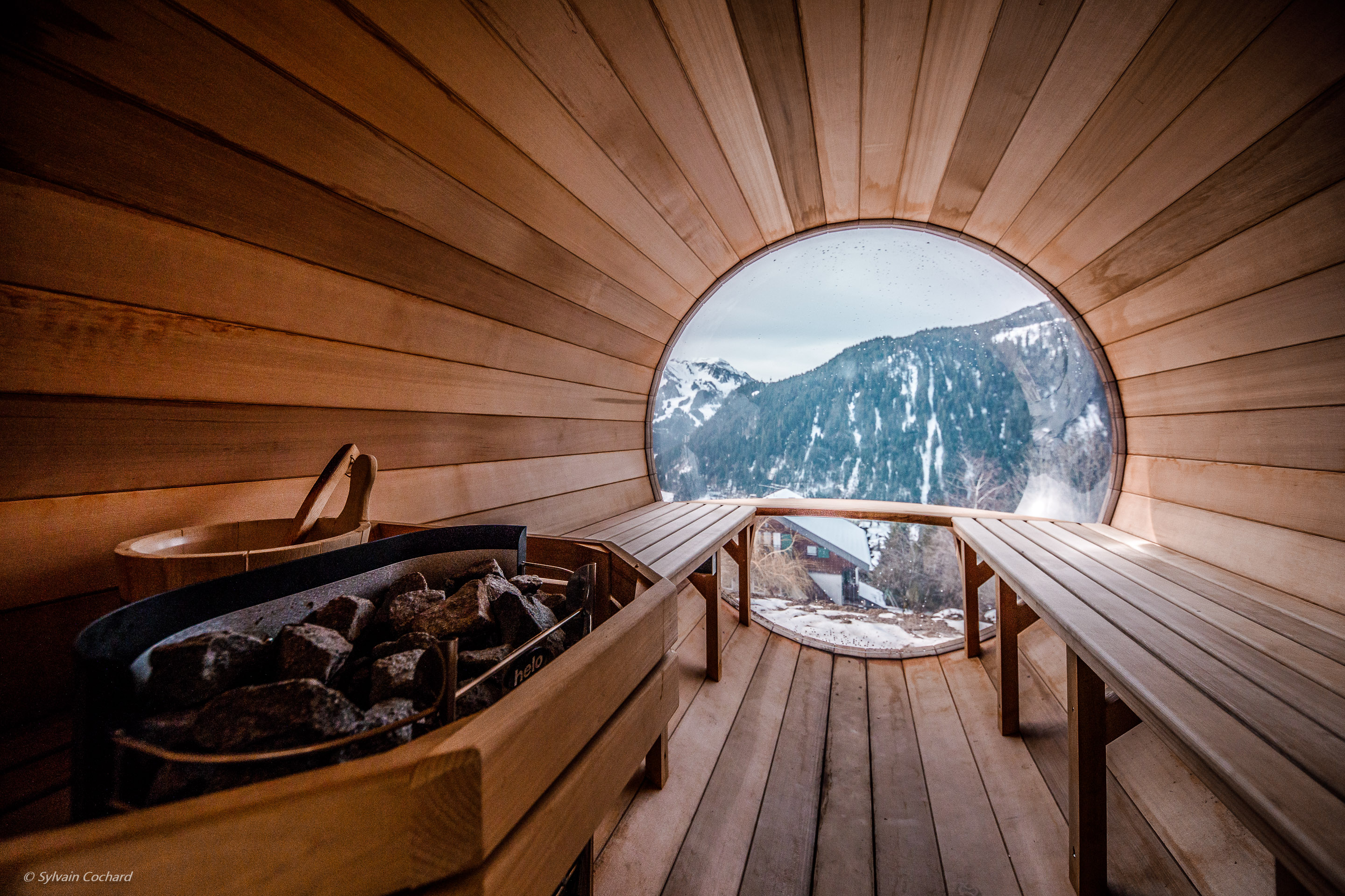 - Sauna vue Chalet Le Spencer Crédit photo : Sylvain Cochard
