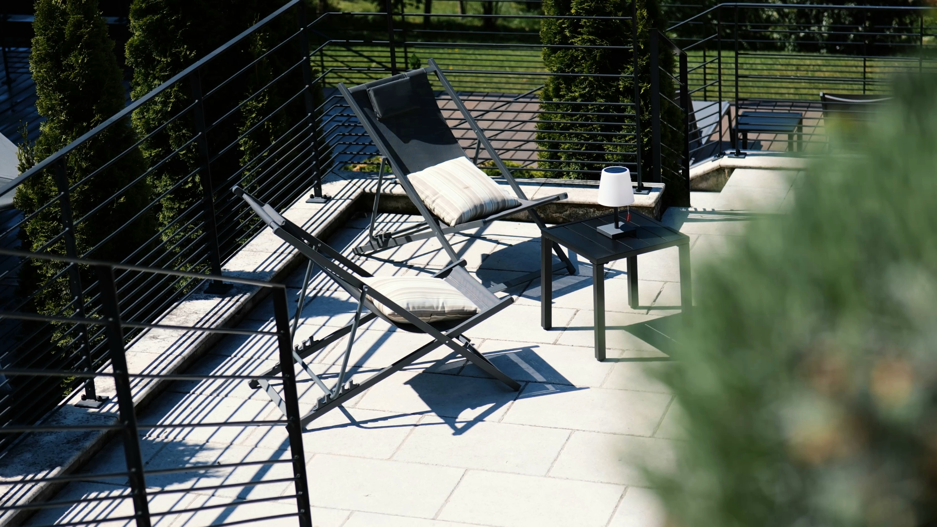 À l’extérieur, les terrasses, le solarium et les espaces de réception permettent de partager des moments privilégiés face au lac.