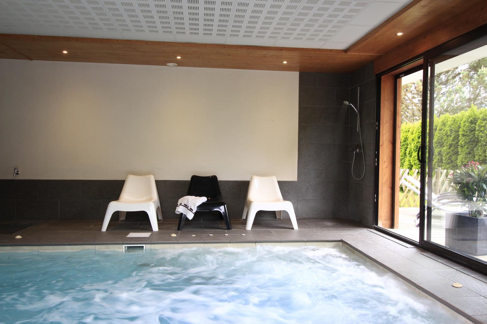 Gite de 40m2 aménagé de plain pied dans une maison comprenant également 4 autres gites. Sur place et à disposition: piscine intérieure (34°C), jacuzzi, fitness, hammam, sauna, soin du corps.