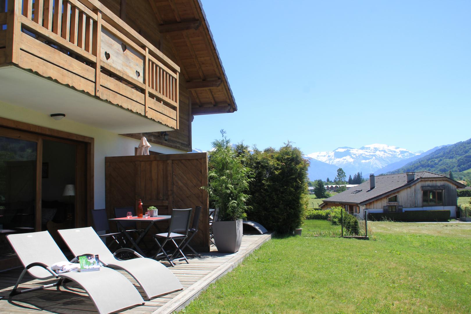 Au coeur de la vallée du Giffre entre les domaines du Grand Massifs et des Portes du Soleil, gite de 45m2 aménagé au 1er étage (poss ascenseur) d'une maison comprenant également 4 autres gites.