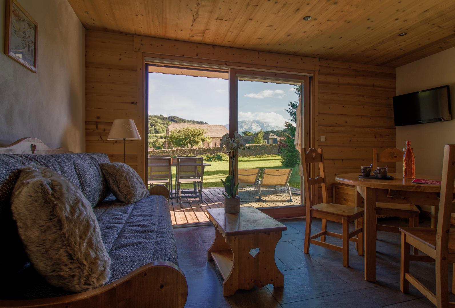 Dans un hameau calme de la vallée du Giffre, gîte au charme fou aménagé à l'étage d'une ancienne ferme savoyarde entièrement rénovée. Ambiance ultra cosy et chaleureuse mêlant esprit chalet et mobilier contemporain scandinave. Exposition sud.
