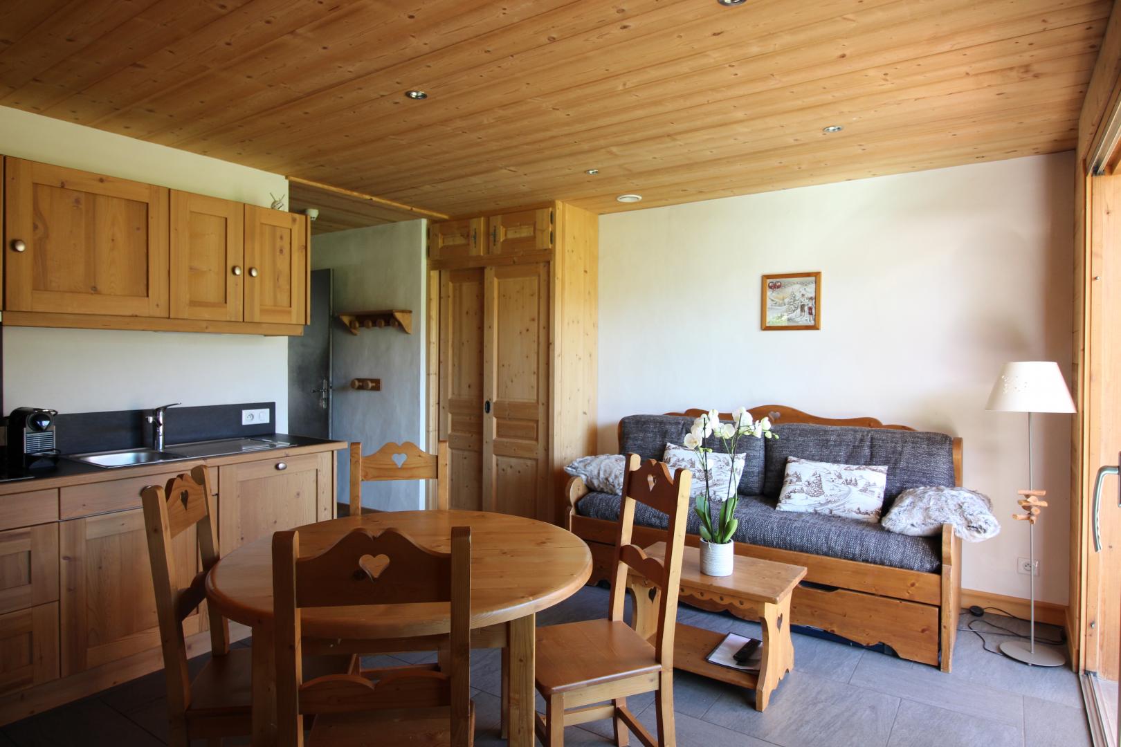 Idéalement situé à à mi-chemin entre le Grand Massif et les Portes du Soleil, gite de 36m2 est aménagé au 1er étage d'une maison comprenant également 4 autres gites.