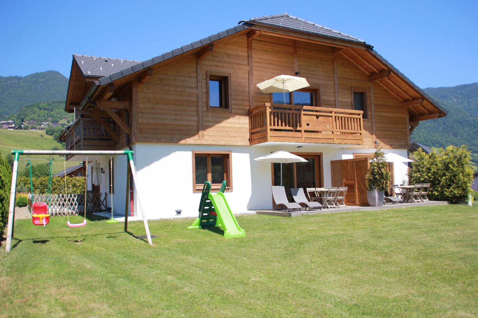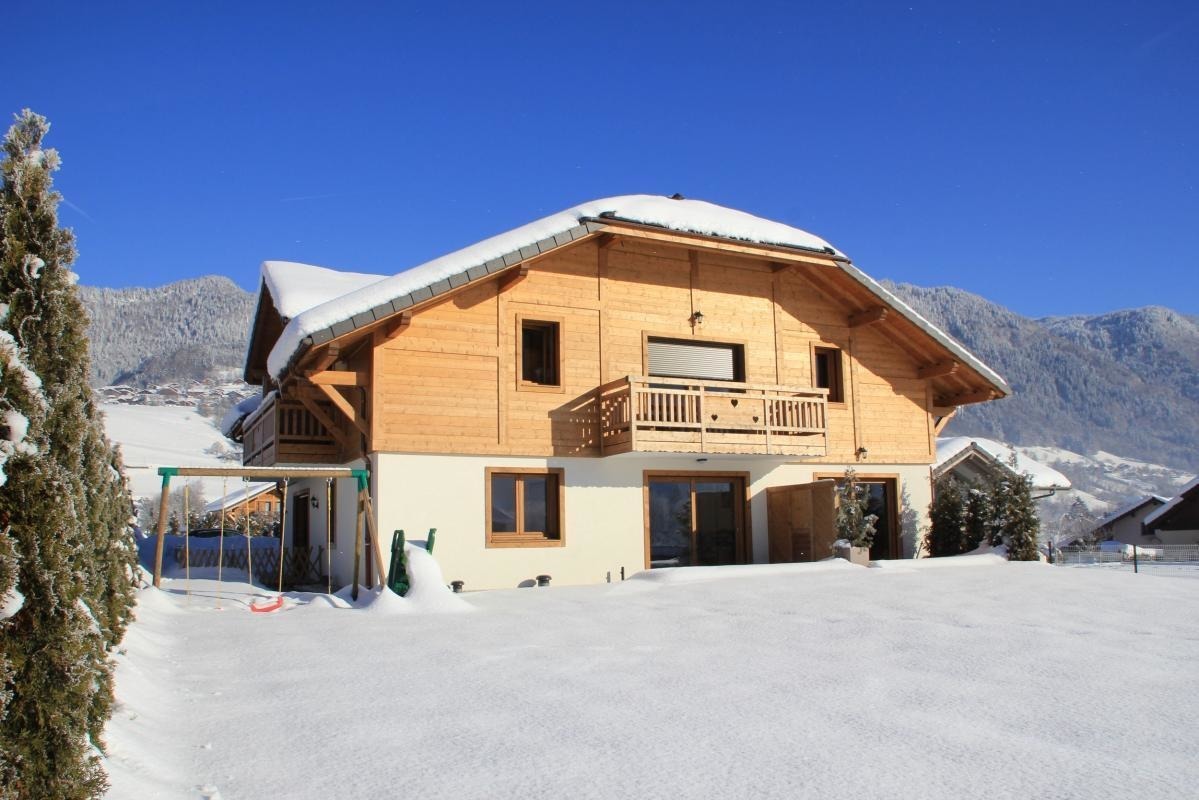 Au coeur de la vallée du Giffre entre les domaines du Grand Massifs et des Portes du Soleil, gite de 45m2 aménagé au 1er étage (poss ascenseur) d'une maison comprenant également 4 autres gites.