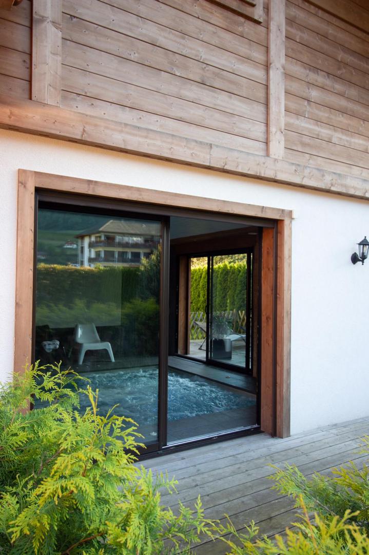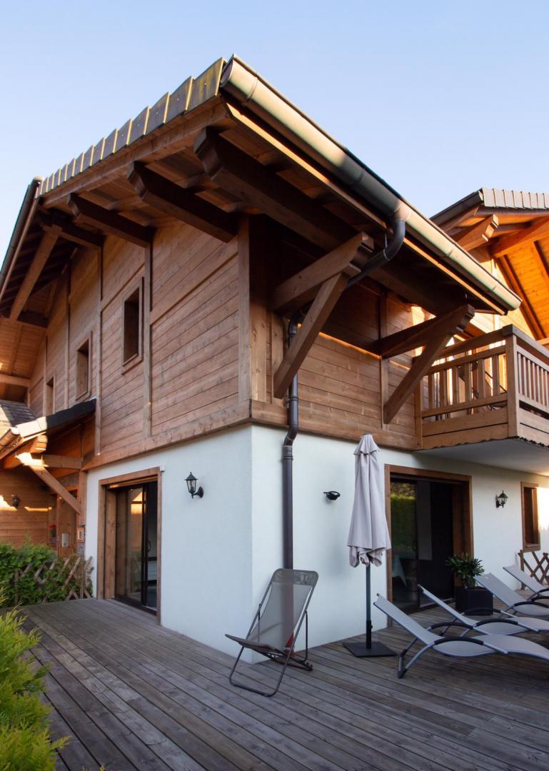 A la croisée des domaines skiables du Grand Massif et des Portes du Soleil, gite de 45m2 aménagé de plain pied dans une maison comprenant également 4 autres gites.