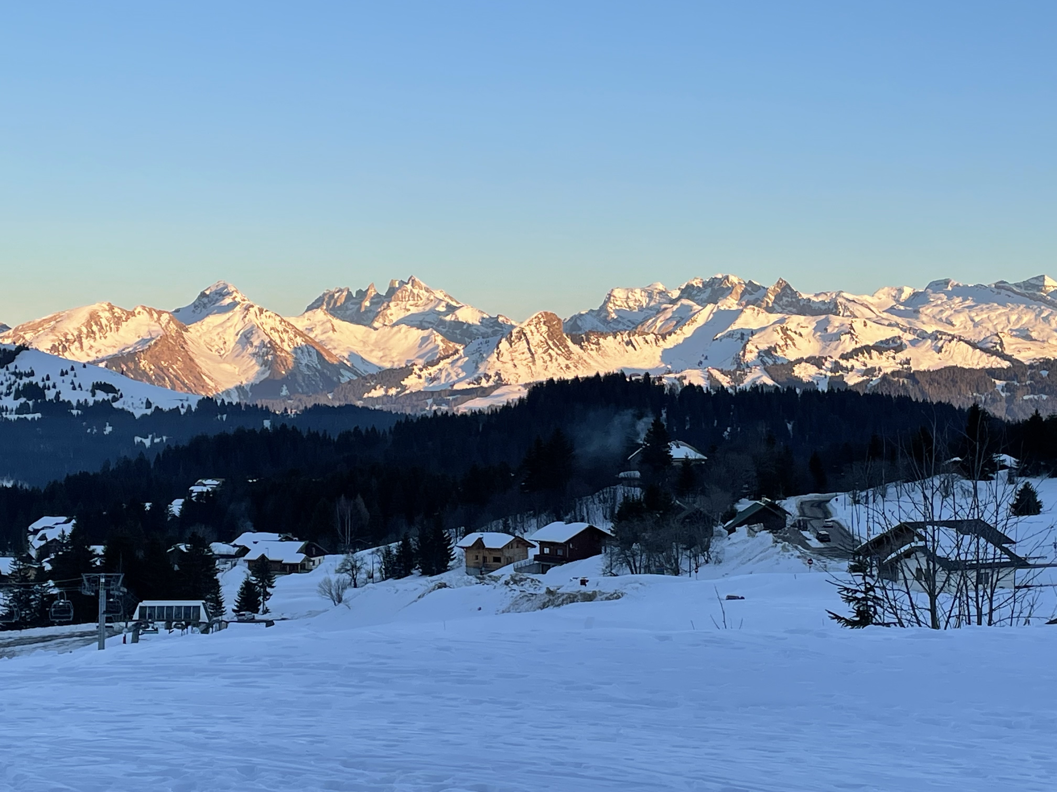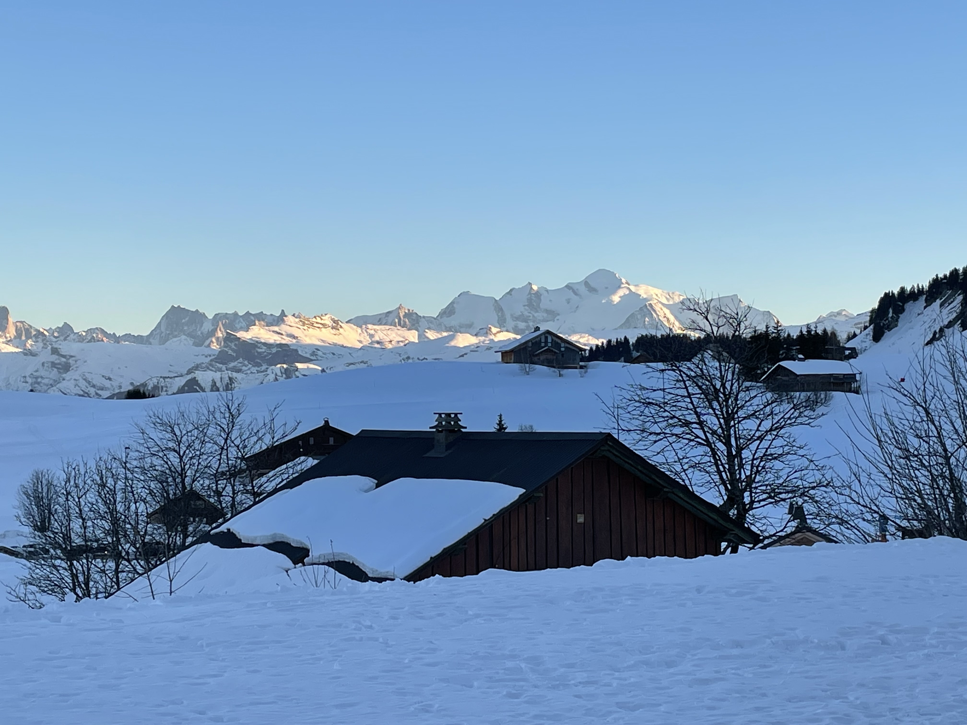 Très belle vue panoramique sur les plus beaux sommets des Alpes dont le Mont-Blanc, pour ce chalet indépendant de 100 m2.
