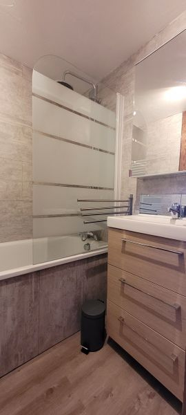 Une salle de bain avec baignoire. Sèche-cheveux et sèche-serviettes. WC indépendants.