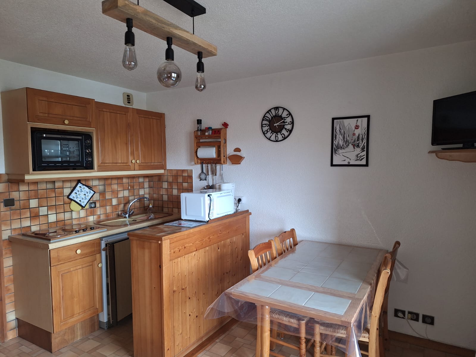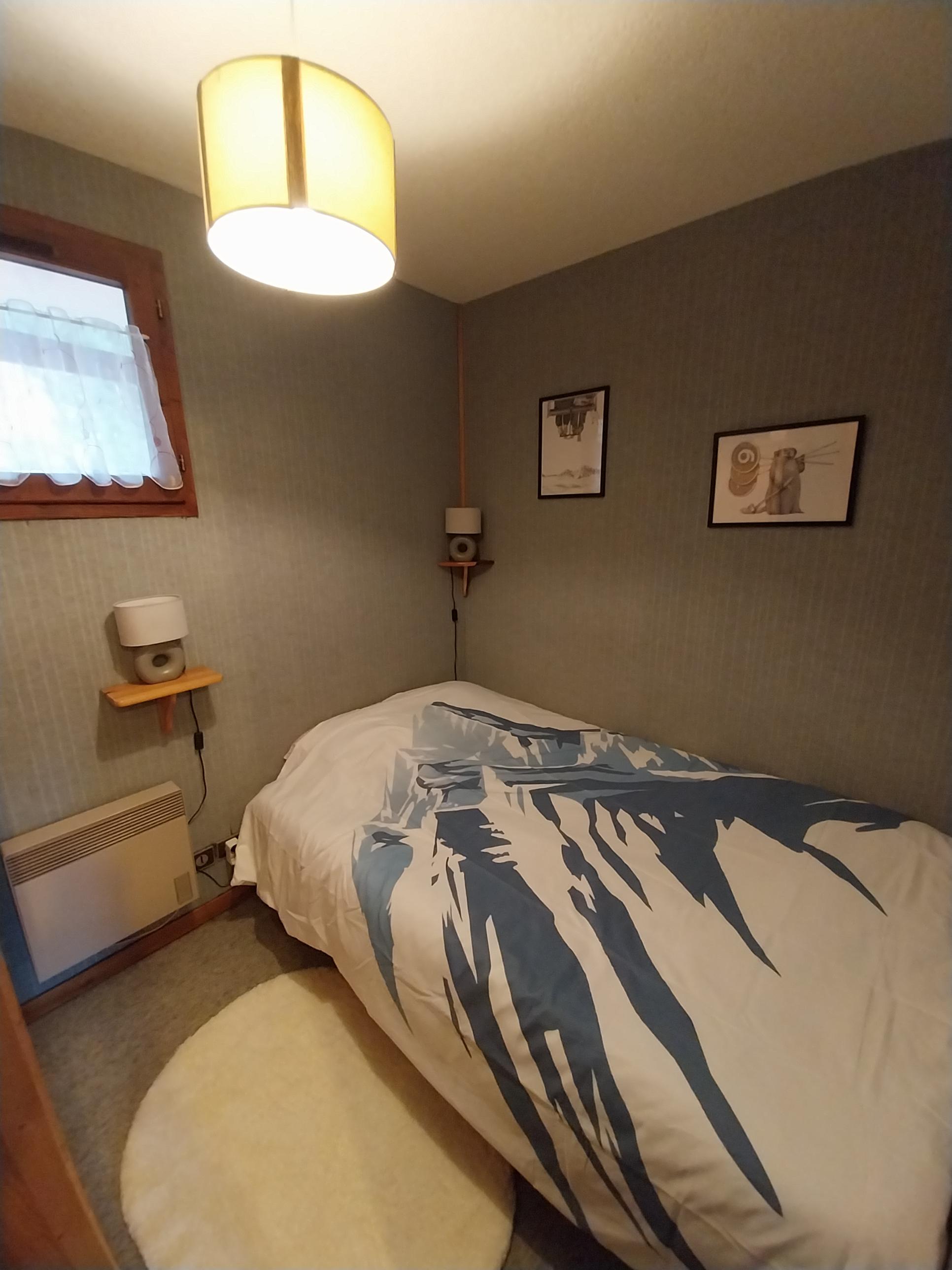 Dans l'appartement, vous disposez d'une pièce principale avec balcon, vue sur le lac et les montagnes. Cette pièce est composée d'une cuisine toute équipée, d'un coin repas, d'un clic-clac et d'une télévision. L'appartement a une chambre individuelle avec un lit deux personnes, et une fenêtre donnant sur l'extérieur. Il dispose également d'un coin montagne avec ses deux lits superposés rabattables, d'une salle de bain avec baignoire et d'un WC séparé.