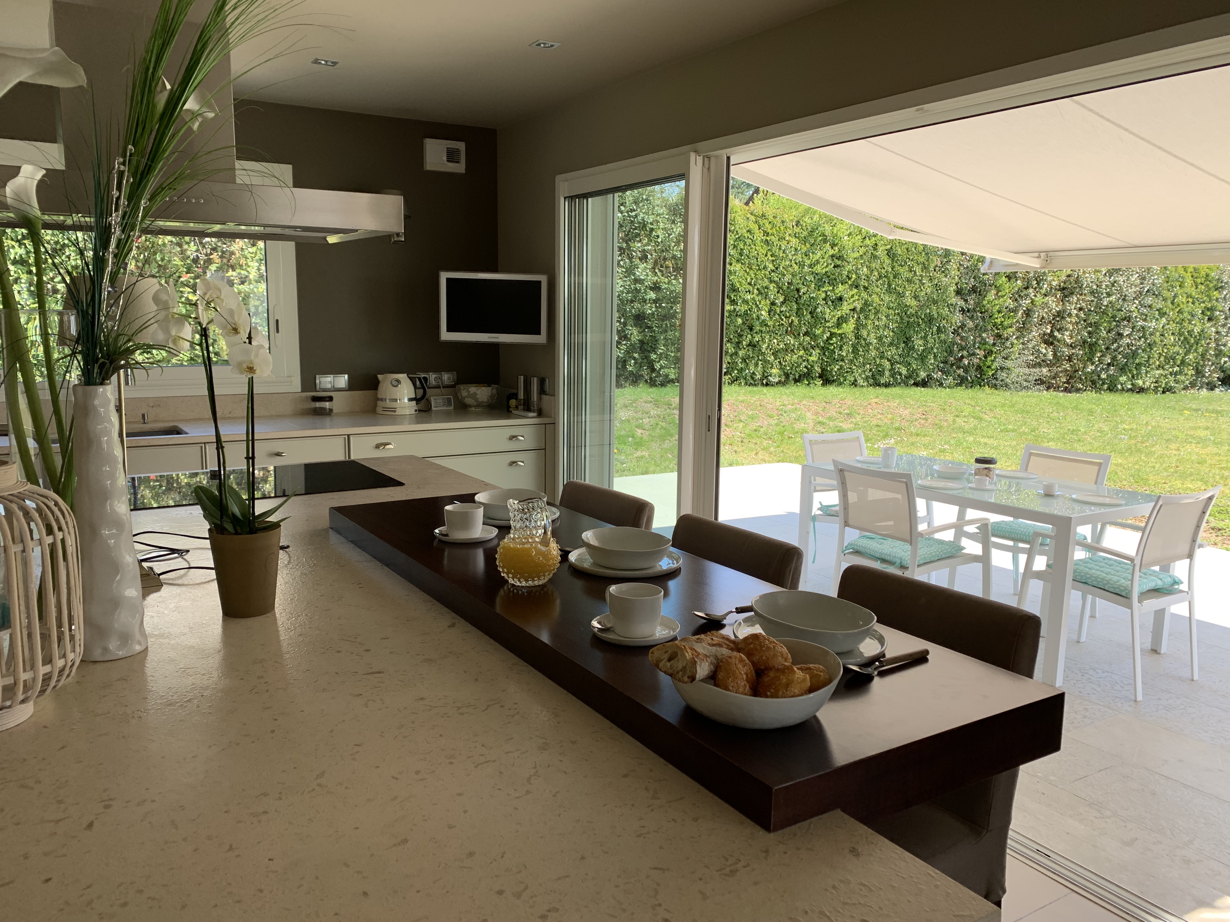 Au rez-de-chaussée, la cuisine et son grand îlot central, la salle à manger et le salon s’ouvrent par de larges baies vitrées sur les terrasses et le jardin. Le pool-house et sa cuisine d’été vous attendent, au bord de la grande piscine, pour des déjeuners en toute quiétude. Vous profiterez également de la salle de douche piscine avec son vestiaire, accessible depuis le jardin, et d’un grand salon extérieur, pour prolonger les longues soirées d’été.