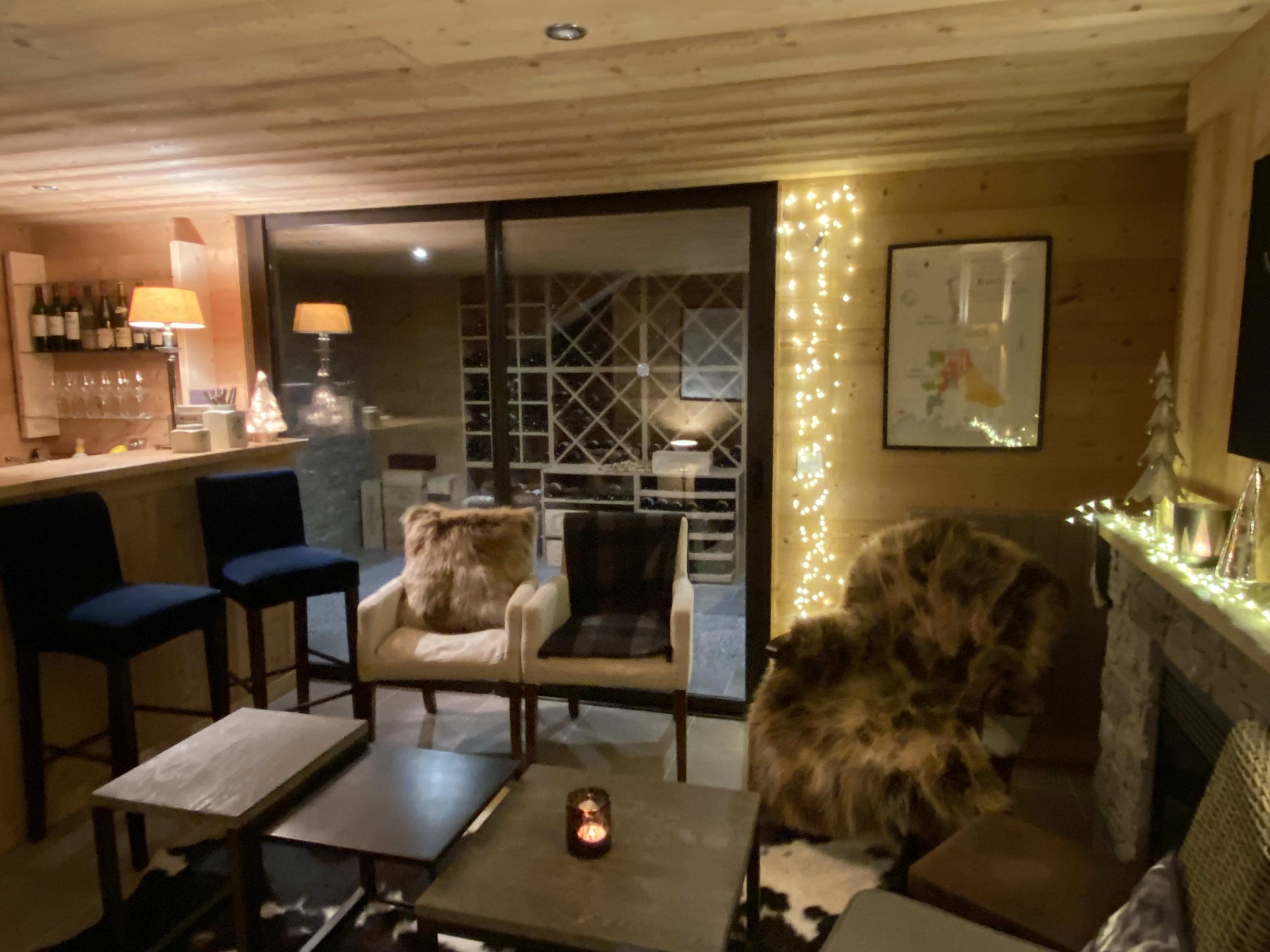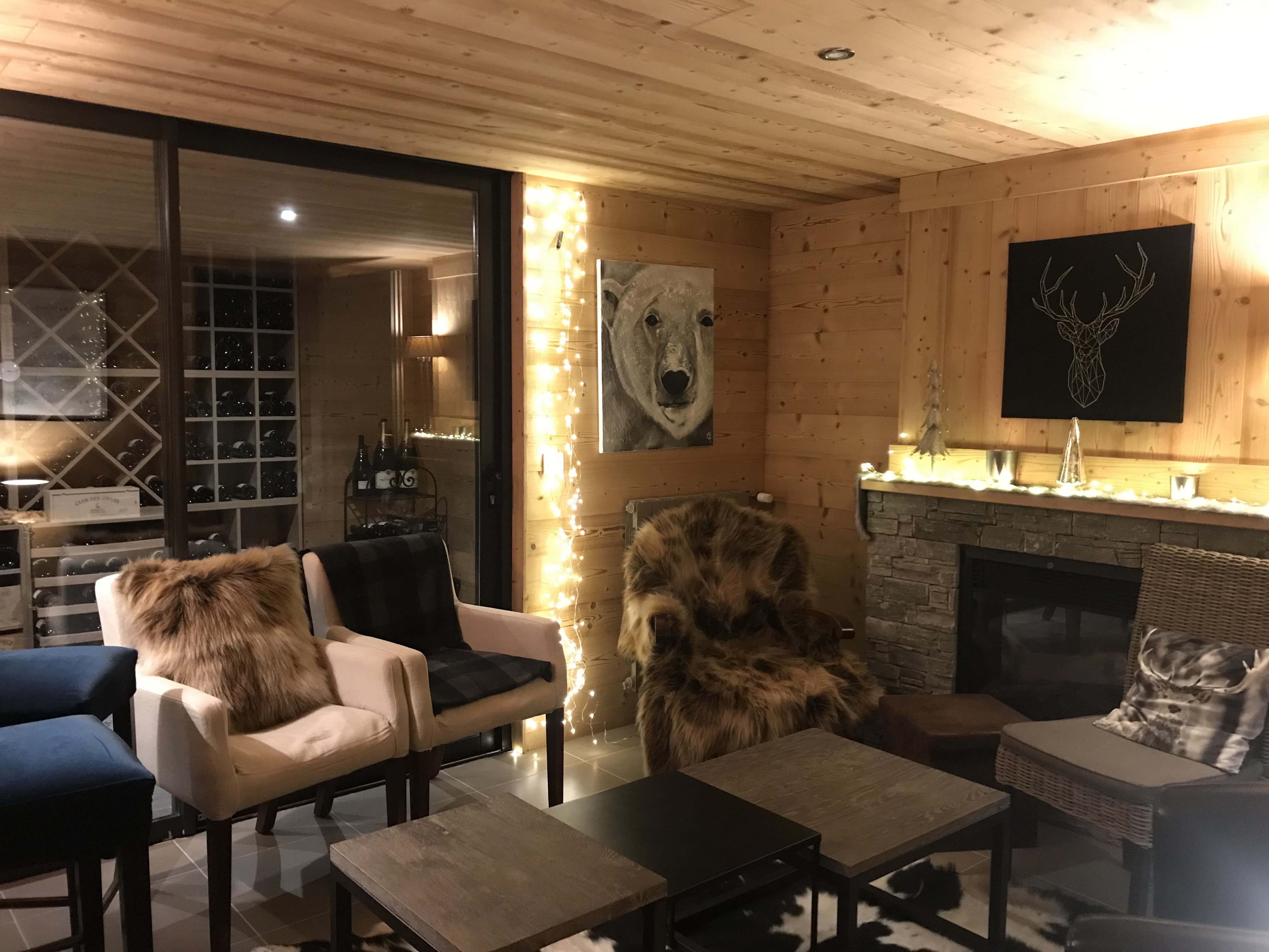 Pour les soirées plus fraîches, une pièce de dégustation décorée comme un chalet de nos montagnes, vous attend au sous-sol, pour goûter aux vins de notre région ou d’ailleurs.