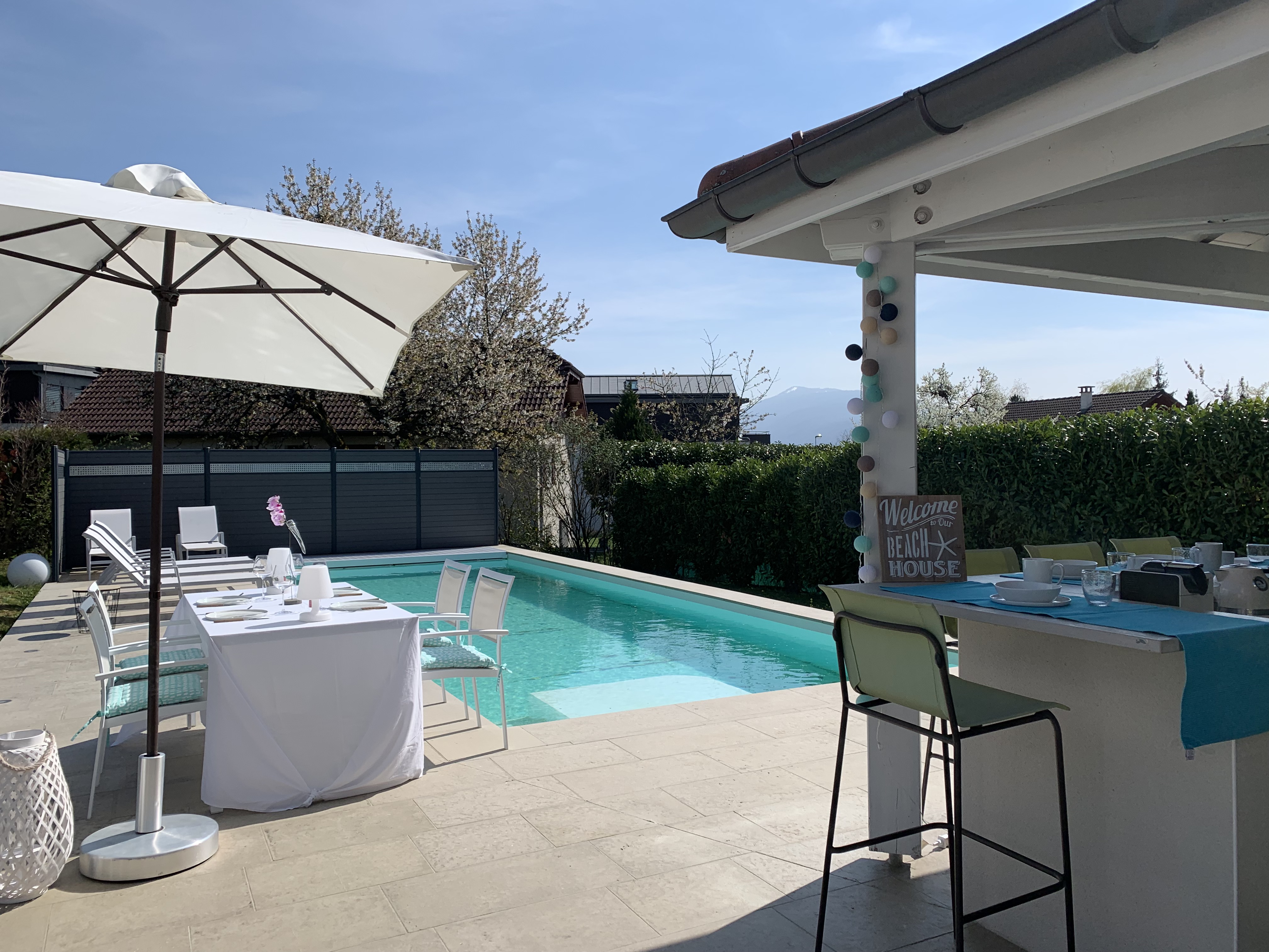 Cette luxueuse villa vous attend à Annecy le Vieux, à 5 min du lac, et 10 min du centre-ville d’Annecy.