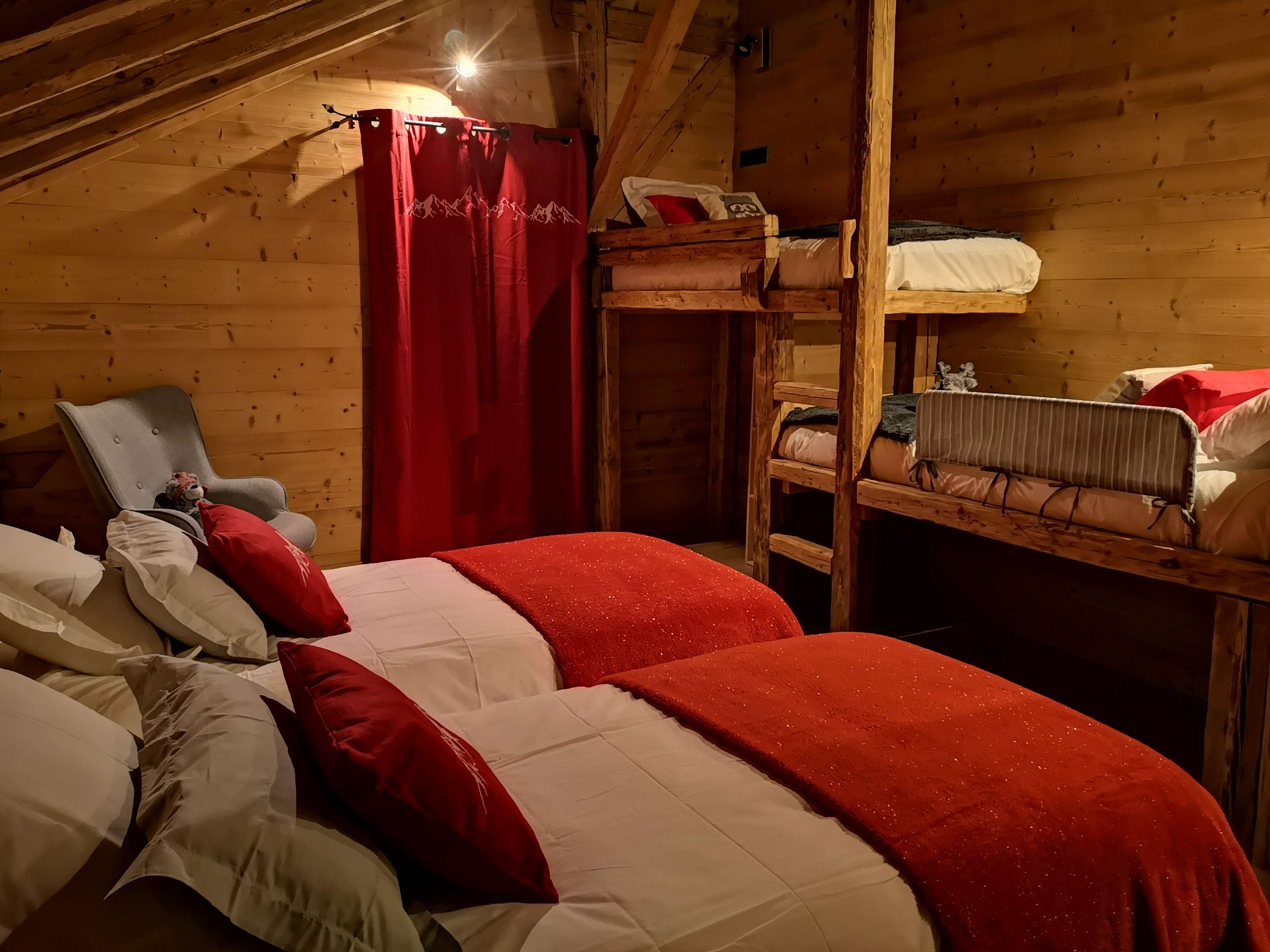 1 chambre de 4 personnes et 2 chambres de 2 personnes.
