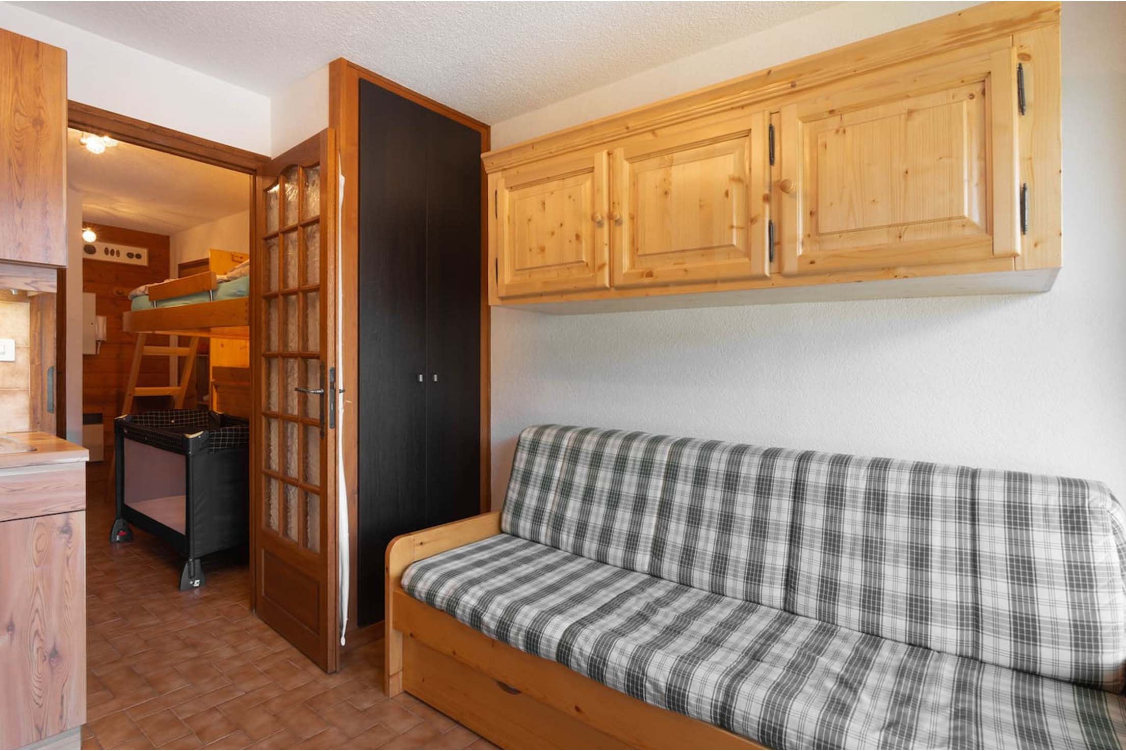 - Lit superposé et lit bébé Lits superposés et lit bébé du 2 pièces Les Fermes B32 à Châtel Crédit photo : Guémard