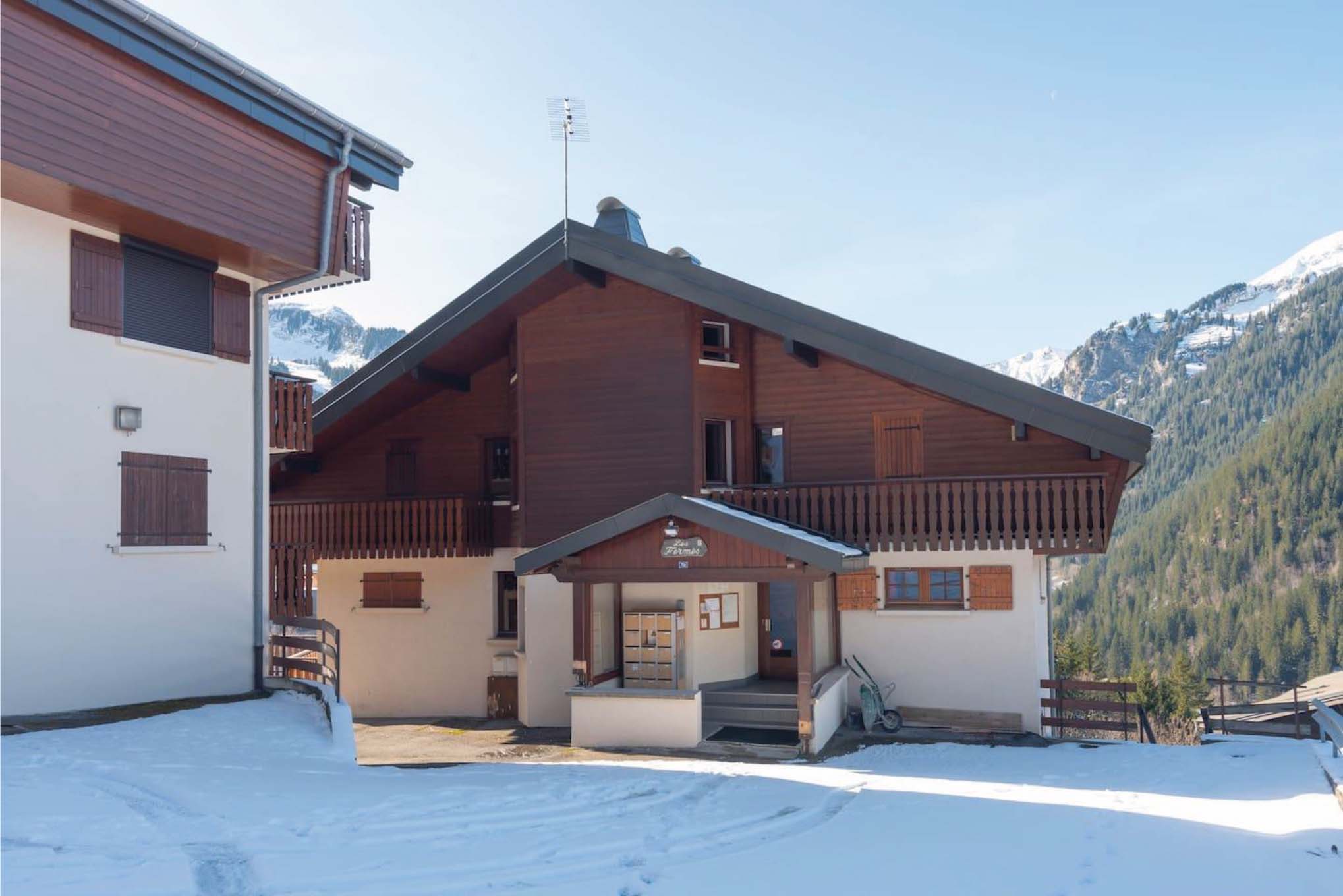 - Entrée résidence Entrée de la résidence Les fermes B à Châtel avec parking privé Crédit photo : Guémard