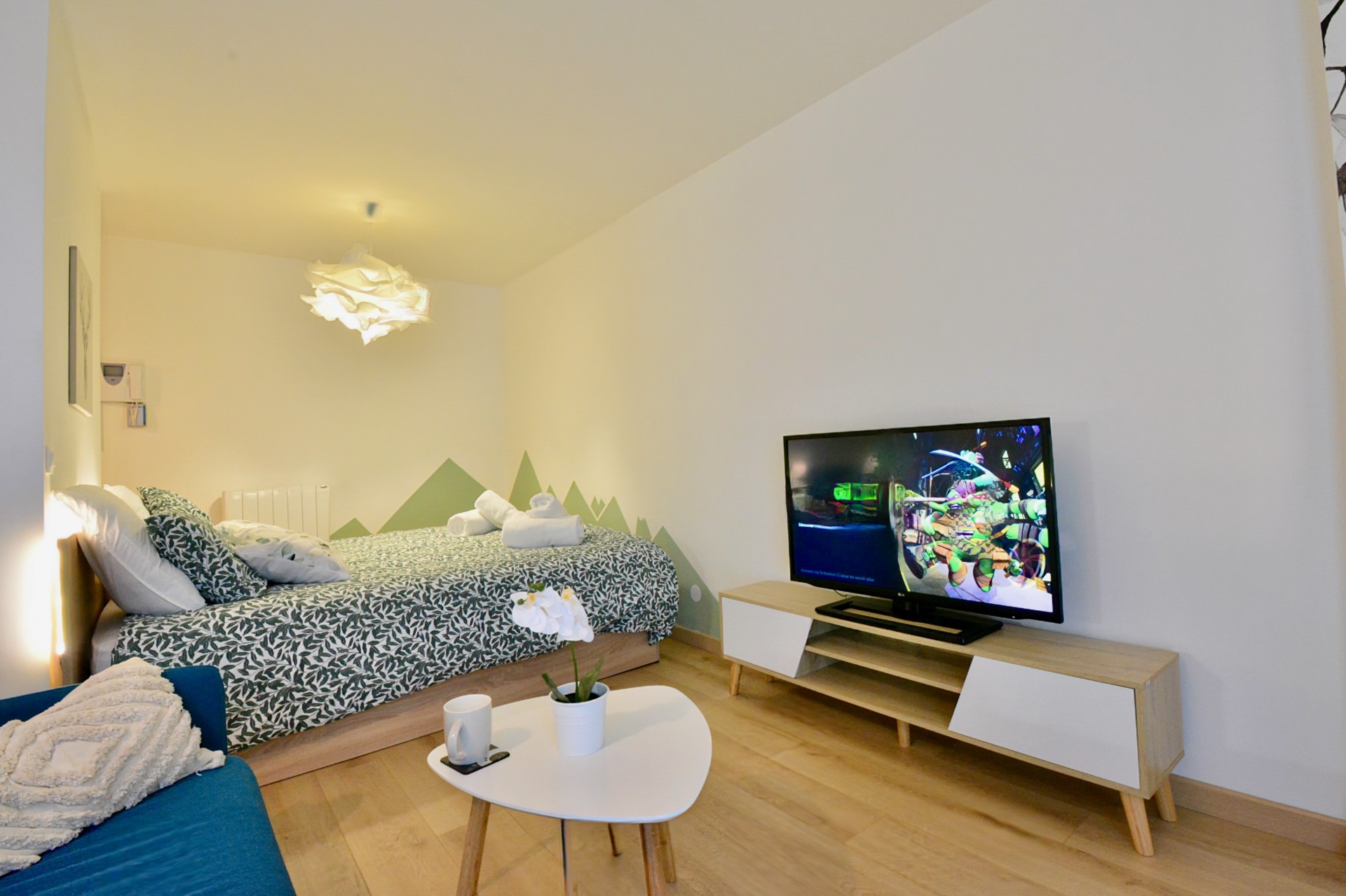 Magnifique studio décoré dans un esprit à la fois montagne et design en plein centre-ville de Cluses. Lumineux, grand balcon, derrière la Place des Allobroges. Résidence calme et sécurisée avec accès badge.