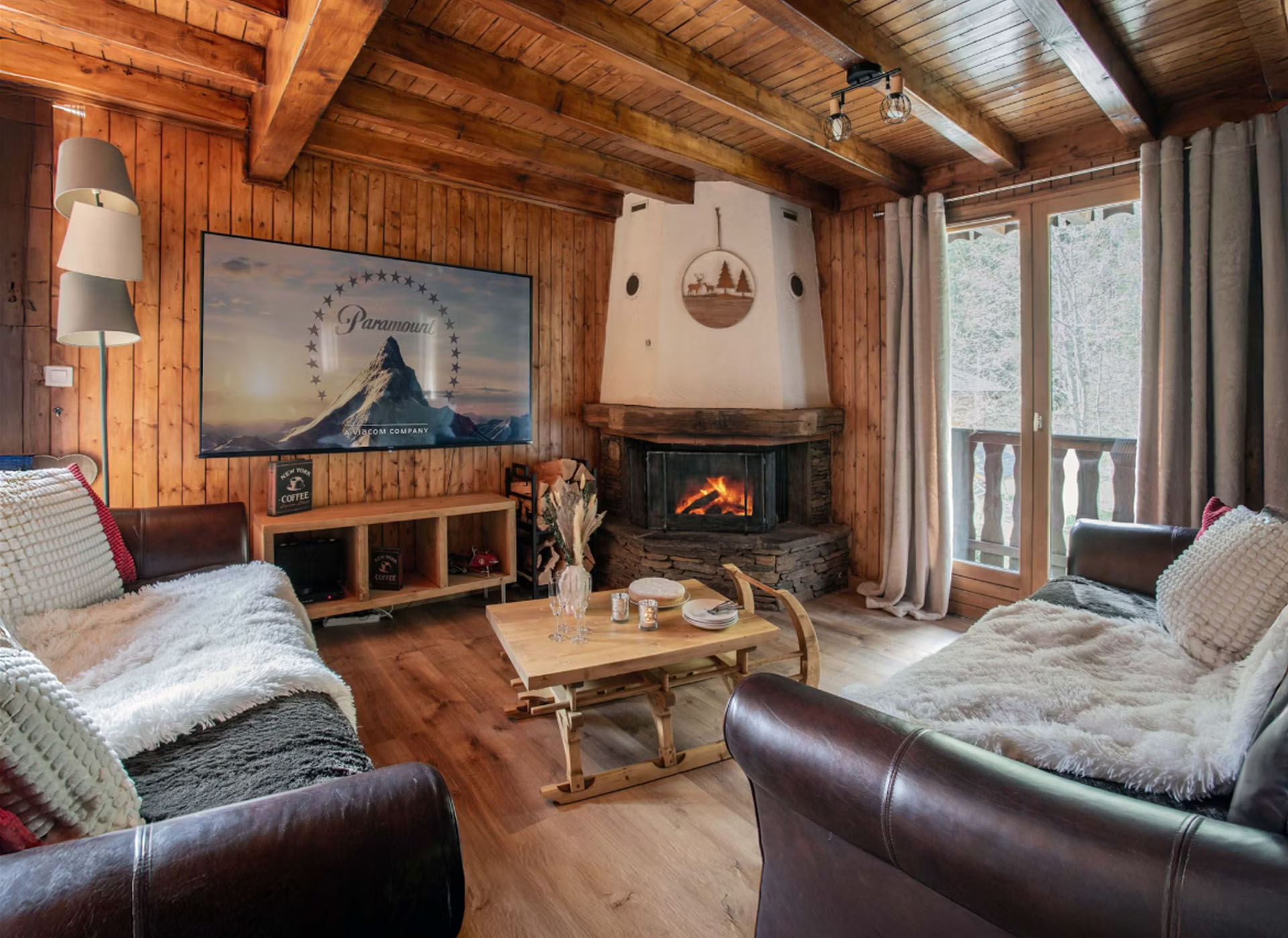 - Salon cheminée Chalet Rochamour Crédit photo : Ovo Network