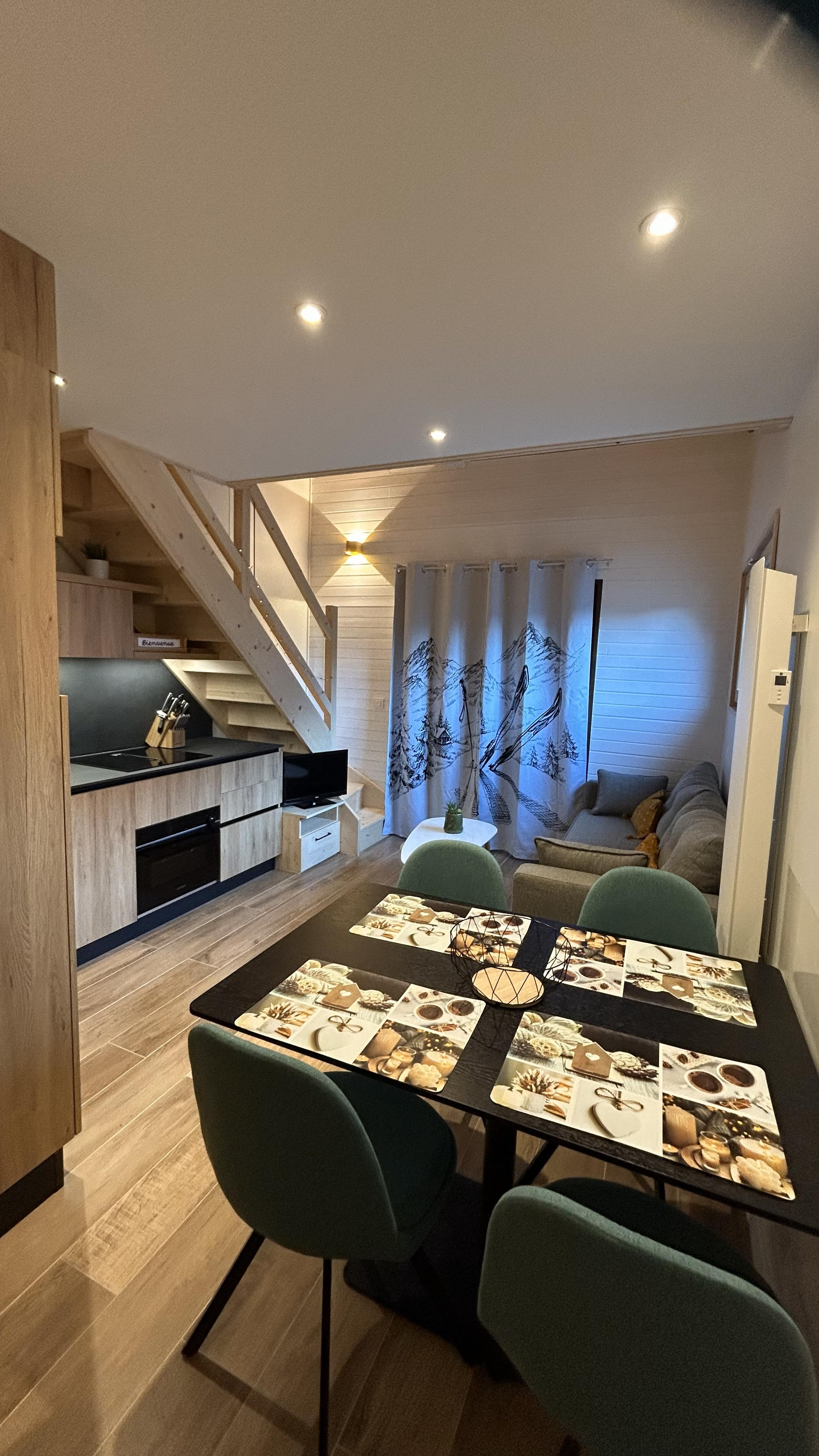 • Une cuisine entièrement équipée (lave-vaisselle, four, plaques induction, micro-ondes, machine Nespresso, Grille pain, Bouilloire, Set à raclette, Set à fondue et toute la vaisselle nécessaire)