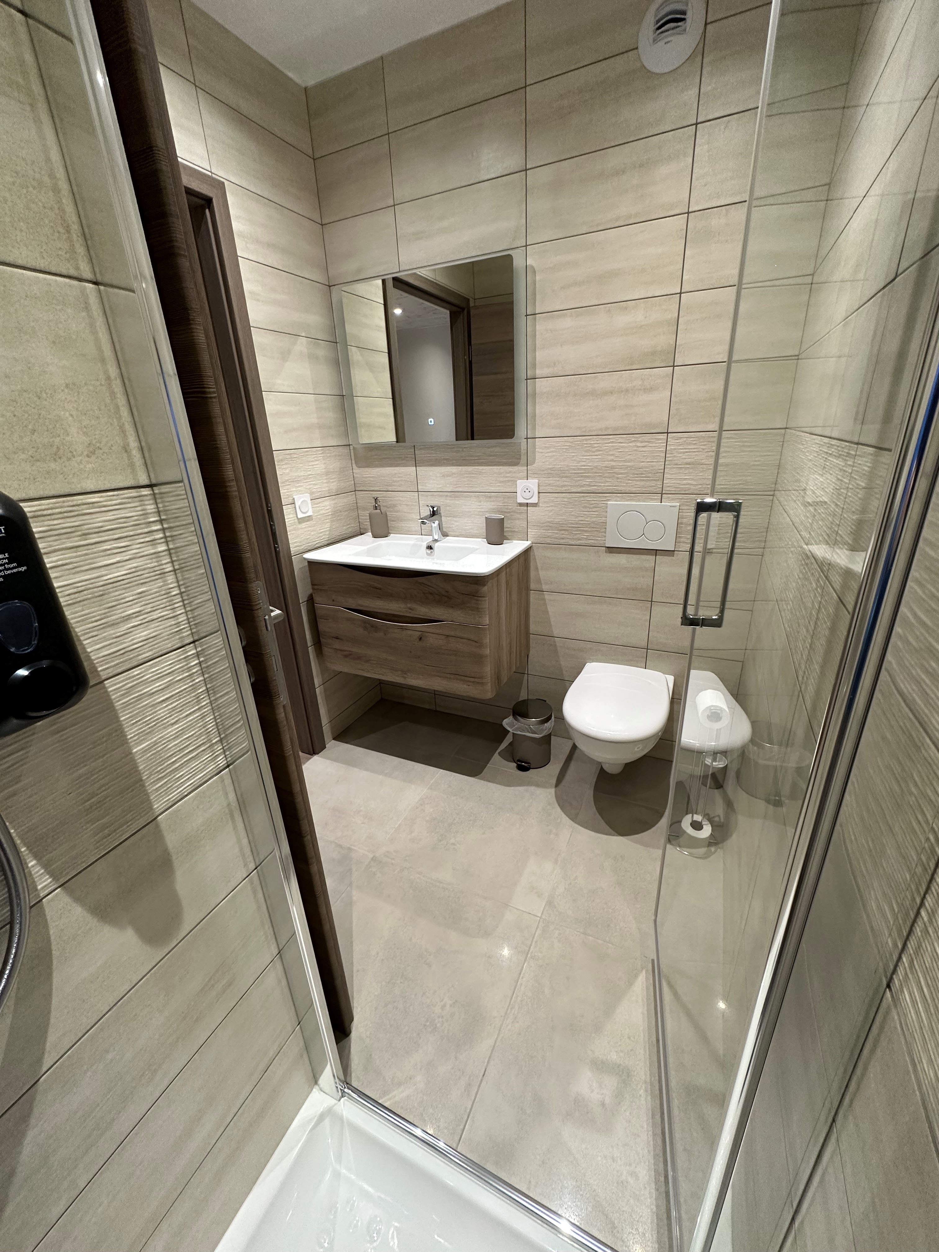 - Douche avec assise + espace de circulation